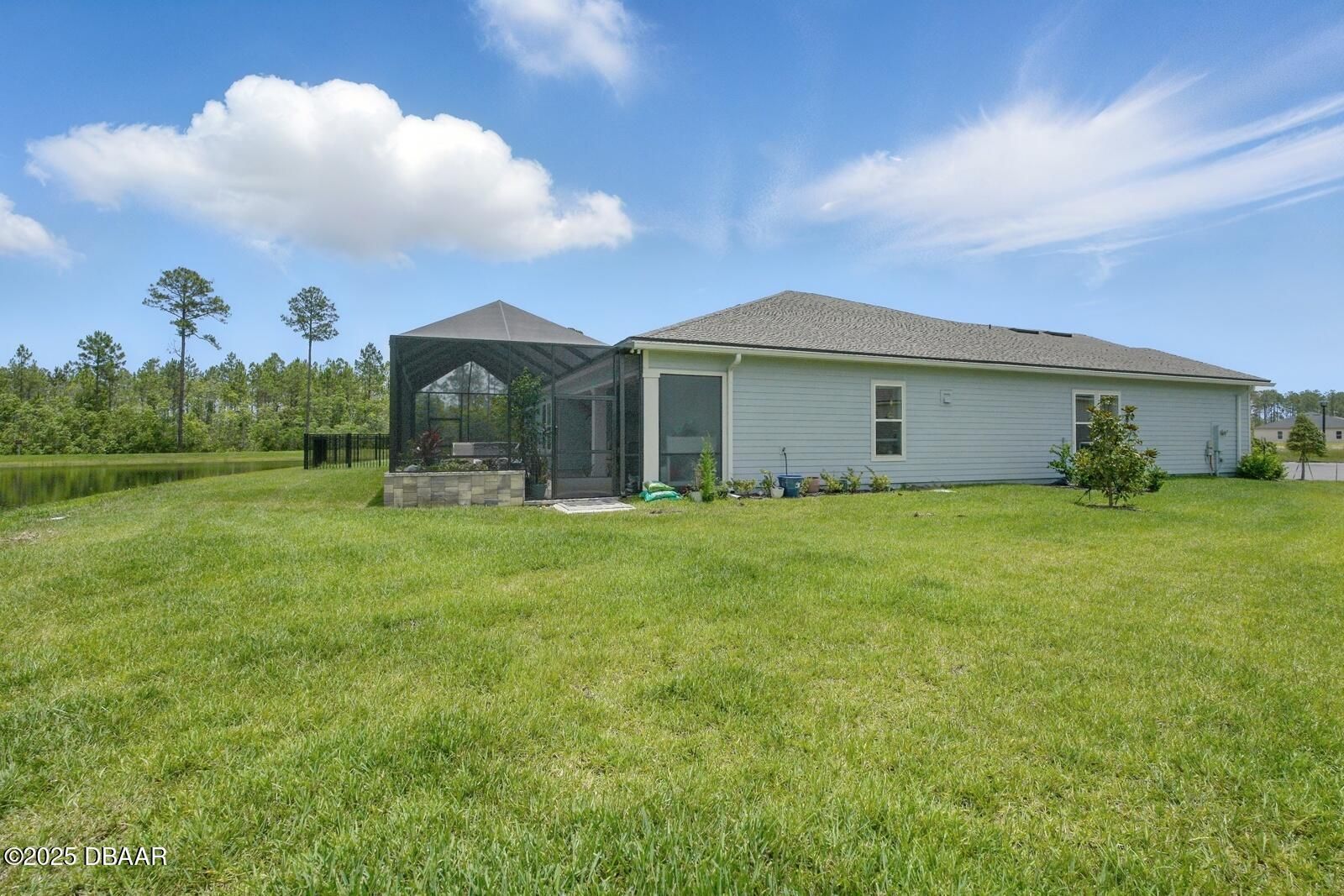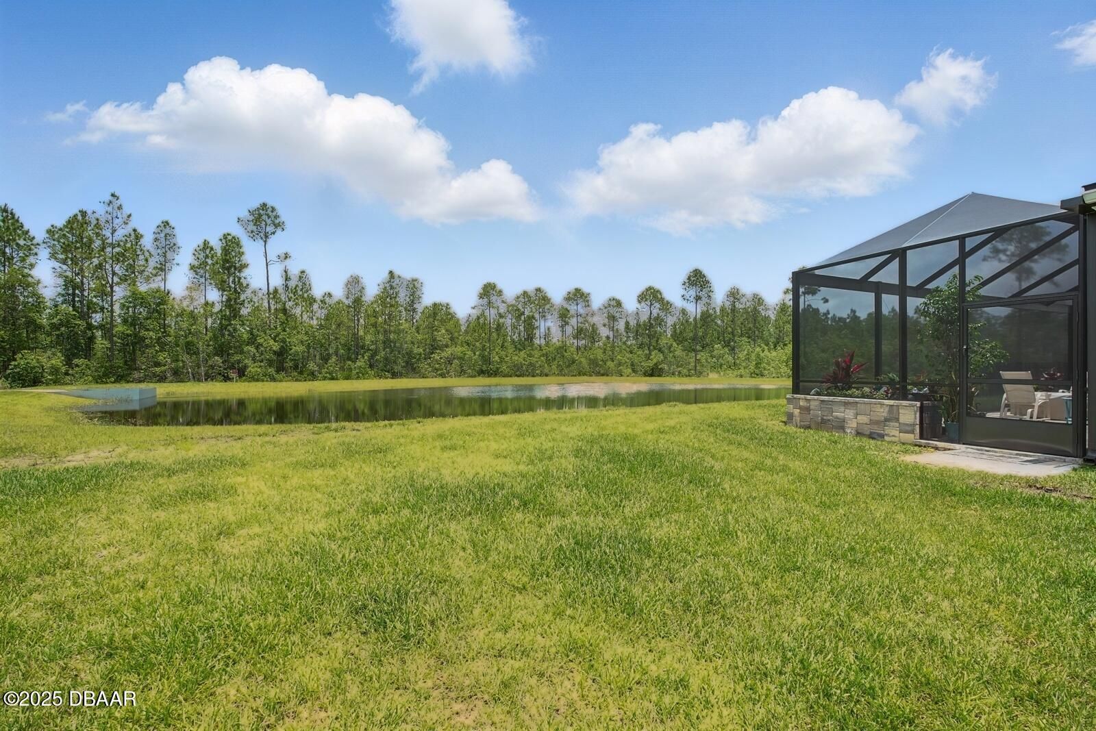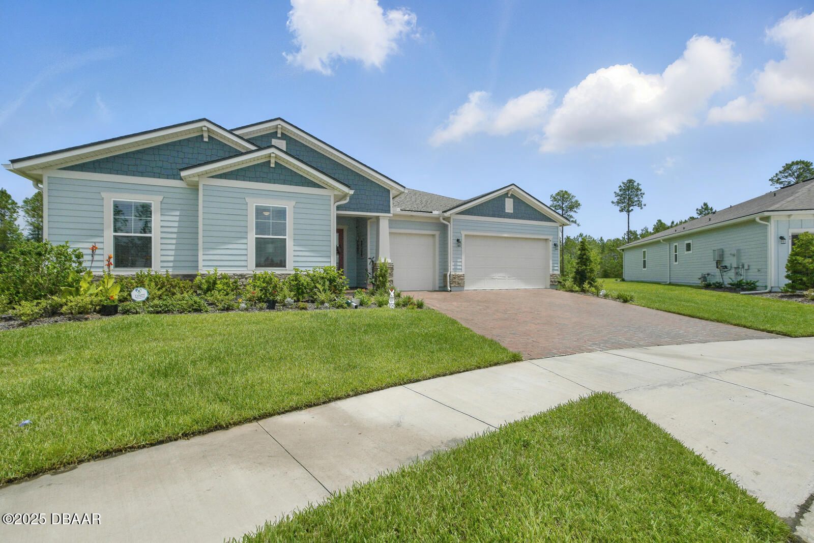 Save the time of building and move right in to this practically brand new custom-built home that feels like new! This incredible 4-bedroom plus office, 2.5-bath, 3-car garage home is perfectly positioned on a premier private lake lot in the highly desirable 55+ gated community of Reverie. From the moment you walk in, you'll be impressed by the soaring ceilings enhanced with upgraded tray ceilings, chunky crown molding, and luxury LVP flooring throughout the main living areas. The open split floor plan is an entertainer's dream, anchored by a stunning kitchen featuring two-toned soft-close cabinetry, a gas range with vent hood, oven/microwave , quartz countertops, a spacious island with bar seating, glass subway tile backsplash, custom wine/coffee bar with wine fridge, and a massive walk-in pantry with elegant pendant lighting. The large living and dining areas overlook the serene preserve and pond, providing peaceful views and the ultimate privacy. The large living and dining areas overlook the serene preserve and pond, providing peaceful views. expansive primary suite offers two walk-in closets and a luxurious en-suite bath with a glass-enclosed, tiled shower featuring dual shower heads, stone accents, 2 built-in seat, and a double quartz vanity. A private office with lake views is conveniently located just off the primary bedroom. The three guest bedrooms are located on the opposite side of the home, offering space and comfort for visiting friends and family, along with a full guest bath. Enjoy Florida living from your 16'x48 oversized 30' mega screened lanai with unobstructed views thanks to a mega screen design, custom paver floor, and a stone planter feature. Built with durable Hardie board construction, this home also includes a whole-house Generac generator, a tankless,Renai water heater, 2 flood lights covering the backyard, and a security system with cameras on the front and back entrances.Owner has also installed over 45 linear feet of Safe Rac shelving along garage walls, over 100 sq ft of plywood flooring in attic for storage, and has had an underground natural gas line put in to enable an installation of a gas fire pit or fire table on the lanai. An aluminum spindle fence per HOA code has also been installed around approximately 1/3 of the backyard Reverie at Palm Coast offers active adult living with close proximity to beaches, golf, restaurants, and shoppingtruly the perfect blend of luxury, privacy, and convenience.