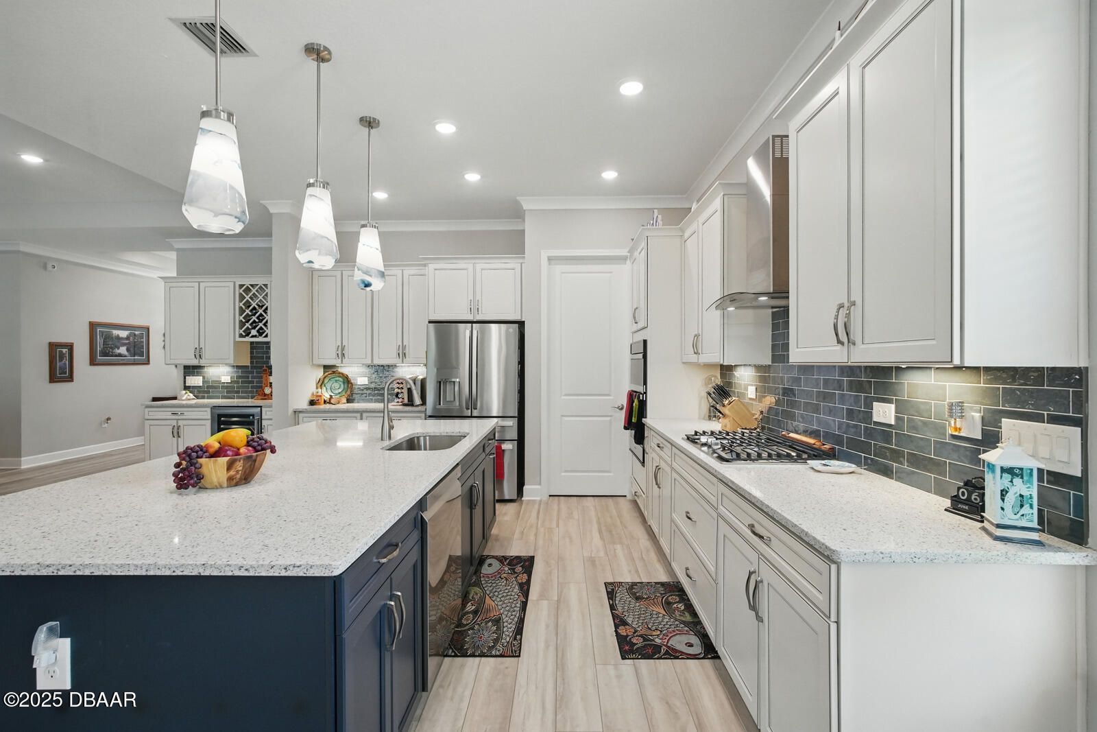 - Wine Cooler, Refrigerator, Microwave, Double Oven, Disposal, Dishwasher