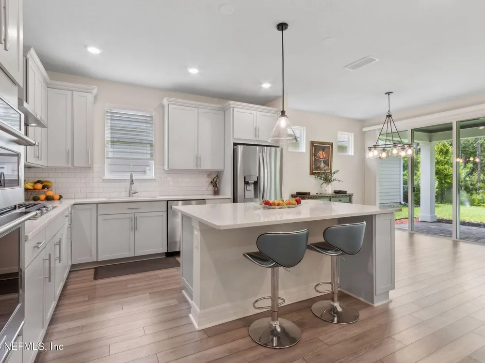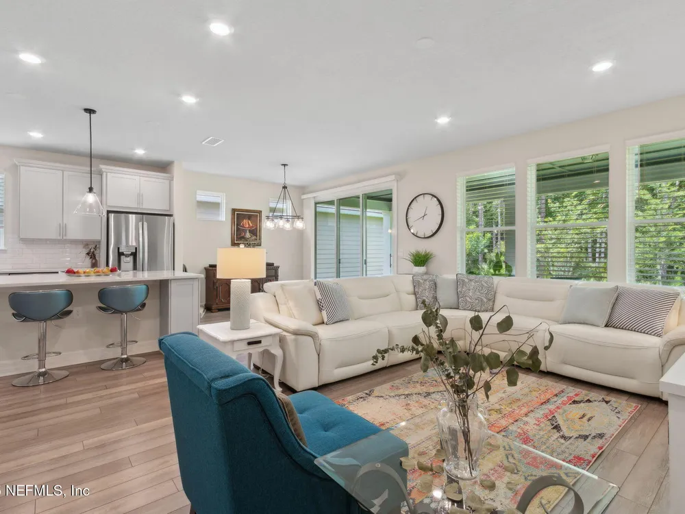 Model-like quality, move-in ready 2021 home on beautiful private preserve lot in Del Webb of Nocatee (a 55+ gated community in Ponte Vedra) 10 minutes to the beach. ''Prosperity'' plan plus a conversion of ''flex room'' into 3rd bedroom by ''Inspired Closets''. Also has large family room & designer's kitchen with quartzite countertops, upgraded stainless steel appliances and soft open/close cabinetry. Ask about Ponte Vedra Inn & Club, The Lodge & Club, Epping Forest Yacht & Country Club, and River Club membership discount pricing for purchasers of this listing, Extended lanai with pavers, luxury wood-like plank vinyl flooring throughout home, interior 8-foot doors, upgraded stainless steel Kitchen aid appliances,soft close cabinet doors in kitchens and owner's suite bath, other upgrades such as mouldings, lighting fixtures, water softener, owner's suite handicap shower, raised toilet height, and laundry shoot drop door from owner's bath to laundry. Must see this gem! Enjoy amenities galore such as full service Canopy Club restaurant and luxurious clubhouse, tennis, pickleball, bocce ball, pool, fitness center, in addition to all of Nocatee walking trails, intracoastal kayak launch, waterparks, shops an restaurants, etc. Enjoy host of regular activities such as arts & crafts groups, wine tasting, Veterans & supporters group, travel club, cards and billiards group, etc.