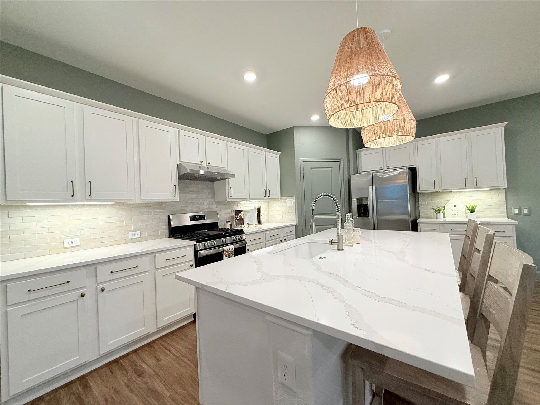 - Breakfast Bar, Ceiling Fan(s), Chandelier, Separate/Formal Dining Room, Double Vanity, Eat-in Kitchen, High Ceilings, High Speed Internet, In-Law Floorplan, InteriorSteps, Kitchen Island, Multiple Living Areas, Multiple Dining Areas, Open Floorplan, Pantry, Quartz Countertops, Stone Counters, Recessed Lighting, Sound System, Storage, Smart Home