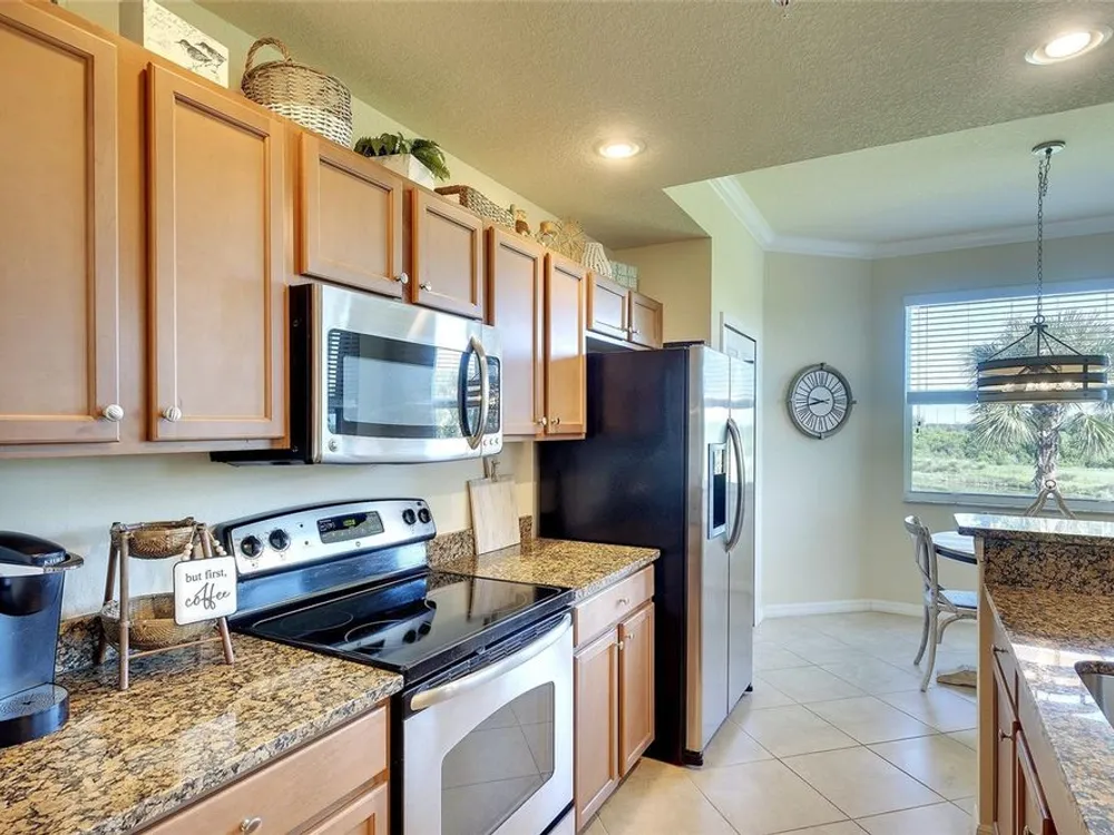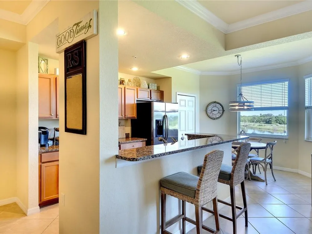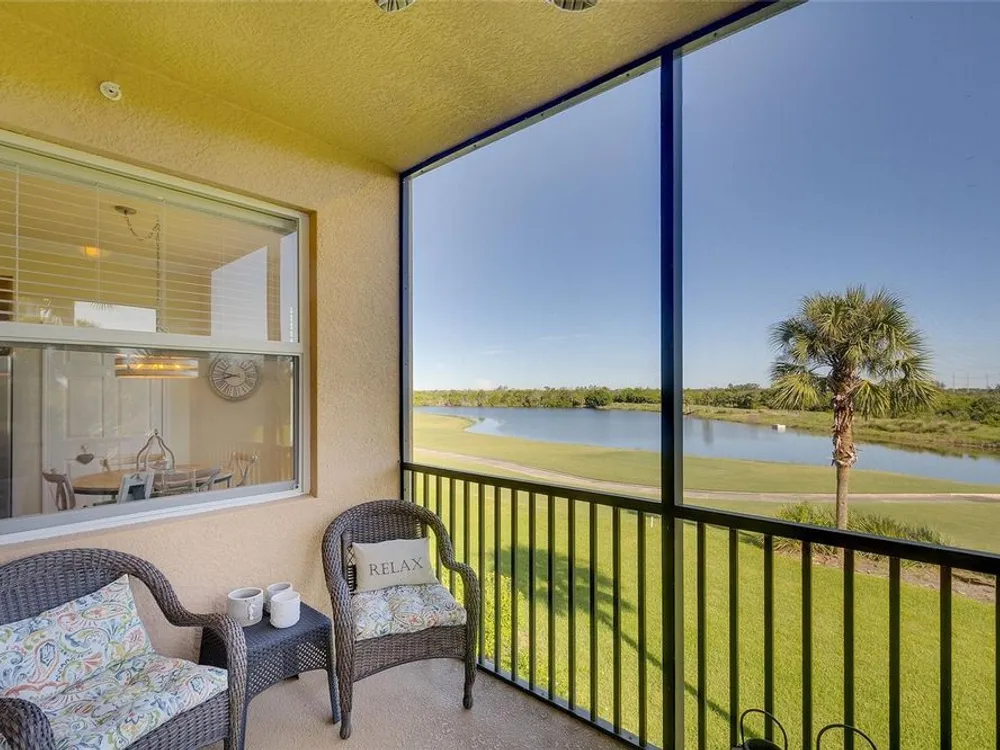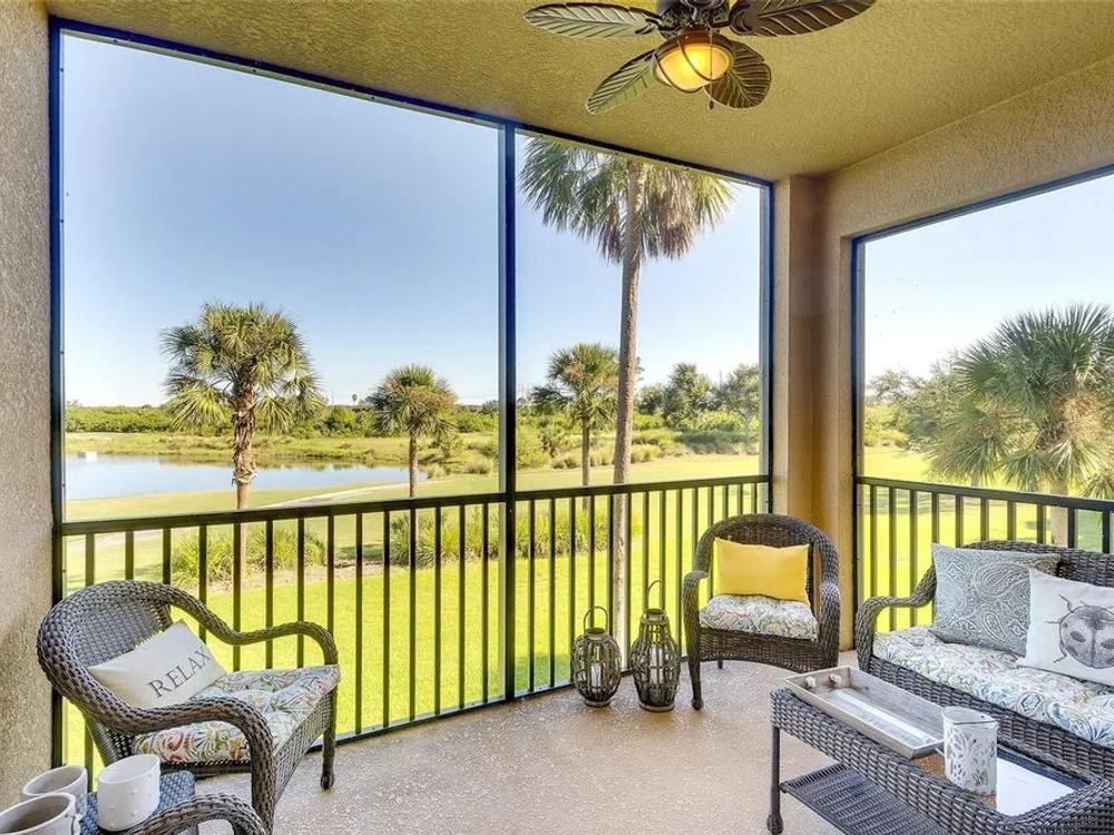 This may be exactly what you’ve been waiting for…Offered TURNKEY FURNISHED this popular GOLF INCLUDED Brookside Floor Plan, features 2 bedrooms, 2 full baths and OUTSTANDING golf course and water views. Located securely within the gates of River Strand Golf and Country Club, ownership includes a DEEDED GOLF MEMBERSHIP in the recently updated 27-hole championship course. AVAILABLE FOR IMMEDIATE OCCUPANCY this meticulously maintained unit is furnished and decorated in a relaxing COASTAL décor and features digital door locks, crown molding, upgraded lighting, porcelain tile installed on the diagonal in the main living areas & upgraded flooring in the bedrooms. The spacious, well-equipped kitchen, central to all activities, features granite countertops with breakfast bar, solid wood cabinets, stainless-steel appliances and all kitchen contents are included. The tranquil owner's suite features ensuite bath with his & hers walk-in closets. HIGH IMPACT HURRICANE RESISTANT WINDOWS & PATIO DOORS provide safety and peace of mind. Other notable features include: An outside storage room for bicycles, golf clubs & beach chairs. A progressive rental program for monthly rentals, if generating income is on your radar plus the Sellers are the original owners and did not have pets, are non-smokers and the unit was never rented. The Modified Master Plan assessment has been PAID IN FULL by the current owners and with construction scheduled to be completed early in 2026 you’ll benefit from the facility updates without additional cost. Amenities include an updated 39,000 sq ft club house with on-site restaurant and grill room, 2 state of the art fitness centers with 24/7 access, updated Tiki Bar, 2 resort style pools with hot tub and resistance pool, 8 heated satellite pools, and a separate TENNIS CLUB with 8 Har-Tru lighted courts and PICKLE BALL courts. The convenience of this LOCATION cannot be overstated as it’s ideally situated just minutes from all essential amenities and top attractions: 2.5 miles to the new Marketplace at Heritage Harbour home to Costco, Target, Miller’s Ale House, Academy Sports, and Hobby Lobby, with several additional stores proposed. 3.5 miles to the Walmart Super Center, 3.6 miles to Home Depot, 8.5 miles to the Ellenton Premium Outlet Mall and 16 miles to the Bradenton/Sarasota Int’l Airport. With easy access to I-75 the University Town Center with upscale shopping and dining is 13.5 miles as well as the many attractions of downtown Sarasota and Bradenton, multiple performing arts venues, galleries, world class dining, award winning beaches, and so much more…just minutes away. LIVING IS EASY, CONVENIENT AND SECURE in this ACTIVE LIFESTYLE COMMUNITY…..just bring your suitcase and ENJOY the "lock and leave" convenience of MAINTENANCE FREE living!