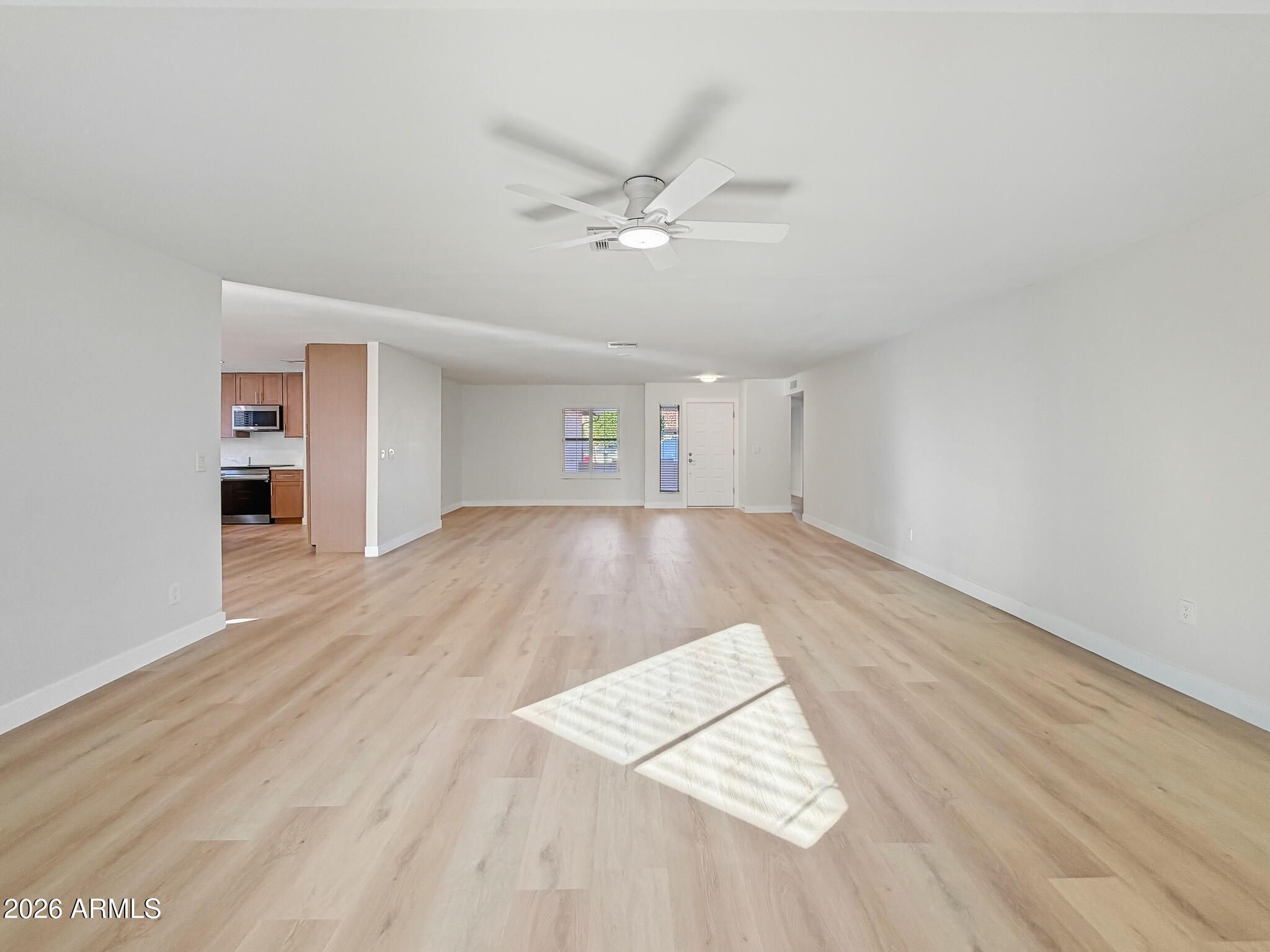 Completely remodeled in 2025 with a brand-new interior, this single-level home features an open layout, new flooring throughout, fresh interior paint, all-new cabinets, and a redesigned kitchen with new Samsung appliances. The fully remodeled bathrooms include modern finishes, new vanities, and updated fixtures. Additional upgrades include new doors and hardware, new baseboards, recessed kitchen lighting, and new windows throughout. No interior steps and direct access to a private backyard with a covered patio. Located in the guard-gated Fountain of the Sun 55+ community offering a pool, clubhouse, golf course, and an active social calendar. Conveniently close to shopping, dining, and major roadways.