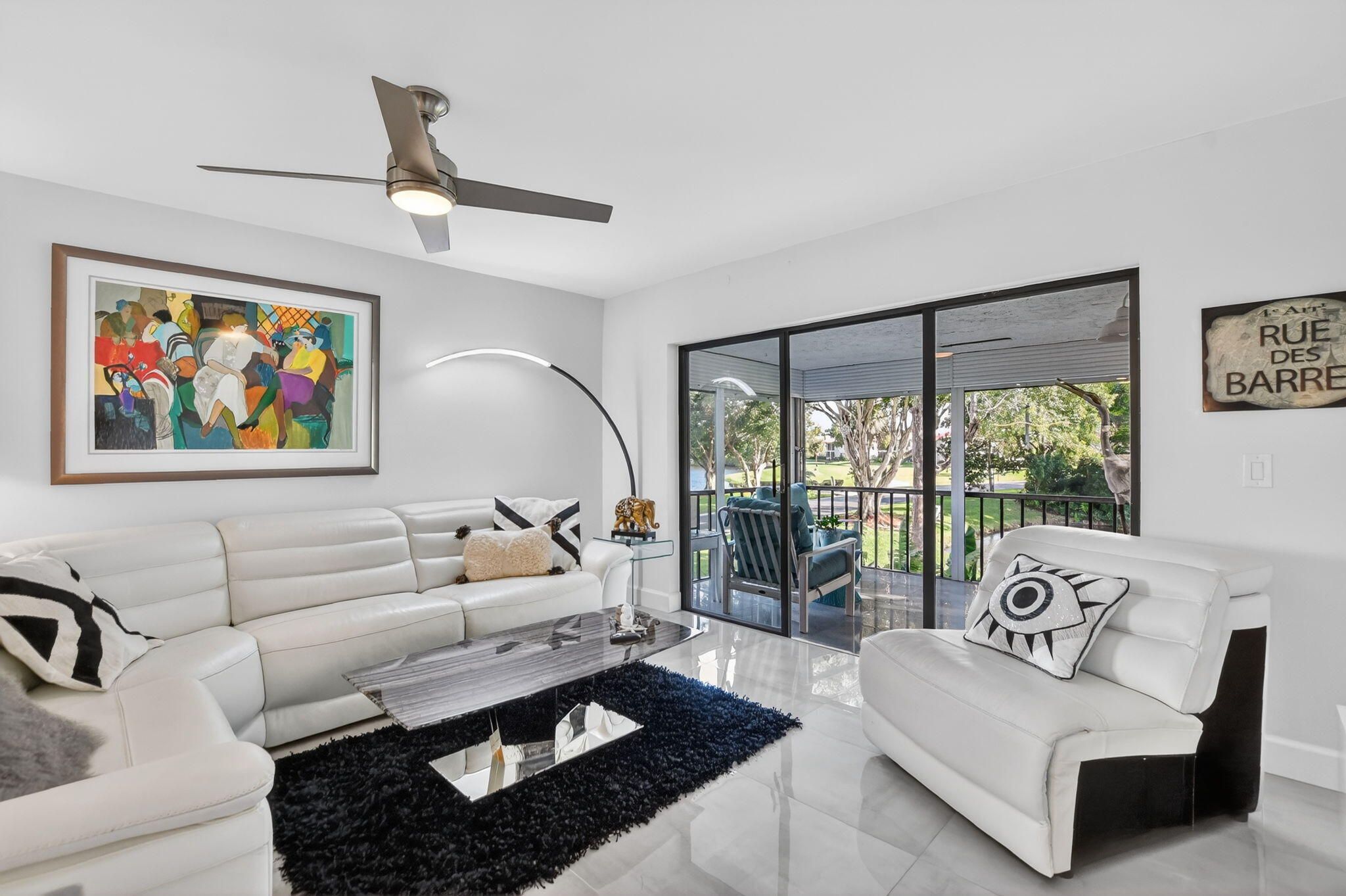 OWNER SAYS BRING OFFERS! Beautifully updated 2-bedroom, 2-bath end-unit condo w/ NEW ROOF located in the active Boca Lago Country Club community. Can be sold furnished or unfurnished. This end unit allows abundant natural light to cascade throughout, enhancing the open & airy layout. The home features oversized porcelain flooring throughout the main living areas, creating a seamless & elegant aesthetic. The renovated kitchen is both stylish & functional, showcasing shaker cabinetry, granite countertops, a chic tile backsplash, a large island, along w/ a butler's cabinet for additional storage and a new refrigerator perfect for entertaining or everyday living. The unit has been elegantly & thoughtfully upgraded, including sophisticated modern light fixtures throughout, & features a ... custom bar cabinet ideal for hosting guests. The primary suite features a fully renovated en-suite bath with modern cabinetry, beautiful contemporary fixtures, and a walk-in shower with frameless glass doors. The guest bathroom has also been updated with new cabinetry, granite countertops, updated fixtures, and flooring, providing a cohesive and modern design throughout. Enjoy indoor-outdoor living in the spacious screened lanai, offering serene lake and golf course views, creating a tranquil setting for morning coffee or evening relaxation. Additional features include: New roof (2025) Samsung front-load washer & dryer (approx. 5 years old) Boca Lago is a gated, beautifully landscaped active community offering resort-style amenities, including an 18-hole championship golf course (Membership OPTIONAL), clubhouse, fitness center, tennis, bocce courts, and multiple swimming pools. You'll enjoy an active clubhouse acroos the street from this unit ... offering many activiities such as water aerobics, Mahjong, card games, bingo, book club and a pool tabe table just to name a few. Conveniently located close to shopping, dining, major highways, and Boca Raton's renowned beaches.