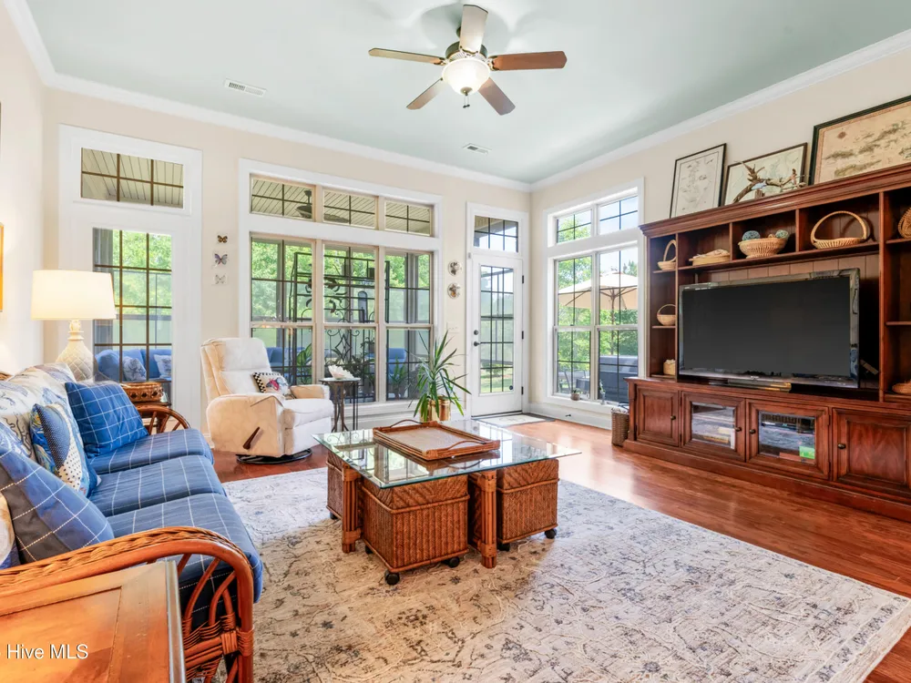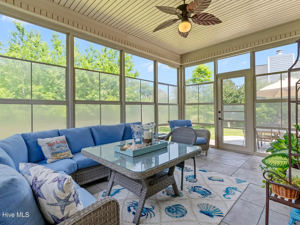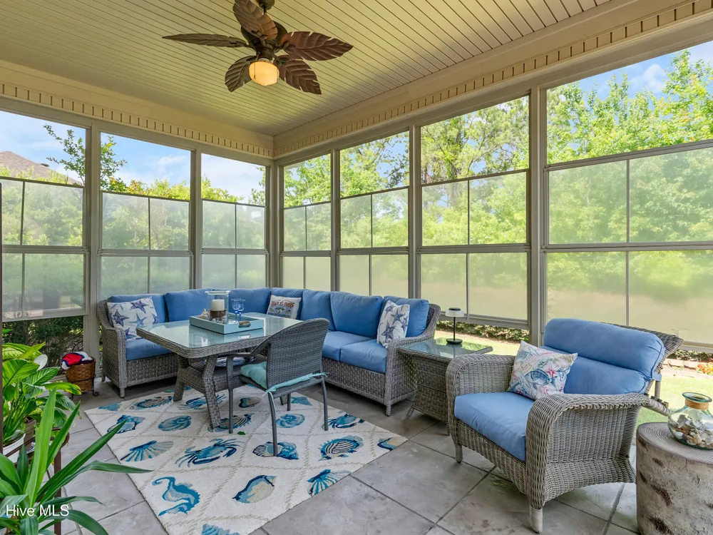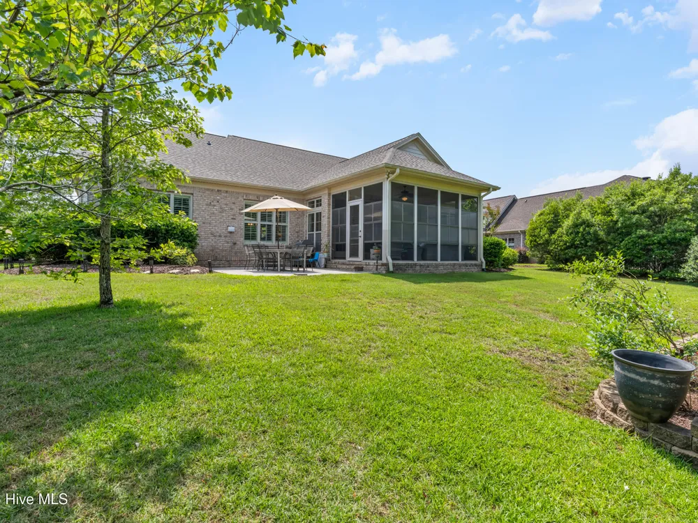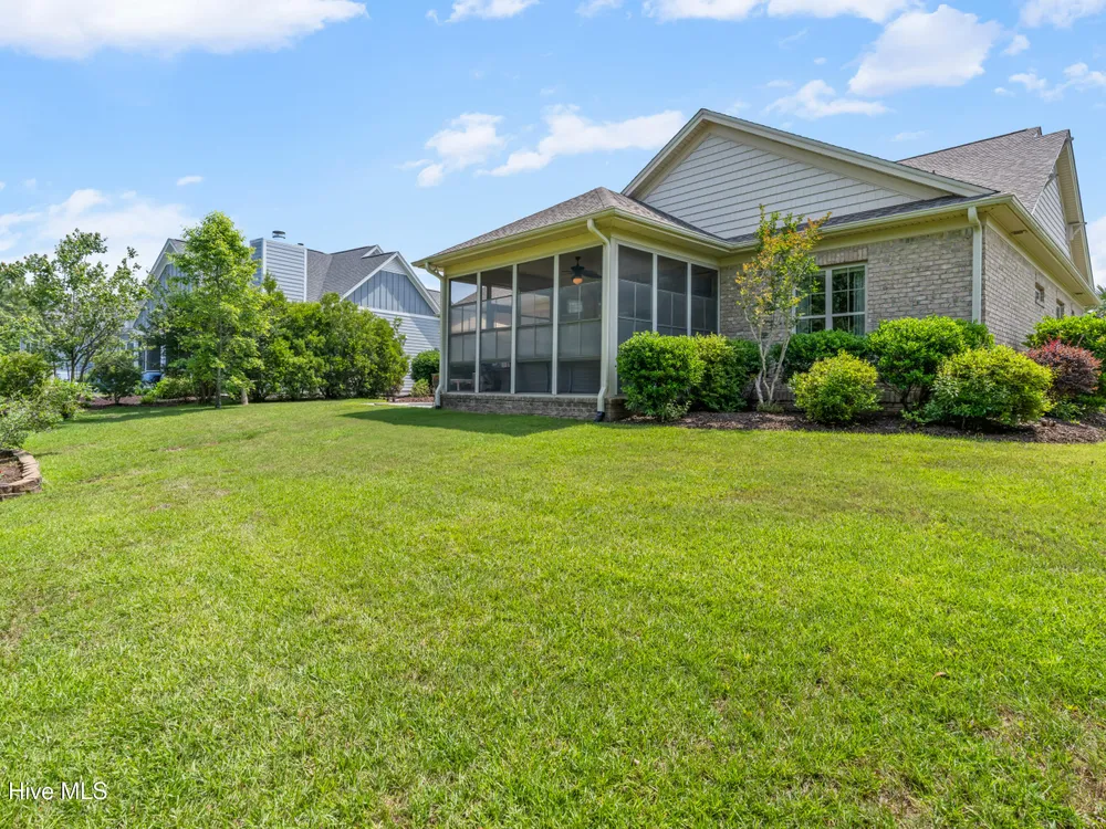 Come explore this beautiful home in Compass Pointe. New Roof in 2024 and new HVAC in 2022, so a great saving to start. Backing up to a private, natural setting, this open floor plan has features throughout. Take advantage of the savings and convenience by owning this home before summer kicks in. The spacious front porch offers great opportunities to say hello to all your neighbors passing by, in addition to being tucked back off the street. As you enter the foyer, you are flanked by a nice study and formal dining room. The beautiful built-ins surround the fireplace in the great room. As you continue in, your eyes take you right through the home to the finished sunroom, and on to the EZ Breeze screened porch and patio with stamped concrete. The entire home has been expanded 3 feet deeper, giving the Owners Suite, great room and guest bedroom more room. The primary suite offers custom closet features. This large, over 1/3 of an acre homesite features conservation, allowing unique privacy to this home. The oversized kitchen features granite countertops and custom cabinetry extending into the breakfast nook, all with under and over counter lighting. Engineered hard wood and tile flooring are throughout the living areas, with carpeting in all bedrooms and upstairs. The bonus room, with full bath, offers a nice on-suite for guests, and you will not believe the amount of attic storage. Plantation shutters and convenient Surround Sound are throughout most of the home. Compass Pointe features the Grand Lanai Clubhouse, Health and Wellness Center, indoor and outdoor pools, and a lazy river, tennis and pickleball courts, and a large events lawn for Cornhole and Bocce leagues. The Compass Pointe Golf Club offers membership opportunities for it's 18 hole golf course and state-of-the-art facilities for its members.