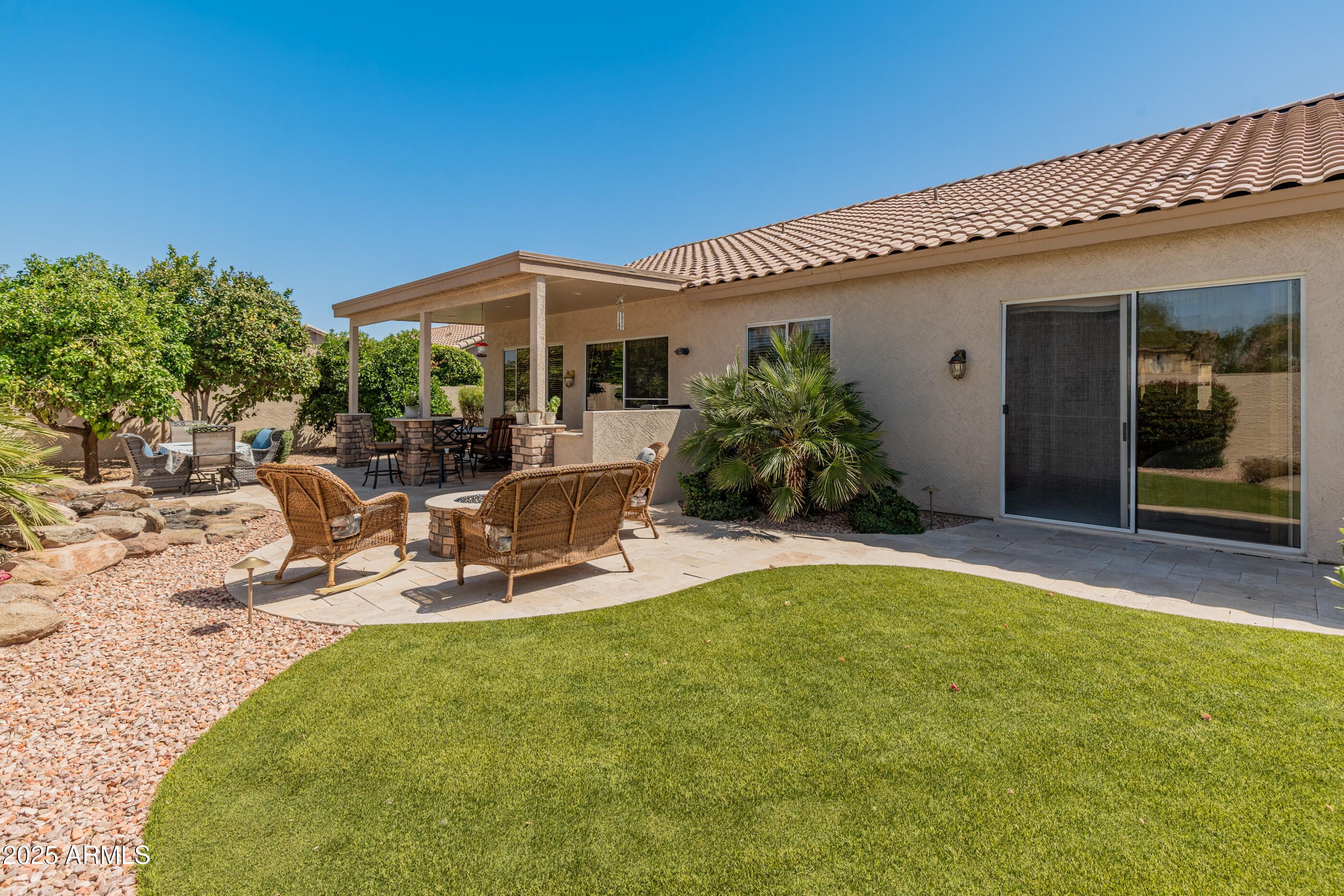 Welcome to this beautifully situated and wide open Bradshaw model with almost 2000 sq ft, 3 bedrooms/2 bathrooms, 2.5 car garage and gorgeous backyard with big water fountain, built-in BBQ, artificial turf, amazing landscaping and travertine tile. Both bathrooms have been completely remodeled this year! Front curb appeal is off-the-charts with a patio big enough for a full set of furniture in a lovely neighborhood. All of this AND located in amazing, age-restricted Westbrook Village that has 2 golf courses, pickleball, tennis, 2 restaurants, etc. and over 50 groups you can join. You will love your new life with restaurants galore, shopping nearby, and close to the 101