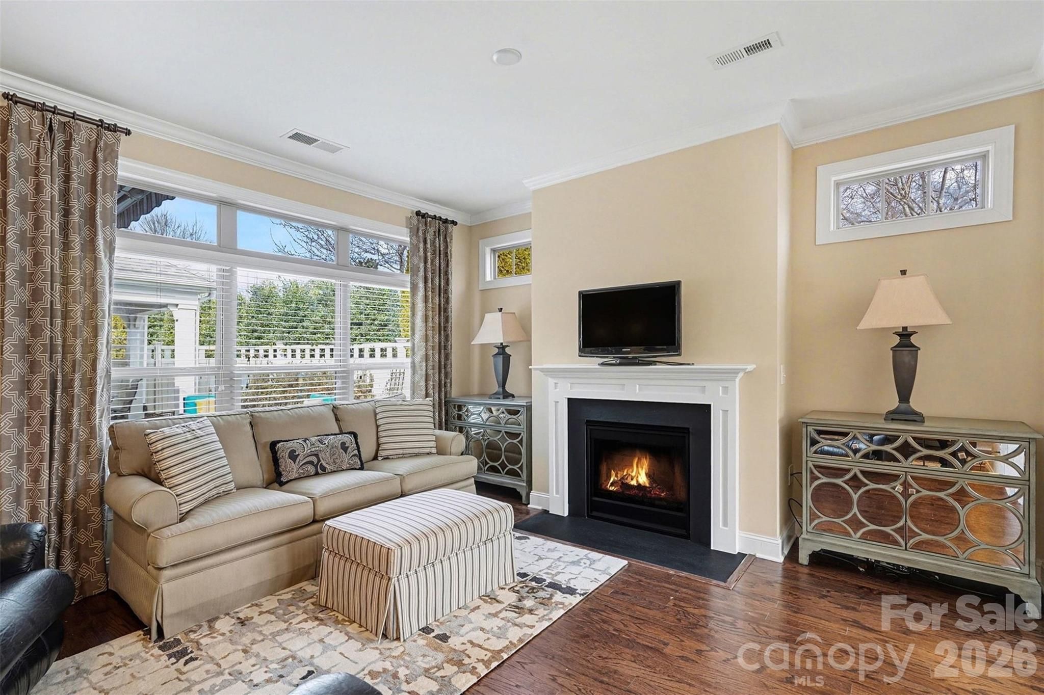Beautifully bright and open corner unit home - classified as a condominium yet lives like a single family home. Located in The Courtyards of Huntersville, a stunning 55+ community, this home has everything you can want and is in the perfect location! Community is just down the road from Birkdale Village providing you endless shops & restaurants plus is just across the street from Lake Norman with boat access at Blythe Landing Park. This particular home sits across from the clubhouse with outdoor pool and quaint pond access. The stunning curb appeal ushers you in past the covered front porch and through the formal entry way. Entire main floor has hardwood floors and recessed lighting creating a modern open feel. On the right is a bright home office or sunroom - the perfect reading or piano area. Living room area is flooded with natural light from the full wall of windows plus a focal gas fireplace for cozy evenings. The gourmet kitchen is partially open to the living room and has main center island with bar seating + formal dining area to the side making it a great layout for hosting family & friends. Kitchen features matching S.S appliances and tons of rich wooden cabinets for plenty of storage. Primary bedroom on the main level has tray ceiling, spacious walk-in closet, and full attached bath with dual sinks & a step in corner stone shower for true luxury. Second full hall bath and bedroom perfect for guests. Upstairs features a large bonus room or bedroom 3 option with attached full bath. Enjoy relaxing no matter the season from your dual backyard living spaces including a covered patio w/ ceiling fan for hotter days and an open patio space for cooler gatherings. All fully fenced in with gate access to the corner space. This is one home you don't want to miss! Come make your next chapter of memories here!