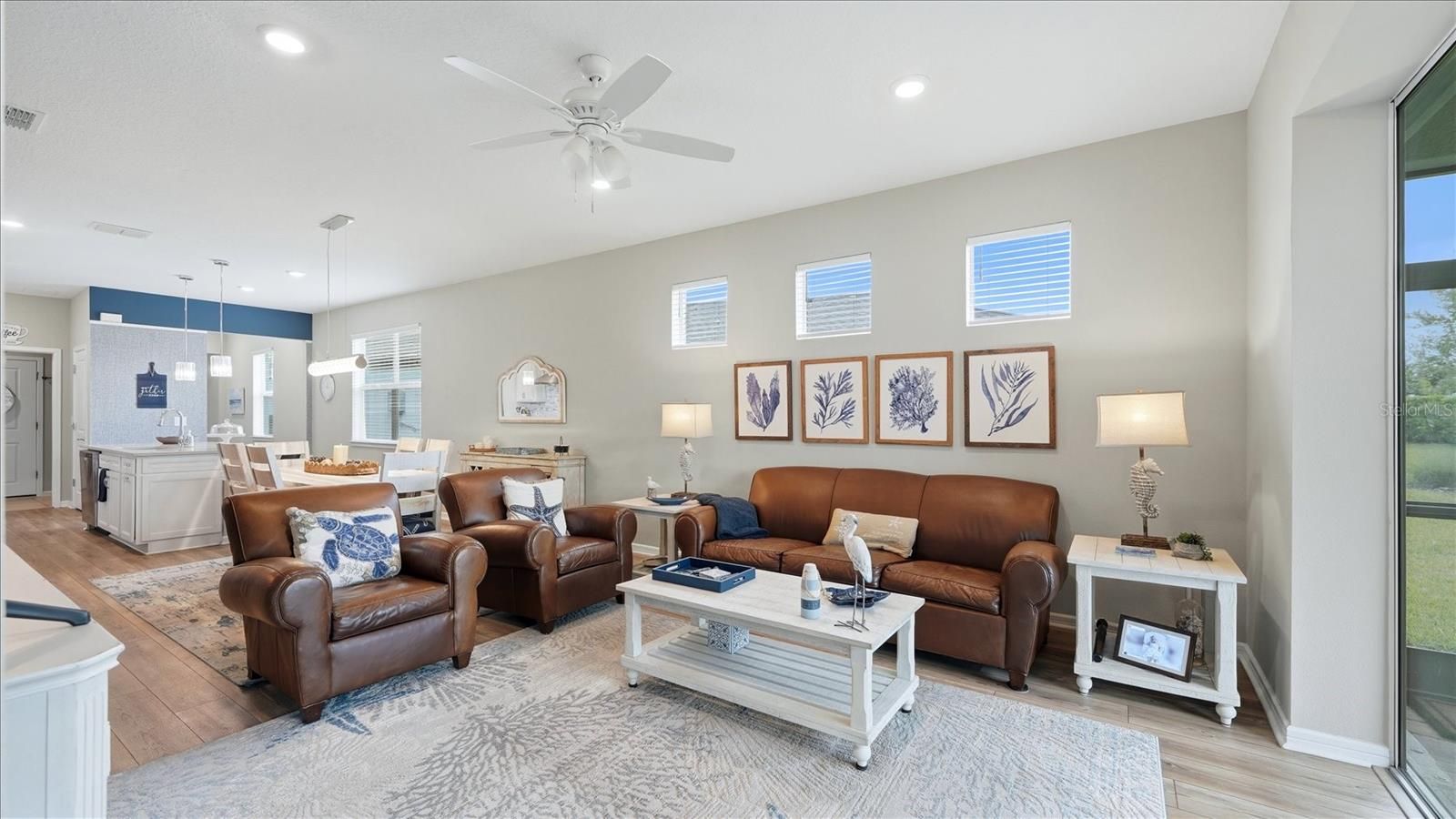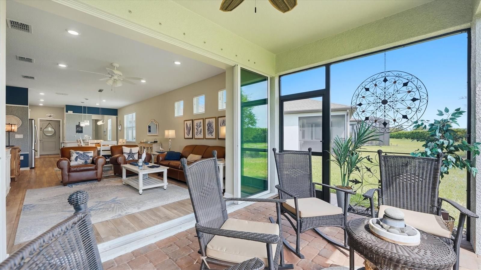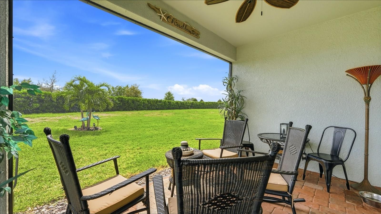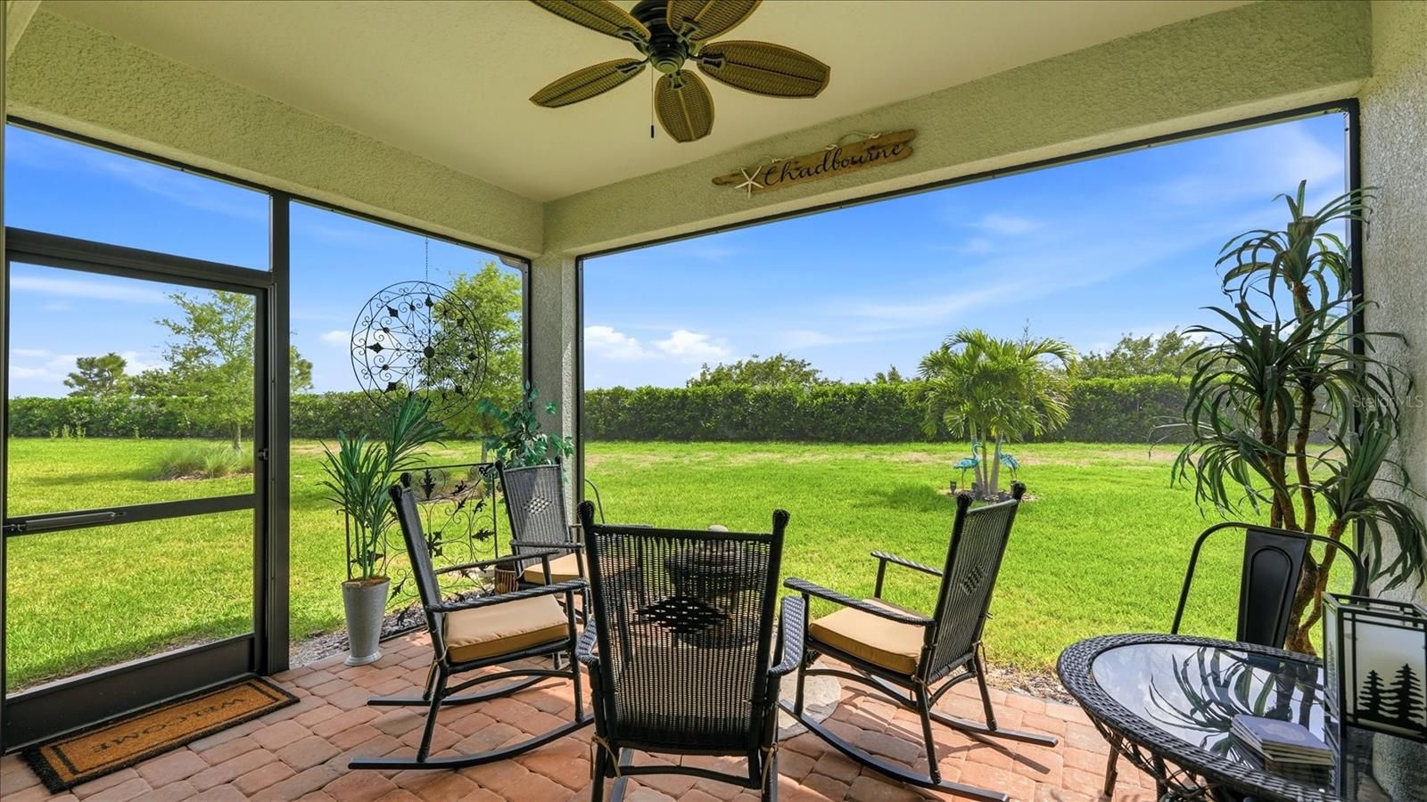 Sited near the end of a cul-de-sac, this beautifully maintained home has been seasonally enjoyed and lovingly maintained. Originally decorated with a blue seaside cottage vibe, sellers have found a larger home in the community they love and have restored many areas to the original interior color. A chef’s kitchen with pull-out lower drawers is the heart of the home. The extended 4-foot garage provides space for two vehicles plus workshop or storage — a rare and valuable upgrade. Interior layout includes two split bedrooms, two full baths, and a versatile flex room currently used as a music room, plus excellent storage throughout. The sliders disappear completely, allowing the panoramic lanai screen to bring the outside in. The sellers are moving within the community to accommodate a Steinway piano, reflecting their love for the neighborhood and lifestyle. Motivated sellers have priced this home aggressively. Del Webb Bay View offers active lifestyle amenities, including pickleball, tennis, bocce, fitness center, community gardens, shuffleboard, two dog parks, and an on-site bar and grill. Golf cart-friendly! Convenient access to Tampa, St. Petersburg, and Sarasota airports, world-class beaches, shopping, and waterfront dining. HOA includes tree and grounds maintenance, cable TV, and internet. CDD is included in current tax amount. This home is NOT located in a flood zone.