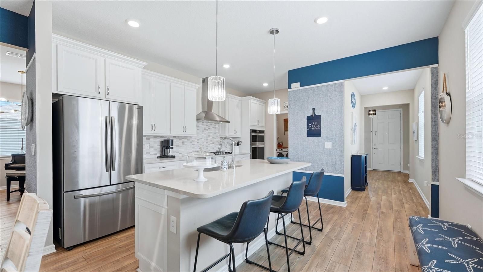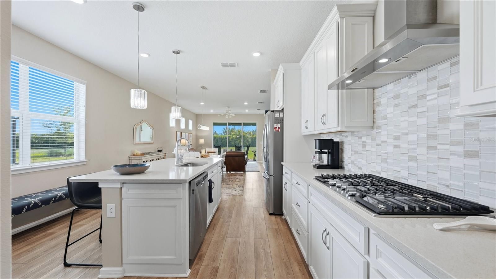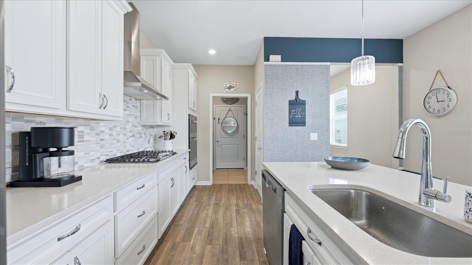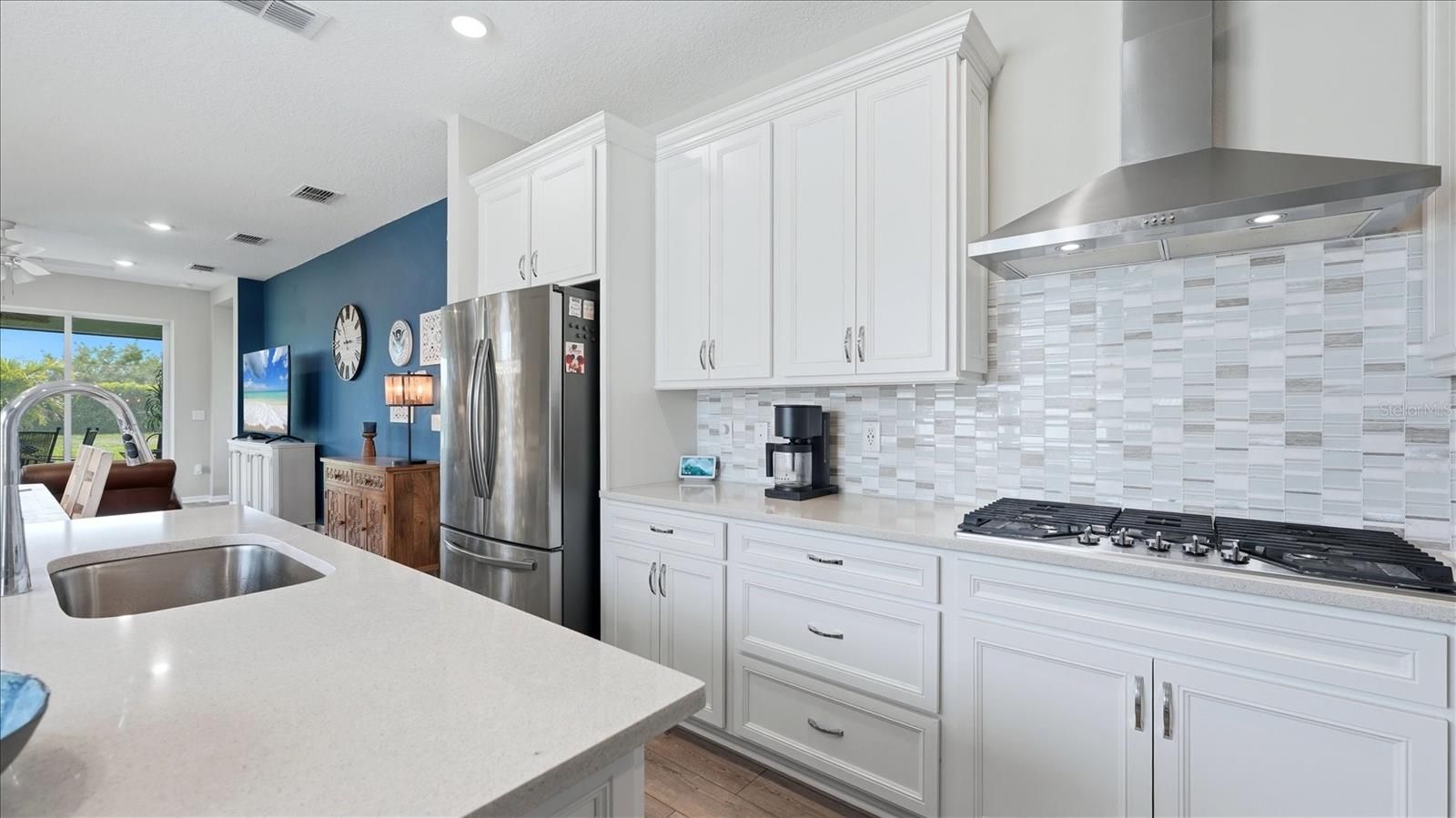 Sited near the end of a cul-de-sac, this beautifully maintained home has been seasonally enjoyed and lovingly maintained. Originally decorated with a blue seaside cottage vibe, sellers have found a larger home in the community they love and have restored many areas to the original interior color. A chef’s kitchen with pull-out lower drawers is the heart of the home. The extended 4-foot garage provides space for two vehicles plus workshop or storage — a rare and valuable upgrade. Interior layout includes two split bedrooms, two full baths, and a versatile flex room currently used as a music room, plus excellent storage throughout. The sliders disappear completely, allowing the panoramic lanai screen to bring the outside in. The sellers are moving within the community to accommodate a Steinway piano, reflecting their love for the neighborhood and lifestyle. Motivated sellers have priced this home aggressively. Del Webb Bay View offers active lifestyle amenities, including pickleball, tennis, bocce, fitness center, community gardens, shuffleboard, two dog parks, and an on-site bar and grill. Golf cart-friendly! Convenient access to Tampa, St. Petersburg, and Sarasota airports, world-class beaches, shopping, and waterfront dining. HOA includes tree and grounds maintenance, cable TV, and internet. CDD is included in current tax amount. This home is NOT located in a flood zone.