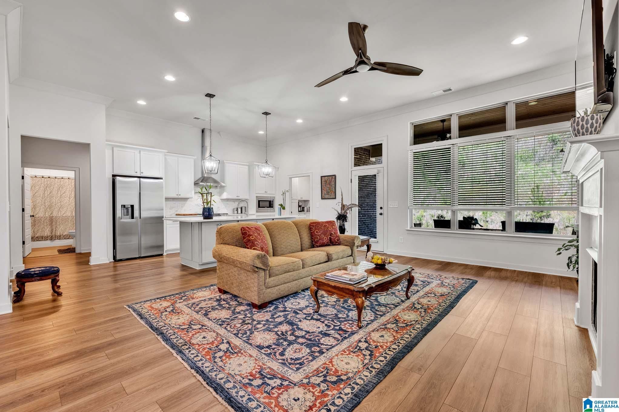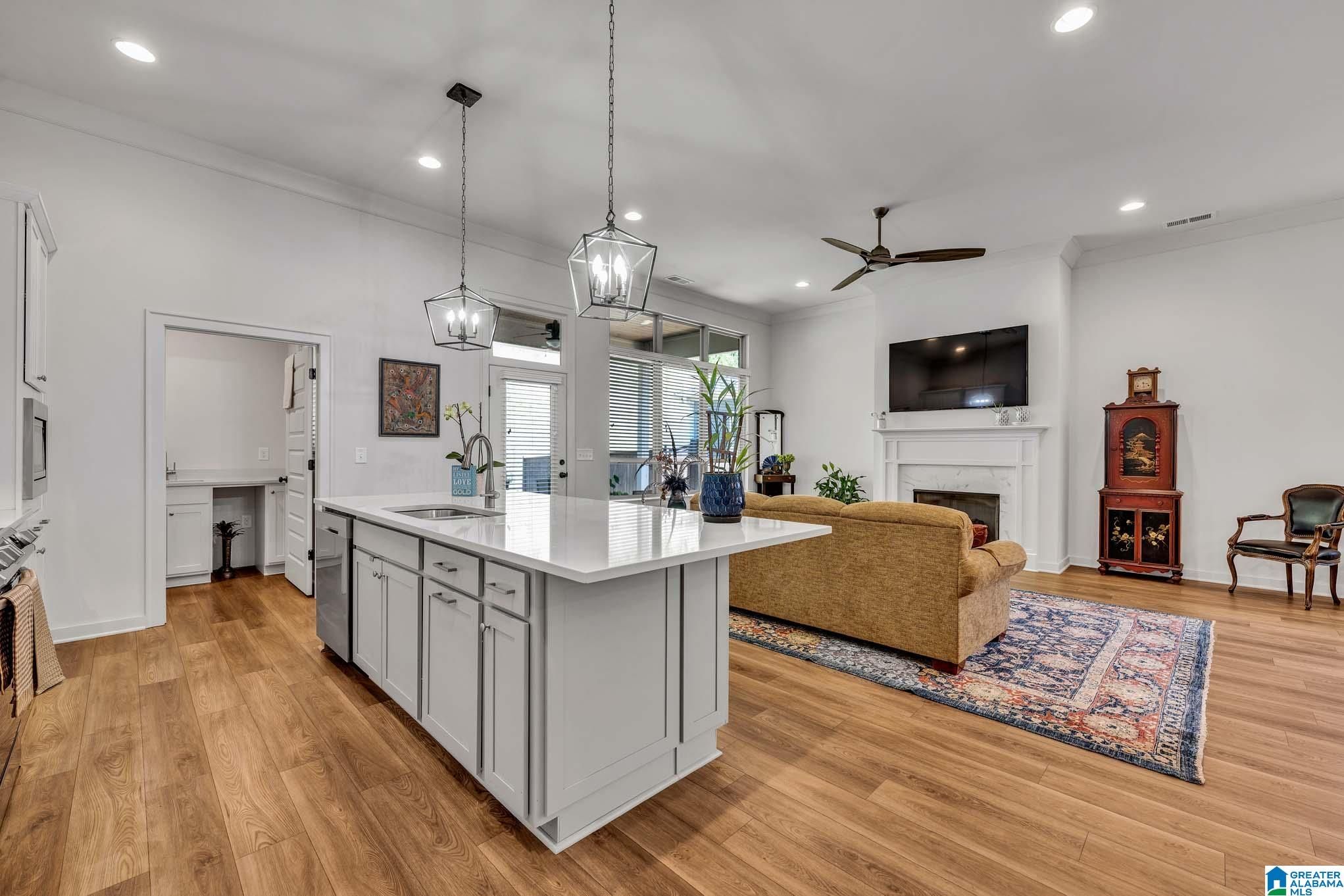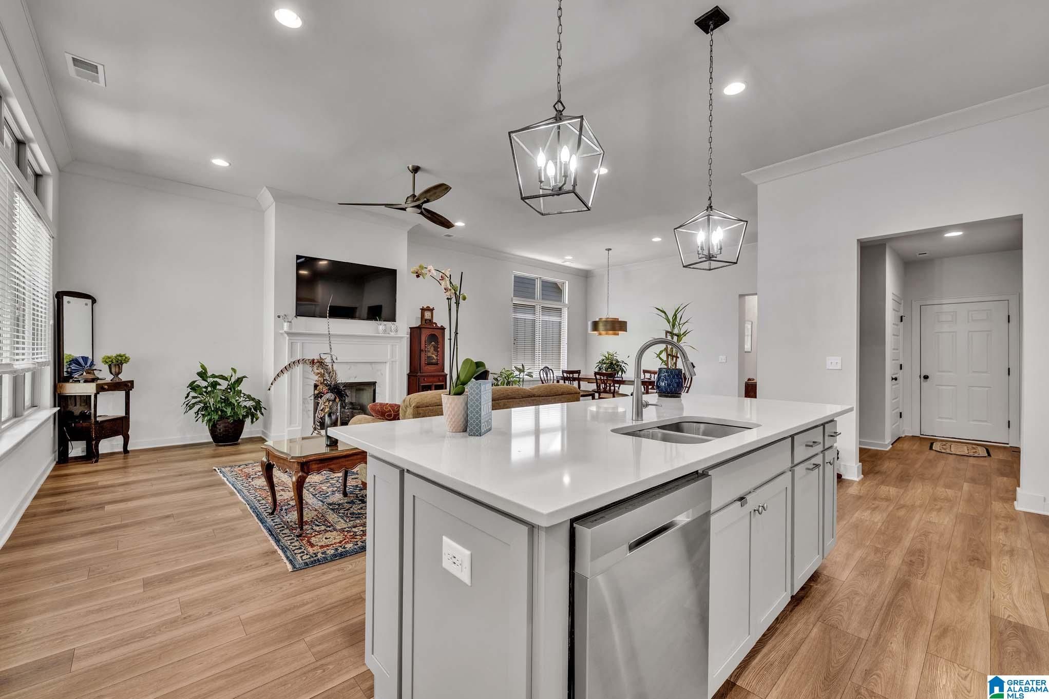 Welcome to 8318 Annika Drive where low maintenance living meets comfort and style! This thoughtfully designed home offers a bright, open floor plan perfect for both every day living and entertaining. Gourmet kitchen is complete with stunning quartz countertops, stainless steel appliances and a fantastic butler's pantry. Primary bedroom features a spa-like bathroom with tile shower, double vanities, and HUGE walk-in closet. Two additional bedrooms and full bath are also on the main level. Gorgeous hardwoods and designer finishes throughout! Back patio is covered and offers the perfect spot to enjoy your morning coffee. Located in one of Hoover's most desirable 55+ communities with a community pool, clubhouse, scenic walking trails, fitness center, AND community garden! This community offers a wide array of social activities and clubs available to home owners!