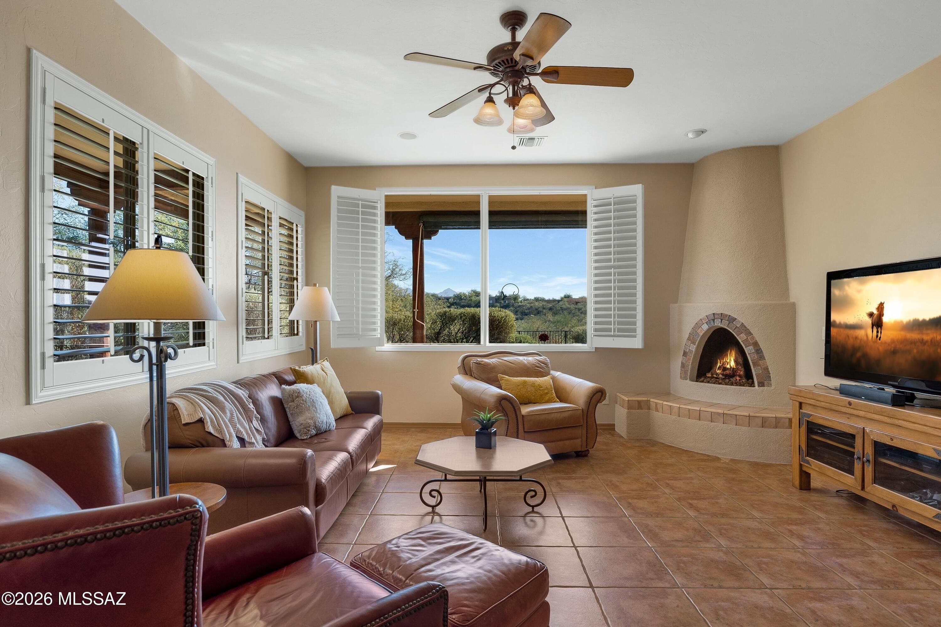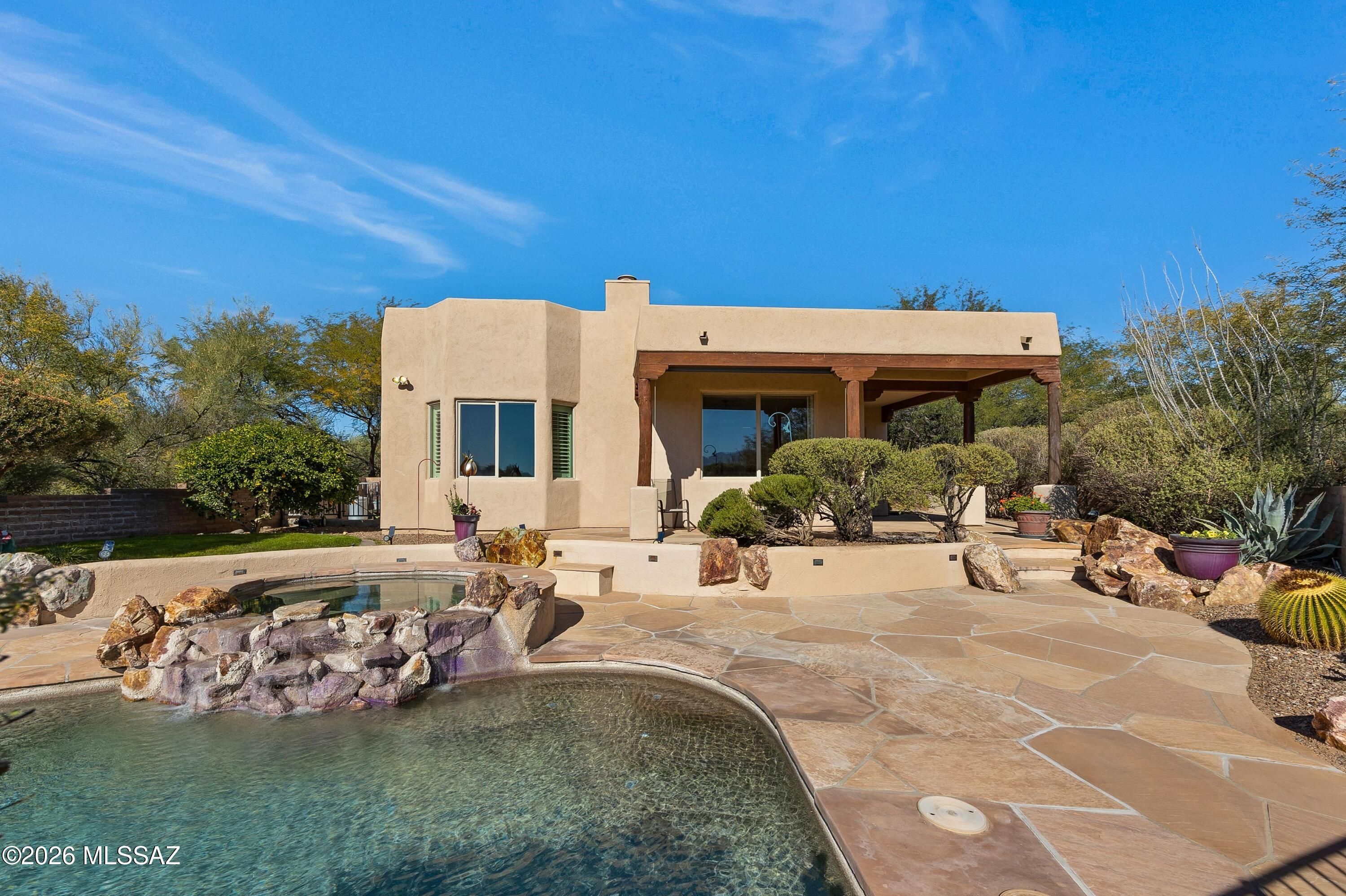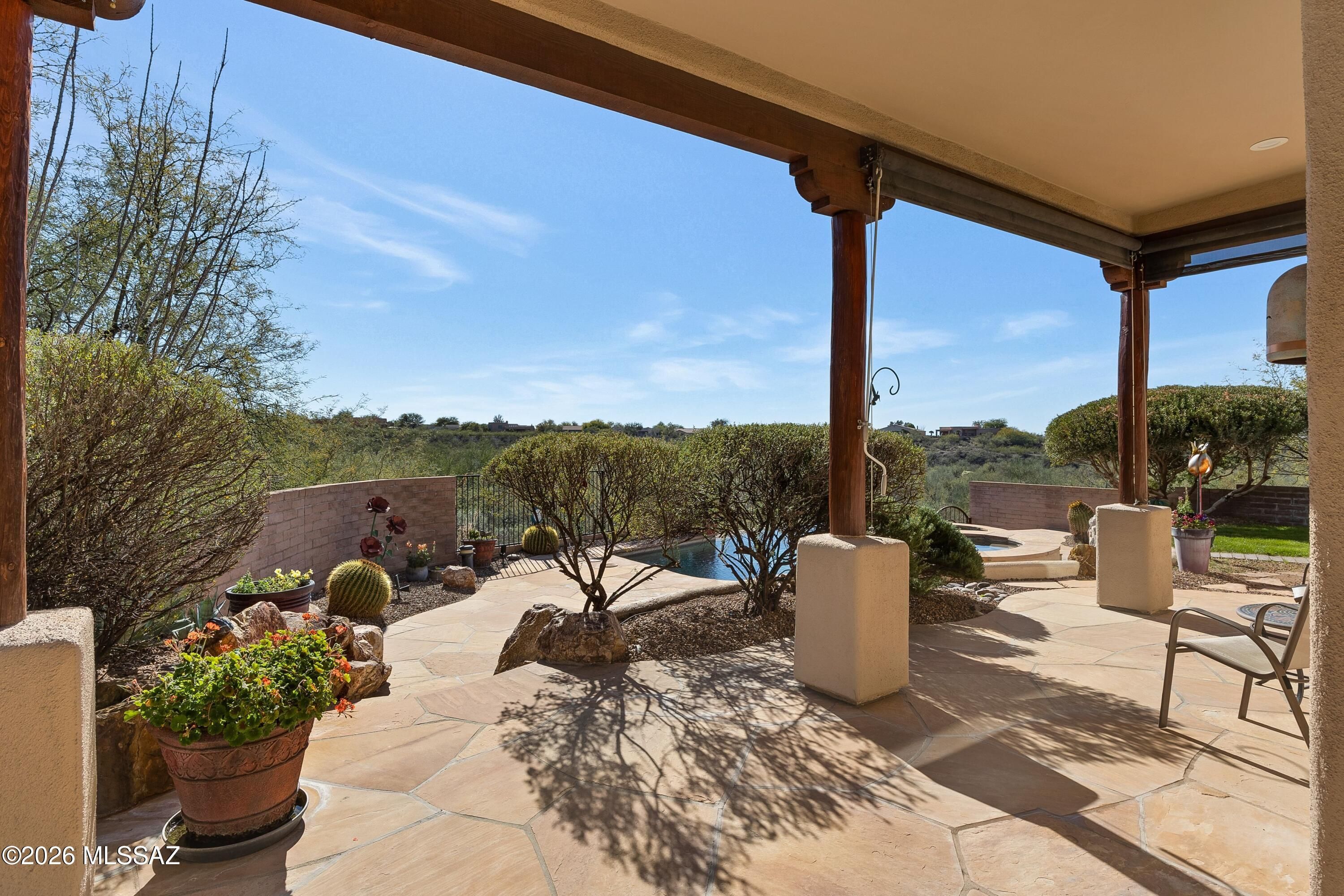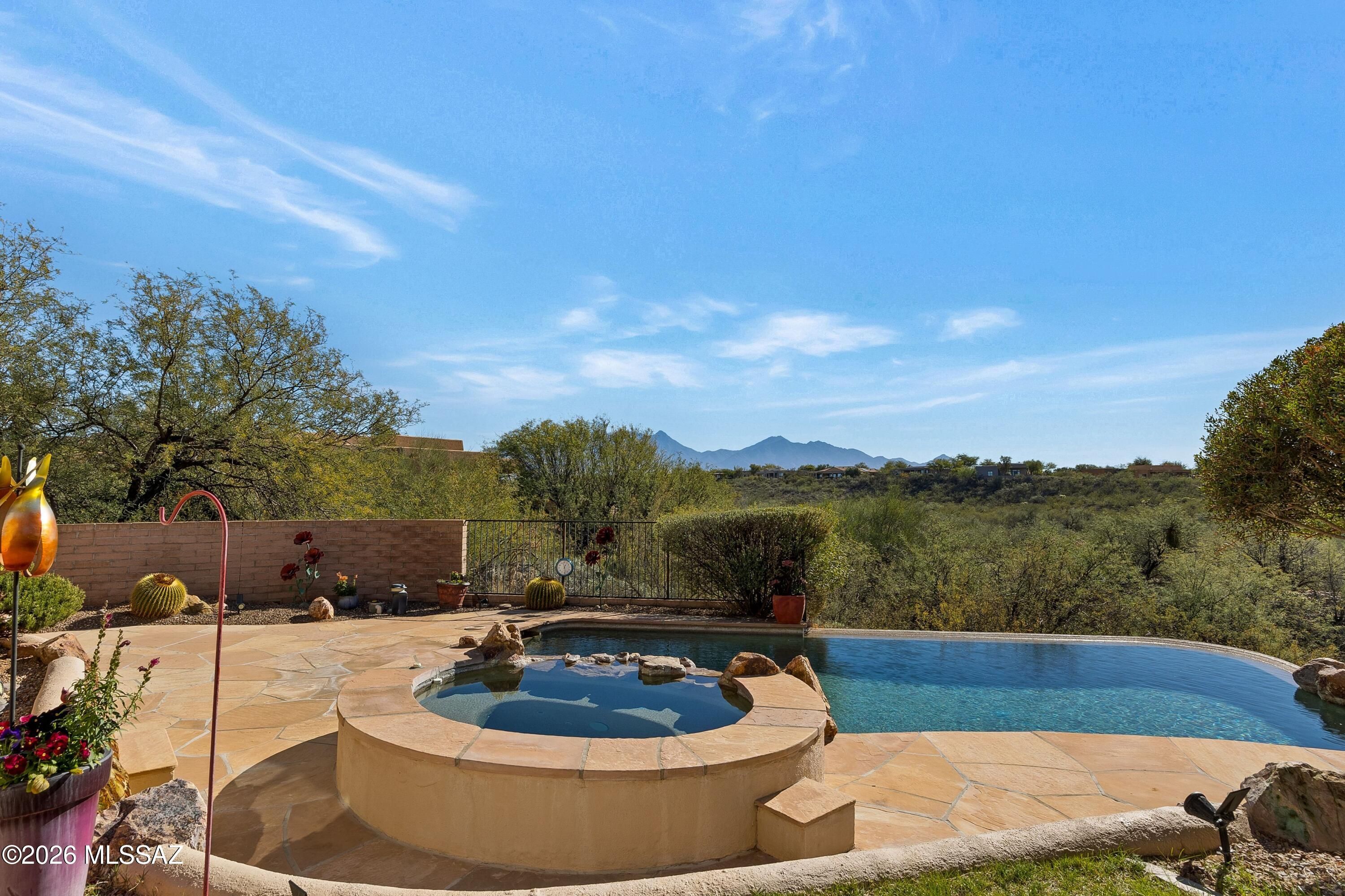 Escape to this stunning retreat where the southern Arizona desert connects with the sky! Perched over an arroyo and sitting in absolute privacy with no neighboring homes behind you, this exceptional property offers stunning views of the majestic Santa Rita Mountains and an endless open desert landscape. The centerpiece of this desert oasis is the breathtaking negative edge pool that creates an infinity effect, making you feel suspended at the edge of the world. As day turns to night, slip into the spa and lose yourself in some of the most spectacular stargazing imaginable. Complete with an outdoor grill for al fresco dining, this outdoor living space isn't just a yard, it's your personal gateway to the desert lifestyle you've been waiting for. This is where memories are born! Inside,