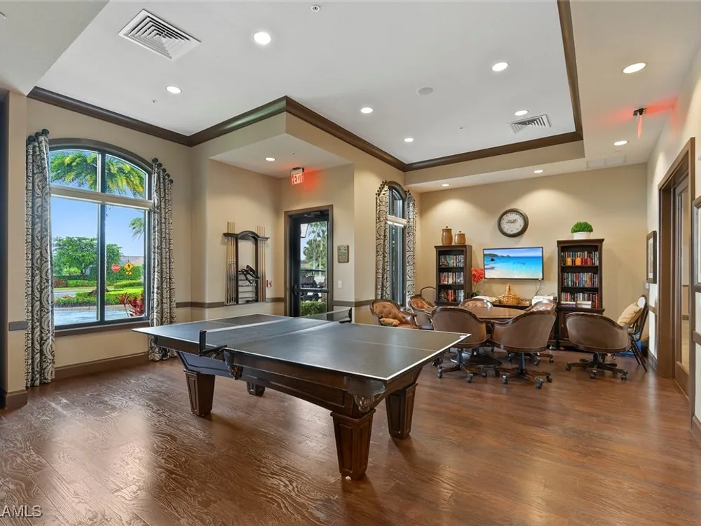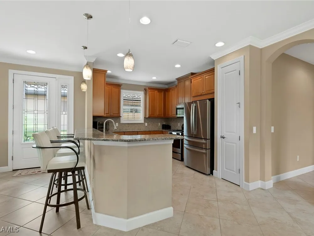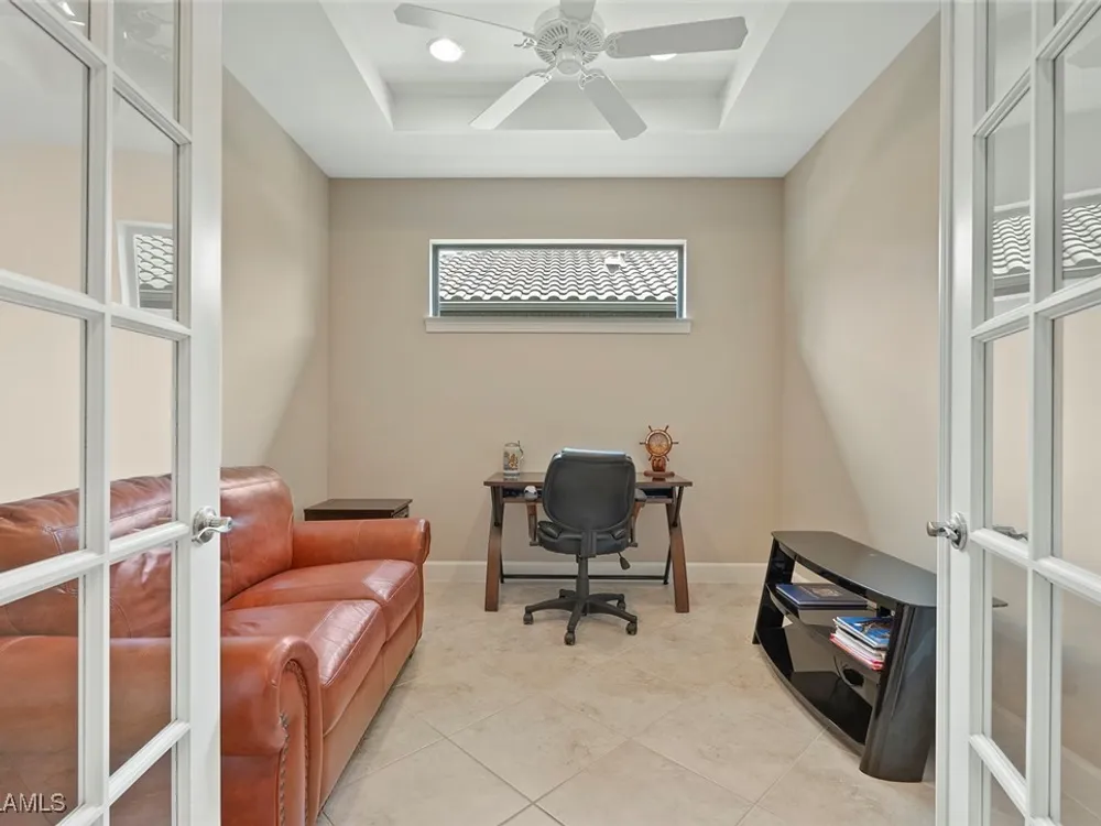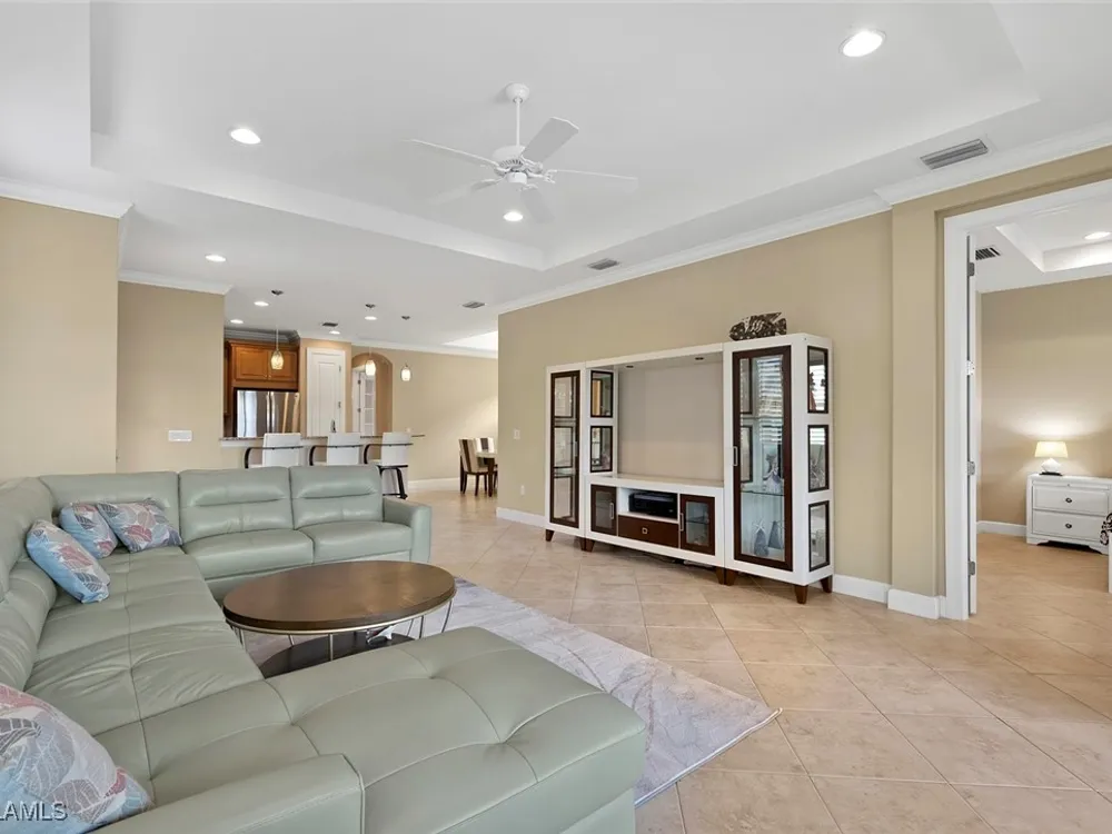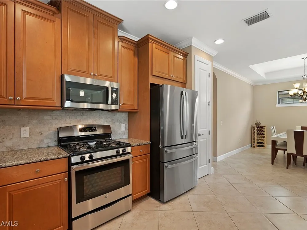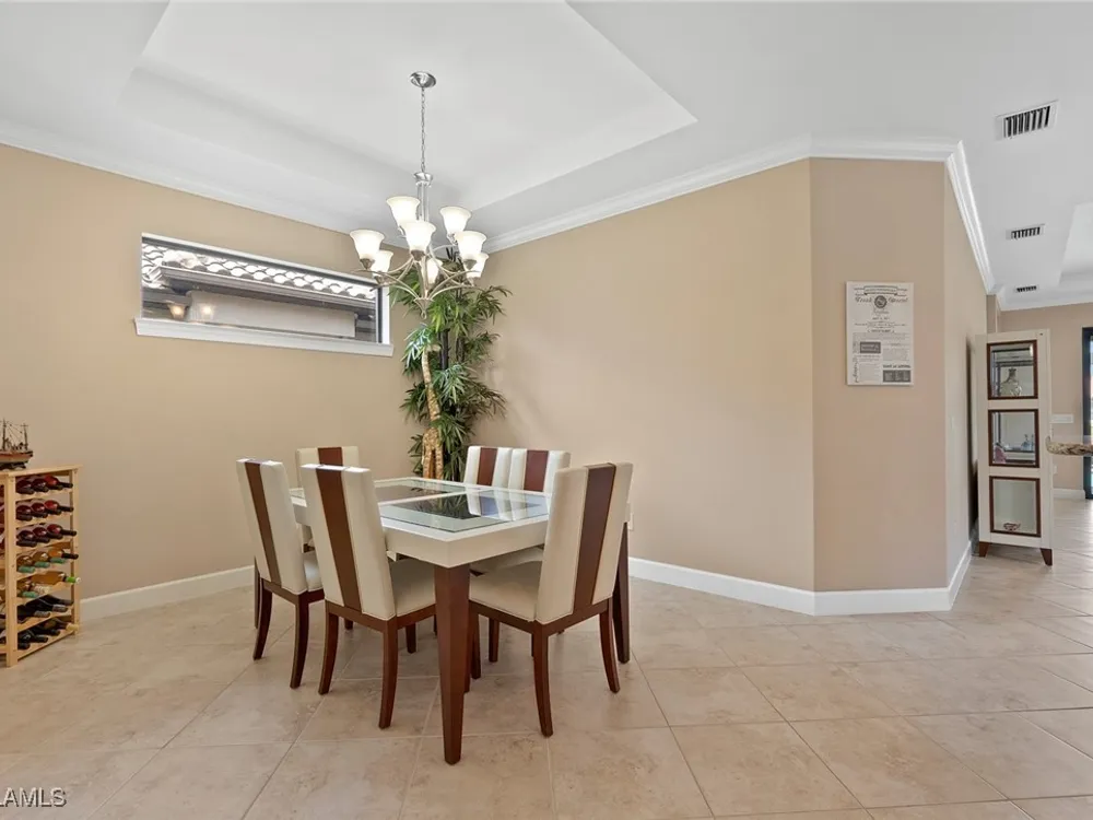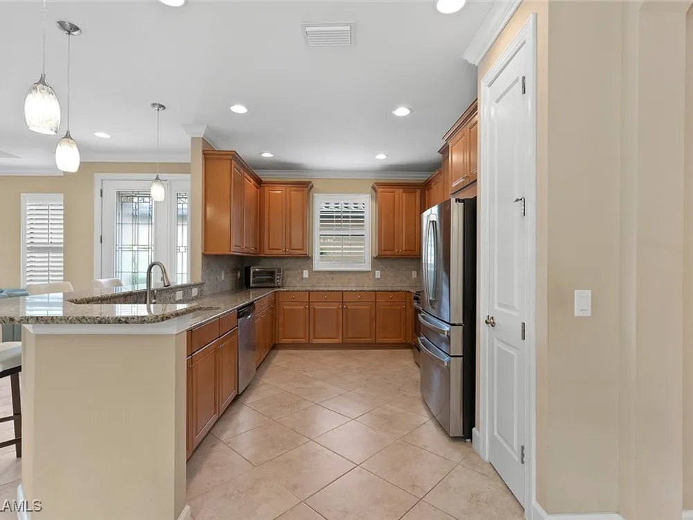 Welcome to your serene Naples retreat! This beautifully turn-key furnished 3-bedroom + den, 2-bath single-family home offers captivating lake and pool views the moment you step inside, setting the tone for relaxed, resort-style living. Enjoy indoor-outdoor living year-round with a spacious, covered lanai featuring a natural gas grill, perfect for cookouts and entertaining. The private pool and tranquil water views create your personal oasis in one of Naples’ most sought-after gated communities. Inside, you’ll love the elegant finishes including 10-foot ceilings, tray ceilings with recessed lighting, and custom crown molding throughout. IMPACT GLASS & DOORS! The gourmet kitchen is a chef’s dream with granite countertops, pantry, newer stainless-steel appliances, and a gas range. Host dinner parties in the adjacent formal dining room! The owner’s suite features tranquil lake views, a walk-in shower with a glass enclosure, double sinks on a granite vanity, and a huge walk-in closet! The split-bedroom layout provides privacy and includes two guest bedrooms with a large bath with double sinks on a granite vanity. The flexible den/home office with French doors provides quiet workspace or additional room for guests. The laundry room features granite countertops, and newer washer and dryer (2-year-old.) A/C and water heater are also 2 years old. Gas-powered pool heater, range, and outdoor grill. The spacious 2-car garage offers plenty of storage. The Esplanade at Hacienda Lakes offers resort-style amenities with a clubhouse hosting planned social events, a state-of-the-art fitness center, a heated resort-style pool and spa with cabanas, a fire pit, tennis and lighted pickleball courts, a playground and a dog park. Ideally located just minutes to Naples iconic 5th Avenue & Third Street with world-class restaurants, shopping and beaches. Or a short drive to the beautiful beaches of Marco Island and the fantastic island restaurants of Marco and Isles of Capri! The Esplanade is NOT in a flood zone!