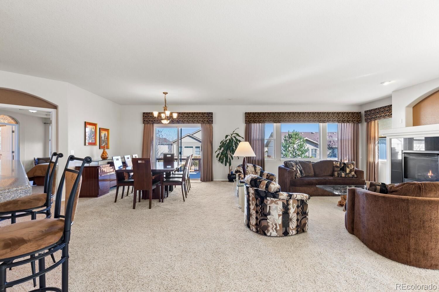 Welcome to your dream home at 8322 South Quatar Circle, nestled in the highly sought after Heritage Eagle Bend, a 45+ community. This captivating ranch-style residence boasts 2 bedrooms, 2 bathrooms, and an inviting office adorned with French doors and custom plantation shutters, offering a sanctuary of light and tranquility. Once inside, you are greeted by an expansive open concept living space. The living room, highlighted by a warm fireplace, seamlessly flows into the dining area and a large kitchen equipped with a charming breakfast nook. Adjacent to this is a cozy family room, featuring a second fireplace and built-in shelves, perfect for displaying your treasured collections. The heart of the home, the kitchen, is complemented by a generous island and ample cabinet space. Toward the back of the home, discover the large primary bedroom, a serene retreat with tray ceilings and a spacious walk-in closet. The en-suite bathroom is a luxurious 5-piece haven, graced by a stunning piece of stained glass above the doorway. Continuing down the hallway, you will find a second full bathroom and an additional bedroom, which also has a walk-in closet, offering comfort and convenience. A full-sized unfinished basement awaits your personal touch, providing endless possibilities for customization. Step outside to enjoy a beautifully landscaped backyard and a covered deck, complete with a grill and gas hookup—ideal for entertaining or relaxing in privacy. Living in Heritage Eagle Bend means embracing a lifestyle filled with unlimited activities. Enjoy access to a fabulous clubhouse, café, a challenging 18-hole golf course, indoor and outdoor pools, tennis courts, and vibrant social events—offering endless opportunities to connect with others. The home has a brand-new roof with class V impact resistant shingles. The home is also energy efficient with solar panels installed too! Discover your forever home, where elegance meets comfort, and a vibrant community awaits!