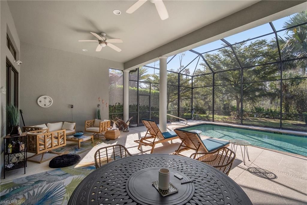 MOVE IN READY + READY TO SELL!!! This beloved San Remo III POOL HOME boasts a SOUTHERN EXPOSURE & a panoramic view of Six Mile Cypress Preserve! Coming Turnkey Furnished! This home shows like a model! Beautifully upgraded kitchen with white kitchen high-level cabinetry, a breakfast bar with raised panels, bump-out cabinets & staggered cabinets above microwave & refrigerator, and glass-paned cabinets to display special items! With granite countertops, GE Profile appliances, designer stainless steel sink and under cabinet lighting, this kitchen is stunning! Among the features of the kitchen are reverse osmosis water filtration at the sink, as well as at the lines for the refrigerator's ice and water dispensers! Water softeners are even installed throughout the house! This home features diagonally laid tiled floor throughout the main areas, wider-plank wood flooring in the third bedroom/den, and PLANTATION SHUTTERS AND CROWN MOLDING throughout! Additional upgrades include new pool heater (app driven), ring security system, and partially newly screened lanai! This is the BEST SINGLE-FAMILY VALUE IN ESPERANZA!! Enjoy everything Paseo has to offer, Tiki Bar, movie theater, Gym, resort style pool and more!