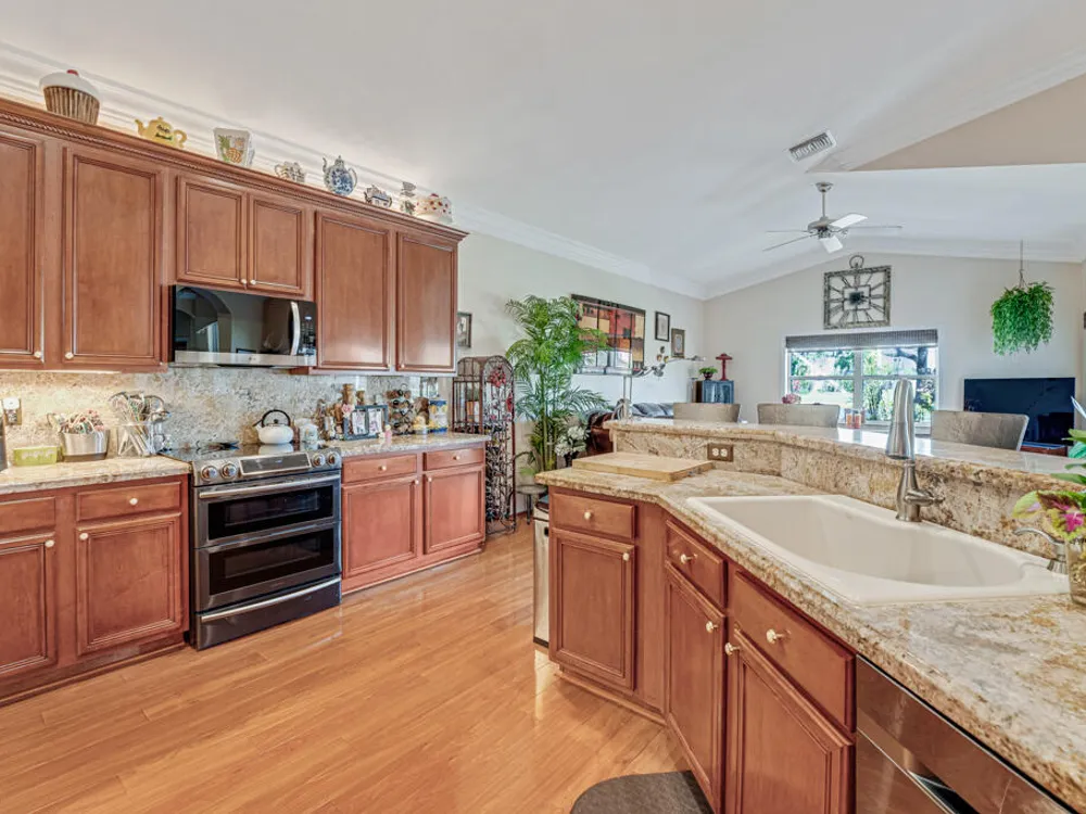 LOOKING FOR AN AMAZING LONG LAKE PANORAMIC LAKEVIEW? THIS IS IT! 4BR OR 3 PLUS DEN WITH 2 AND 1 HALF BATHS MAKES THIS ONE OF VENETIAN ISLES LARGEST FLOOR PLANS WITH A SIDE TO SIDE LAYOUT! THIS HOME IS EXTREMELY WELL KEPT AND EVERY ROOM IS A GENEROUS SIZE. THE HUGE EXPANDED TILED SCREENED PATIO IS THE PERFECT EXPOSURE FOR ALL YEAR ROUND ENJOYMENT. The gorgeous clubhouse offers a restaurant, bar, billiard room, theater, card room, library and gym. Outside activities include pickleball and tennis courts, and so much more! You can't appreciate this beautiful renovation without seeing it in person! (2 LIGHTNG FIXTURES ARE EXCLUDED)
