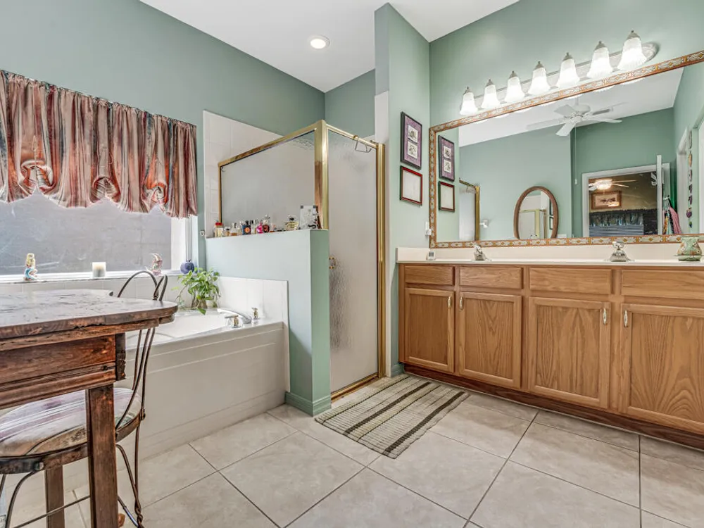 - Entry Level Living Area, Pantry, Split Bedrooms, High Ceilings, Walk-In Closet(s), Family Room, Breakfast Area, Separate/Formal Dining Room, Blinds, Drapes, Plantation Shutters, Dual Sinks, Primary Downstairs, Separate Shower