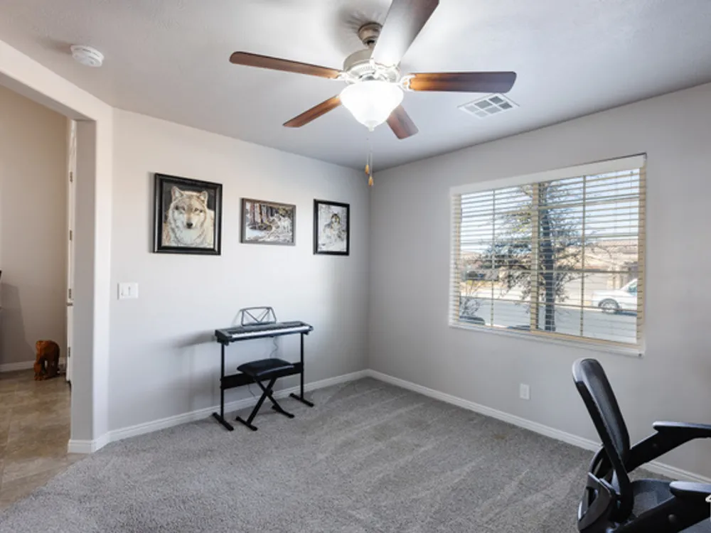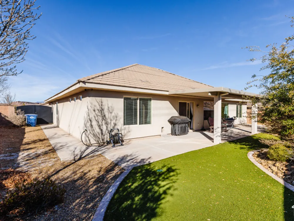 PRICE DROP!!! This amazing property in St. George is located just down the road from the new Sun River Commons shopping district. A beautiful and well maintained home with a spacious single level floorplan. A nice size office with a closet that could be easily used as a 4th bedroom. Enjoy the upgraded kitchen with high-end cabinets, quartz countertops, a spacious pantry, new appliances and lighting. Relax in the maintenence-free back yard with astro-turf, as well as a full block wall giving you privacy while you sit on the large covered patio. The spacious primary bathroom boasts a walk-in shower as well as a large walk-in closet. Don't miss out on the opportunity to make this turn-key home yours!