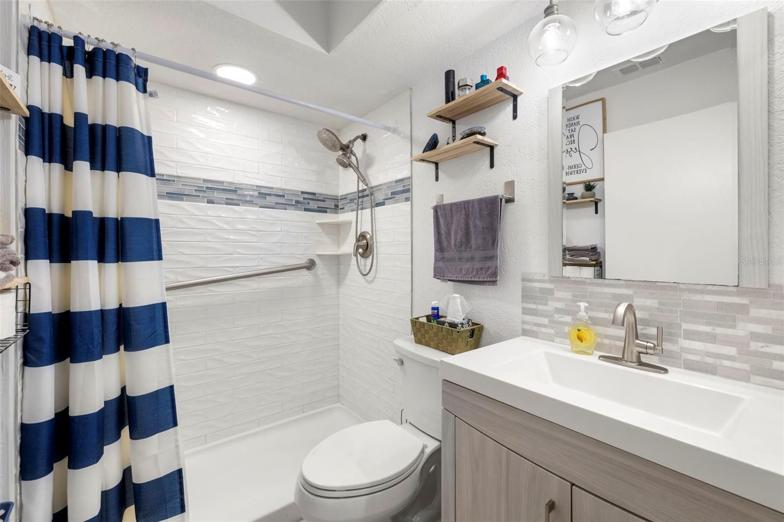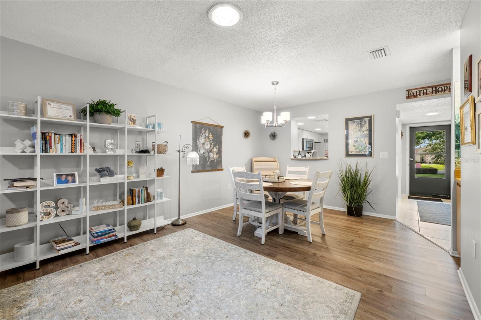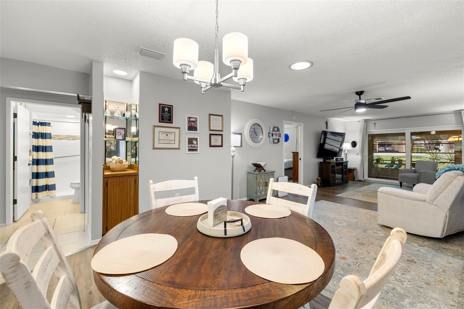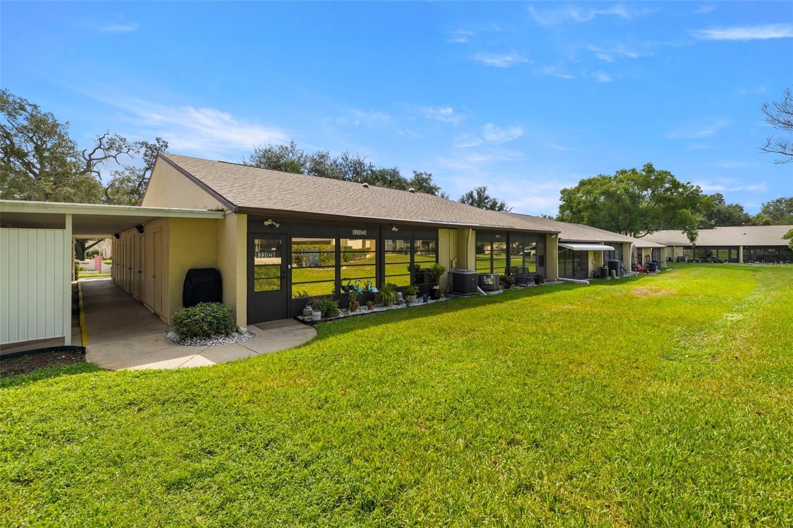 PRICED TO SELL AND FULLY UPDATED!!! Welcome Home to this elegantly updated two-bedroom, two-bathroom villa in Dollar Lake Village, located in the highly sought-after community of Timber Oaks, a 55+ Community. This beautiful home offers 1,210 square feet of thoughtfully designed living space, combining modern upgrades with timeless comfort. Step inside to discover a bright and inviting kitchen featuring granite countertops, shaker style cabinetry, tile backsplash, and all new appliances with plenty of storage and counter space! The main living area has new waterproof vinyl flooring and flows seamlessly into a spacious screened-in porch perfect for enjoying peaceful garden views year-round. The split floor plan provides privacy, with the primary suite offering a tranquil retreat that is spacious enough for a king-size bed, all your furniture. Complete with a walk-in closet, spacious vanity, lighting, and a beautifully updated en-suite bathroom that features a new vanity, new toilet and a gorgeous custom tile, walk-in shower. The guest bedroom and secondary bathroom have also been tastefully updated with new fixtures, custom closet shelving, a new vanity, new toilet and modern touches. Additional highlights include an indoor laundry room, ample storage, new ceiling fans throughout, updated outlets and switches, fresh interior paint, a NEW ROOF (2025), NEW HURRICANE RATED WINDOWS AND SLIDING GLASS DOORS (2023), a NEW ELECTRIC PANEL (2024), a NEW WATER SOFTENER (2024), a tankless water heater and the A/C are (2016). Enjoy outdoor living on the upgraded patio with new tile flooring, blinds, screens, window tint, and a ceiling fan with a view of the beautifully maintained garden area where you can watch the sunsets every evening. Convenience abounds with a covered parking spot, outdoor storage closet, and direct back entry for easy access during rainy days or for those with limited mobility. This home stayed HIGH and DRY during the storms and is in a NON-FLOOD ZONE. Timber Oaks offers an array of resort-style amenities, including two community pools, a beautiful clubhouse with countless activities, and a heated pool and hot tub overlooking the lake. Outdoor enthusiasts will love the tennis courts, pickleball, bocce ball, and shuffleboard. Association fees include water, sewer, trash removal, cable services, internet, roof maintenance, grounds upkeep, pest control, and other amenities, ensuring residents benefit from a maintenance-free lifestyle. The HOA fee is $500 with and additional $85 for a special assessment for the roof. There is a $55 fee to the Master Association - Timber Oaks monthly. Come experience all that this stunning villa has to offer!