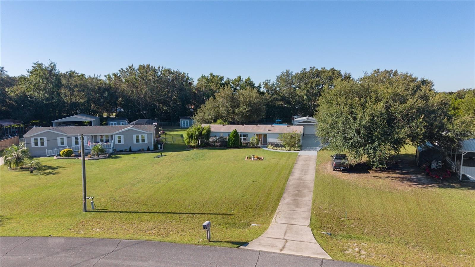 Look no further! THE GORGEOUS HOME AND SPACIOUS PROPERTY YOU'VE DREAMED OF IS HERE! Situated on a huge, OVERSIZED .7 acre lot with ample space for RV's, boats and water craft, with NO DEED RESTRICTIONS and NO HOAs, make this amazing property the ideal place to call home. Nestled in the quiet and highly desirable Oakland Hills community and convenient to everything, this home has everything you've looked for and more! Spacious OPEN FLOOR PLAN with vaulted ceilings, loads of natural light cascades into every room and NEW luxury laminate flooring throughout the home. Generously sized eat-in kitchen with custom cabinetry w/pull outs, beveled countertops and STAINLESS STEEL appliances, NEW farmhouse sink and NEW expandable faucet beneath a large window, interior laundry room with additional cabinetry and counter space leading to a covered and screened porch extending the length of the home and overlooking the ample backyard, NEW pool with stair entry and NEW pergola for entertaining. STUNNING Primary and Guest Bathroom REMODELS and NEW tile flooring. NEW glass Walk-In shower in primary, double vanities, shiplap, chair rail and NEW tiled tub/shower combo in guest bathroom, both bathrooms boast NEW vanities, sinks, hardware and lighting. MOVE-IN-READY with NEW WINDOWS and NEW DOORS. UPDATED and meticulously maintained, with three additional sheds including 10x12 Rustic cabin Storage Shed and the other two approximately 10x15. Detached 20x30 Garage & Workshop and 8' Covered porch with NEWLY tiled flooring overlooking the huge FULLY-FENCED yard. Lovely mature landscaping and curb appeal surrounding the property. NEW ROOF, NEW A/C, NEW PIPES, NEW HOT WATER HEATER, NEW Water Filtration System, NEW EXTERIOR SIDING, NEW POOL & Pergola, NEW MASTER SHOWER. THIS HOME HAS IT ALL!