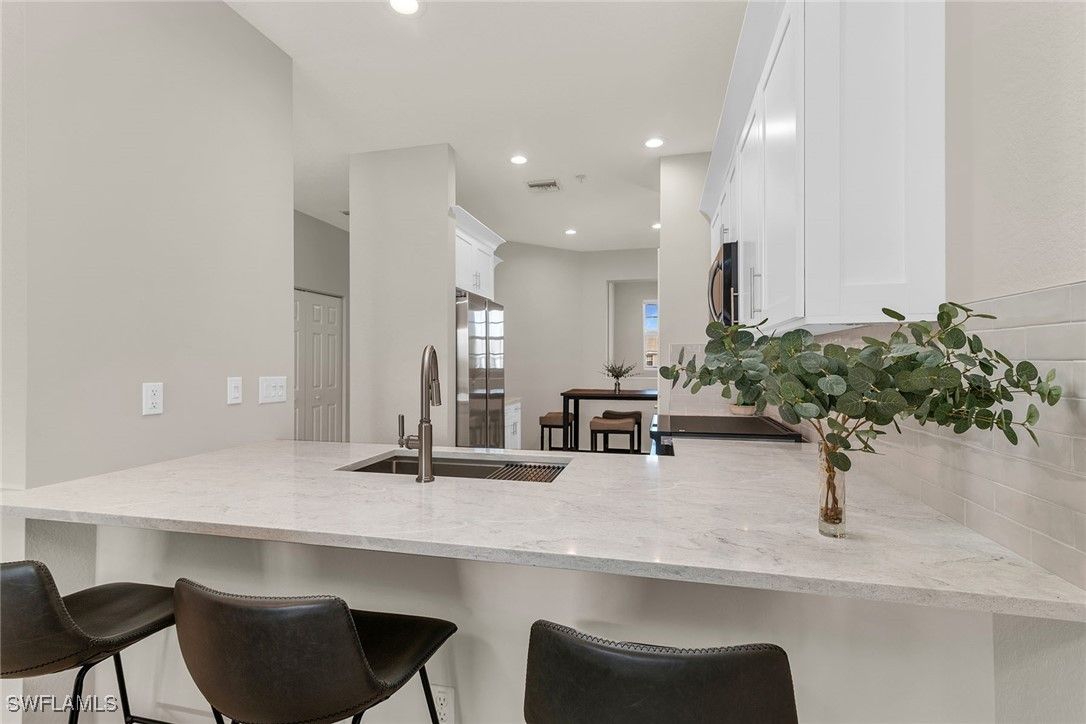 Welcome to 8335 Whisper Trace Way #205. Get into one of the most elegant communities in Naples for an affordable price with this stunning three-bedroom, two-bath second-floor condominium nestled in the highly sought-after Fiddler's Creek. This beautifully updated residence features a brand-new kitchen with modern cabinetry, sleek countertops and stainless steel appliances including an induction stove, perfect for culinary enthusiasts. Step into the open and airy living space, adorned with abundant natural light, and enjoy serene views of the lake and preserve from the private lanai — a peaceful retreat for your morning coffee or evening relaxation. The spacious primary suite includes a walk-in closet and en-suite bath for ultimate comfort, while the additional bedrooms provide flexibility for guests, a home office or a hobby room. This coach home includes a washer and dryer, covered parking and is located close to the village pool. Fiddler's Creek offers world-class amenities, including resort-style pools, a championship golf course, fitness facilities, dining options and a vibrant social calendar. Conveniently located near Marco Island and downtown Naples, this home provides easy access to pristine beaches, shopping, dining, boating and airports.