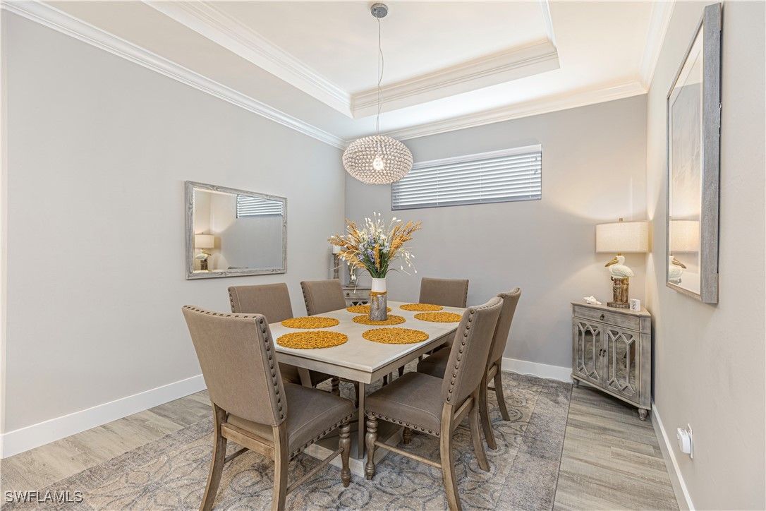If you've been waiting for the perfect moment to buy in Naples Florida, The Time Is Now! You will fall in love the moment you enter this highly upgraded, move in ready home in one of Naples most sought-after gated communities. The gourmet kitchen is a chef’s dream with gorgeous Pompeii Quartz countertops, a gas stove, built in microwave drawer and stainless steel appliances. Host family dinner parties in the adjacent spacious dining room. You will love the open floor plan with Cortex luxury vinyl flooring, crown molding and 10 foot ceilings. The flexible den/home office provides a quiet workspace or an additional room for guests. The owner’s suite features a new walk-in shower with a glass enclosure, double sinks and a huge walk-in closet. The split-bedroom layout provides privacy and includes two guest bedrooms with a large bath and double sinks. Step outside to your own private oasis perfect for soaking up the Florida sunshine or unwinding after a long day. Relax and entertain on the screened lanai or cool off in your private inground pool. The spacious 2-car garage offers plenty of storage. Esplanade at Hacienda Lakes offers resort-style amenities with a clubhouse hosting many social events, fitness center, a heated resort-style pool and spa with cabanas, a fire pit, tennis, lighted pickleball courts, a playground and a dog park. Ideally located just minutes to Naples famous 5th Avenue & Third Street South with world-class restaurants, shopping and beaches. You are just a short drive to the beautiful beaches of Marco Island and the many restaurants and activities on Marco and Isles of Capri. This is the opportunity you've been waiting for to live the Naples lifestyle you deserve!