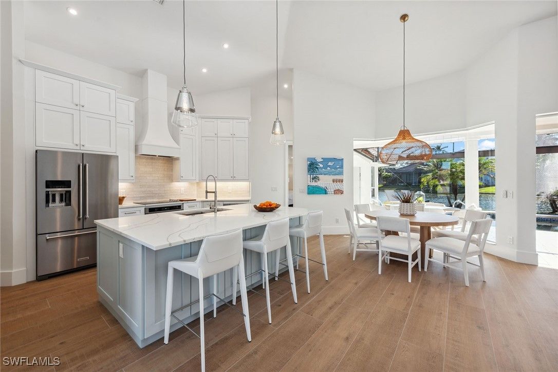 This designer-remodeled estate home is Naples perfection. At the end of a private cul-de-sac street, this beautiful residence is on .30 of an acre and features winding water views. Not one detail was overlooked in the thoughtful remastering of this home, as its soaring ceilings and open floor plan highlight countless upgrades, such as a designer furnishings package, luxury plank tile flooring throughout, LED recessed lighting, designer light fixtures, new interior doors, baseboards and hardware, and more. The new chef-inspired kitchen will delight entertainers with its oversized island, solid wood cabinetry, premium appliances, quartz countertops and a walk-in pantry, while the expansive great room is ideal to gather with friends and family with its bar feature and built-in media wall. Each of the three spacious bedrooms is beautifully appointed. The grand owner’s suite features a stunning spa-inspired bath and oversized walk-in closet with custom built-ins. The two guest bedrooms are privately situated across the home and feature a beautifully appointed guest bath that also acts as a pool bath. Out back, one can live the Naples lifestyle while enjoying the sparkling swimming pool, large covered lanai and sparkling water views. This home is sure to impress the most discerning. Residents of Lely Island Estates enjoy low carrying costs and benefit from having Marco Island and downtown Naples just a short drive away. Membership at the incredible Player's Club is optional and offers its members resort-style amenities. Golfers have the option to join The Classics Country Club or take advantage of Lely's two beautiful public courses.