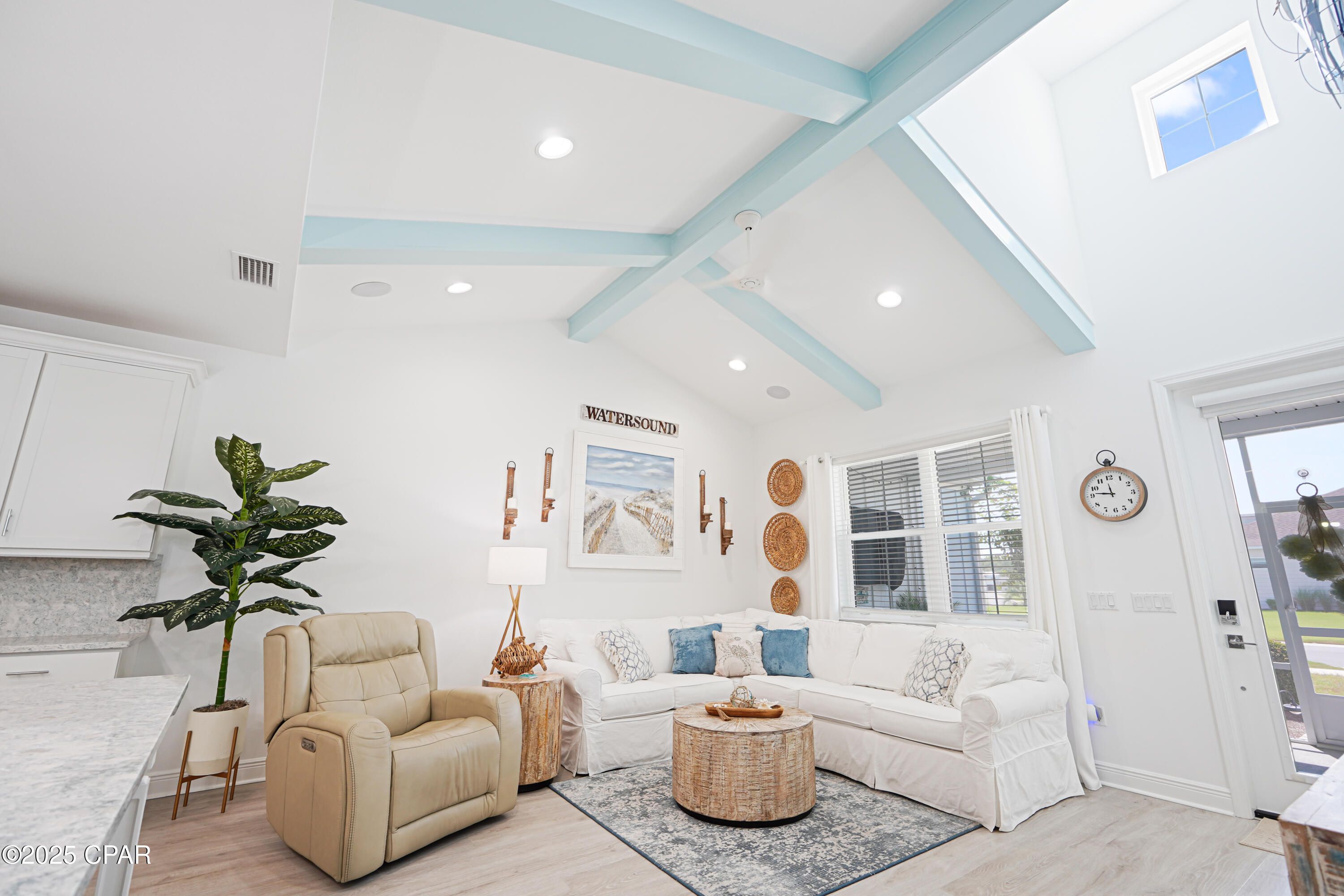 Latitude Margaritaville Watersound - Coastal Camellia Cottage. Welcome to this FULLY FURNISHED, turnkey Camellia cottage in the sought-after Phase 3 of Latitude Margaritaville Watersound. Perfectly positioned on a premium outside lot with no home directly facing, this property offers rare privacy along with a spacious front yard. Step inside to a bright open-concept floorplan filled with natural light. The chef's kitchen features a large extended island, upgraded appliances, and seamless flow into the dining area and family room. A vaulted beamed ceiling crowns the family room, creating a warm coastal charm ideal for both everyday living and entertaining. The spacious master en-suite boasts a tiled bath with a frameless shower enclosure, while the secondary bedroom and full bath are equally well-appointed with tile finishes. Every detail is designed for comfort and easy living, from the airy layout to the thoughtful upgrades. Family room has a sleeper sofa for additional guest. Located just minutes from the community's world-class amenities, you'll enjoy the Latitude Margaritaville lifestyle with pools, fitness, restaurants, live music, and endless activities at your fingertips. Life in Latitude Margaritaville Watersound is more than just a home—it's a lifestyle inspired by fun, relaxation, and community. Residents enjoy world-class amenities designed for endless entertainment, wellness, and social connection, all just a golf cart ride away. Resort-Style Amenities Include: Spectacular Resort Pool Complex with lagoon-style pool, and plenty of space for lounging under the Florida sun. Latitude Town Square - the heart of the community with live music, dancing, and year-round entertainment. Fins Up! Fitness Center - fully equipped with state-of-the-art cardio and strength training, plus a variety of fitness classes. Tennis & Pickleball Courts for friendly matches or competitive play. On-Site Restaurant & Bars offering delicious dining and island-inspired cocktails. Walking & Biking Trails winding through scenic preserves and natural beauty. Dog Park & Community Green Spaces perfect for four-legged friends and outdoor gatherings. Planned Social Clubs & Activities that make it easy to meet neighbors and stay active. From poolside afternoons and pickleball games to live music under the stars, Latitude Margaritaville Watersound is designed to deliver the ultimate in 55+ coastal living where every day feels like vacation.