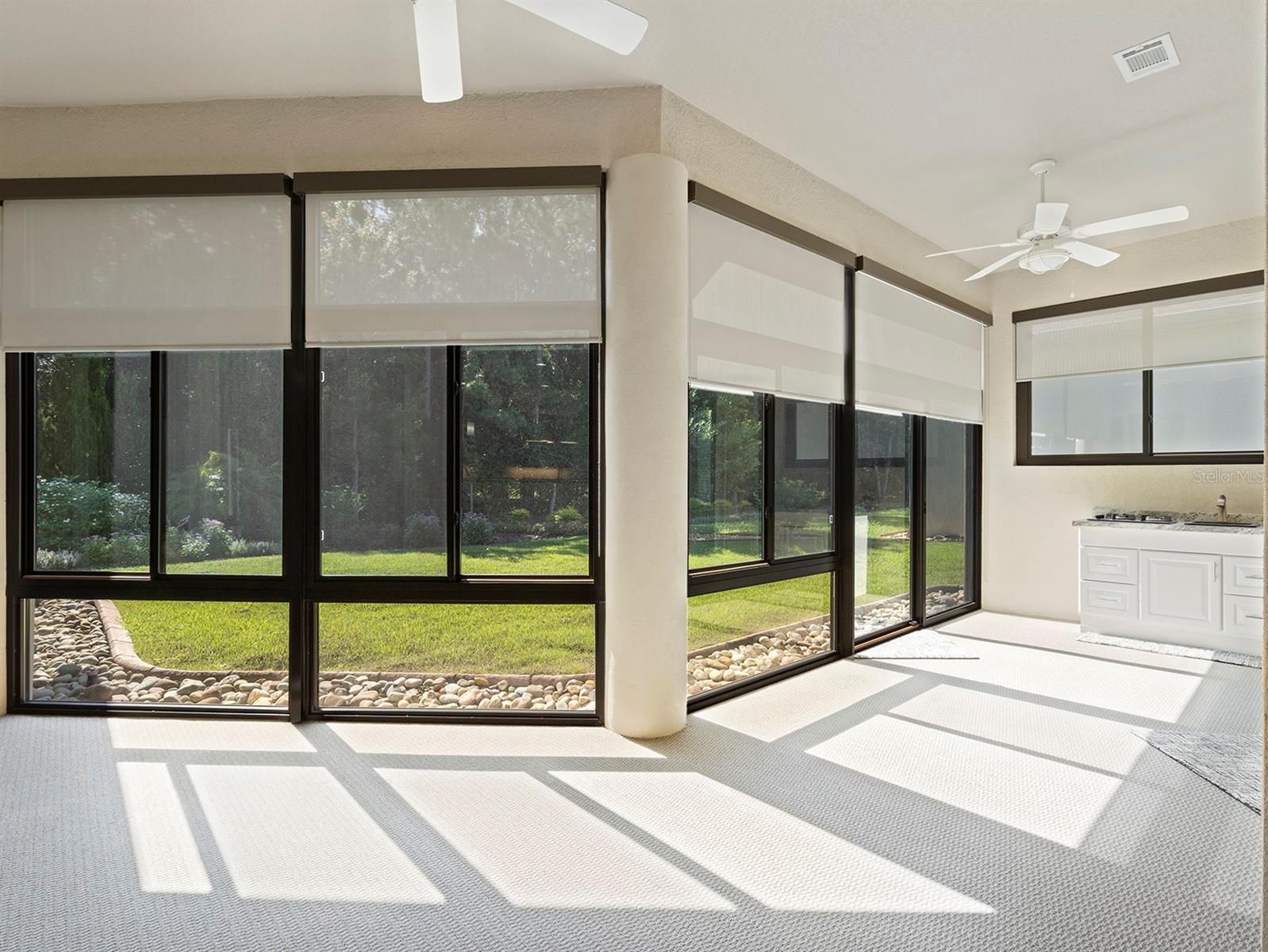 This luxury home was built as one of just a few BARBADOS models and was then modified, expanded and upgraded by these very particular owners. The gracious floorplan includes a beautiful dining room with an open butler's pantry/bar flowing from the living and dining rooms to the kitchen. The kitchen is large with plenty of cabinetry and a breakfast nook open to the Family Room. The PRIMARY SUITE is on the right side of the home and includes two walk-in closets, a COMPLETELY RE-DESIGNED BATH WITH NEW CABINETS, including a BUILT-IN HAMPER, LIGHTING AND A BIG BEAUTIFUL WALK-IN SHOWER...PLUS an incredible 10 x 15 WALK-IN CLOSET (originally built as a Den with access to the foyer). ALL CLOSETS IN THIS HOME WERE PROFESSIONALLY DESIGNED AND FINISHED. Two wall safes have been installed and are included. The 3 secondary bedrooms and two baths are on the left side of the home. Both of these baths were UPGRADED with NEW WALK-IN SHOWERS AND NEW LIGHTING. The KITCHEN was gutted and RE-BUILT with AN ISLAND, UPGRADED GRANITE and CLEAN DESIGN CABINETRY featuring PULL OUT SHELVES IN THE CABINETS, DRAWER STORAGE, SLIDE OUT PANTRY SHELVING AND MORE! The range is now electric, but the gas pipe remains behind it if gas is preferred. WOOD FLOORING was installed in the living room, dining room and family room. HIGH END LIGHTING is apparent everywhere. PELLA WINDOWS AND SLIDERS WITH BUILT-IN BLINDS AND A FABULOUS PELLA FRONT DOOR WITH A MATCHING TRANSOM were also installed. All feature special locking mechanisms for security. The living space was expanded by ENCLOSING the LANAI WITH PELLA WINDOWS, A/C, FANS AND A SUMMER KITCHEN. Flowers and shrubs were added to the garden, providing a beautiful view from the lanai and the perimeter of the home is finished with a paved border and large river rock. Even the GARAGE is upgraded with a CARPETED FLOOR, 2 FANS and a MINI-SPLIT A/C to keep it comfortable. Everything is impeccably cared for, and the A/C and tankless water heater get regular maintenance. Lakes of Mount Dora is one of Central Florida's most premier 55+ communities. From the 18,000 square foot club house with its billiard room, library, gigantic kitchen, theatre, and meeting rooms to the zero-entry pool and spa area to the outside pickleball and tennis courts, everything is immaculate and well kept. Downtown Mount Dora and its famous lake, shops and restaurants is less than a 15 minute ride.