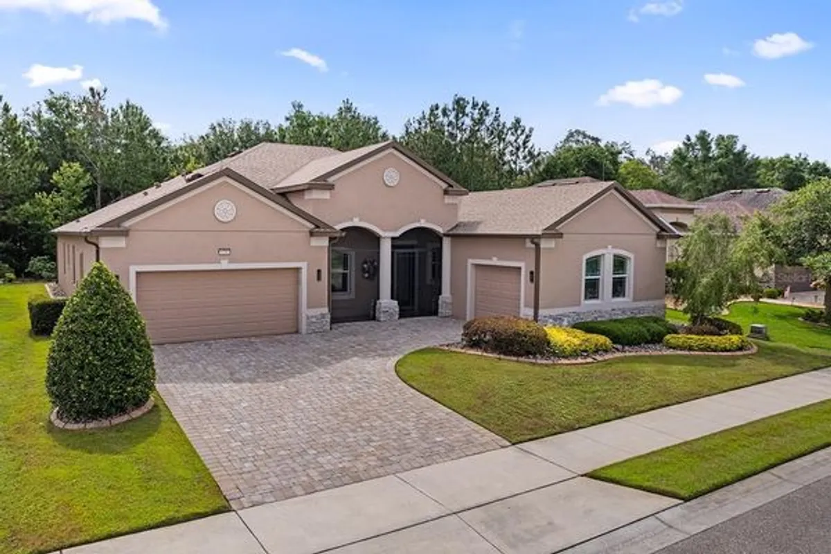This luxury home was built as a BARBADOS model and was then modified and upgraded to basically a CUSTOM HOME. The gracious floorplan is perfect for entertaining with a dramatic dining room and open butler's pantry/bar serving the living room, dining room and kitchen. The kitchen was gutted and re-built with features plenty of beautiful custom cabinetry featuring pull-out shelves, lots of drawers, gorgeous granite, an island and a cozy breakfast nook. The PRIMARY SUITE is on the right side of the home and includes three walk-in closets, a COMPLETELY RE-DESIGNED BATH WITH EXTRA CABINETS, including a built-in hamper, upgraded lighting and a spacious walk-in shower...PLUS an incredible 10 x 15 WALK-IN CLOSET. ALL CLOSETS IN THIS HOME WERE PROFESSIONALLY DESIGNED AND FINISHED. Two wall safes have been installed and are included. The 3 secondary bedrooms and two baths are on the left side of the home. Both of these baths were UPGRADED with NEW WALK-IN SHOWERS AND NEW LIGHTING. (The range is now electric, but the gas pipe remains behind it if gas is preferred.) WOOD FLOORING was installed in the living room, dining room and family room. HIGH END LIGHTING is apparent everywhere. PELLA WINDOWS AND SLIDERS WITH BUILT-IN BLINDS AND A FABULOUS PELLA FRONT DOOR WITH A MATCHING TRANSOM were also installed. The living space was expanded by ENCLOSING the LANAI WITH PELLA WINDOWS, A/C, FANS AND A SUMMER KITCHEN. Flowers and shrubs were added to the garden, providing a beautiful view from the lanai and the perimeter of the home is finished with a paved border and large river rock. Even the GARAGE is upgraded with a CARPETED FLOOR, 2 FANS and a MINI-SPLIT A/C to keep it comfortable. Everything is impeccably maintained, including the A/C and tankless water heater. Lakes of Mount Dora is one of Central Florida's premier 55+ communities. From the 18,000 square foot club house with its billiard room, library, gigantic kitchen, theatre, and meeting rooms to the zero-entry pool and spa area to the outside pickleball and tennis courts, everything is immaculate and well kept. Downtown Mount Dora and its famous lake, shops and restaurants is less than a 15 minute ride