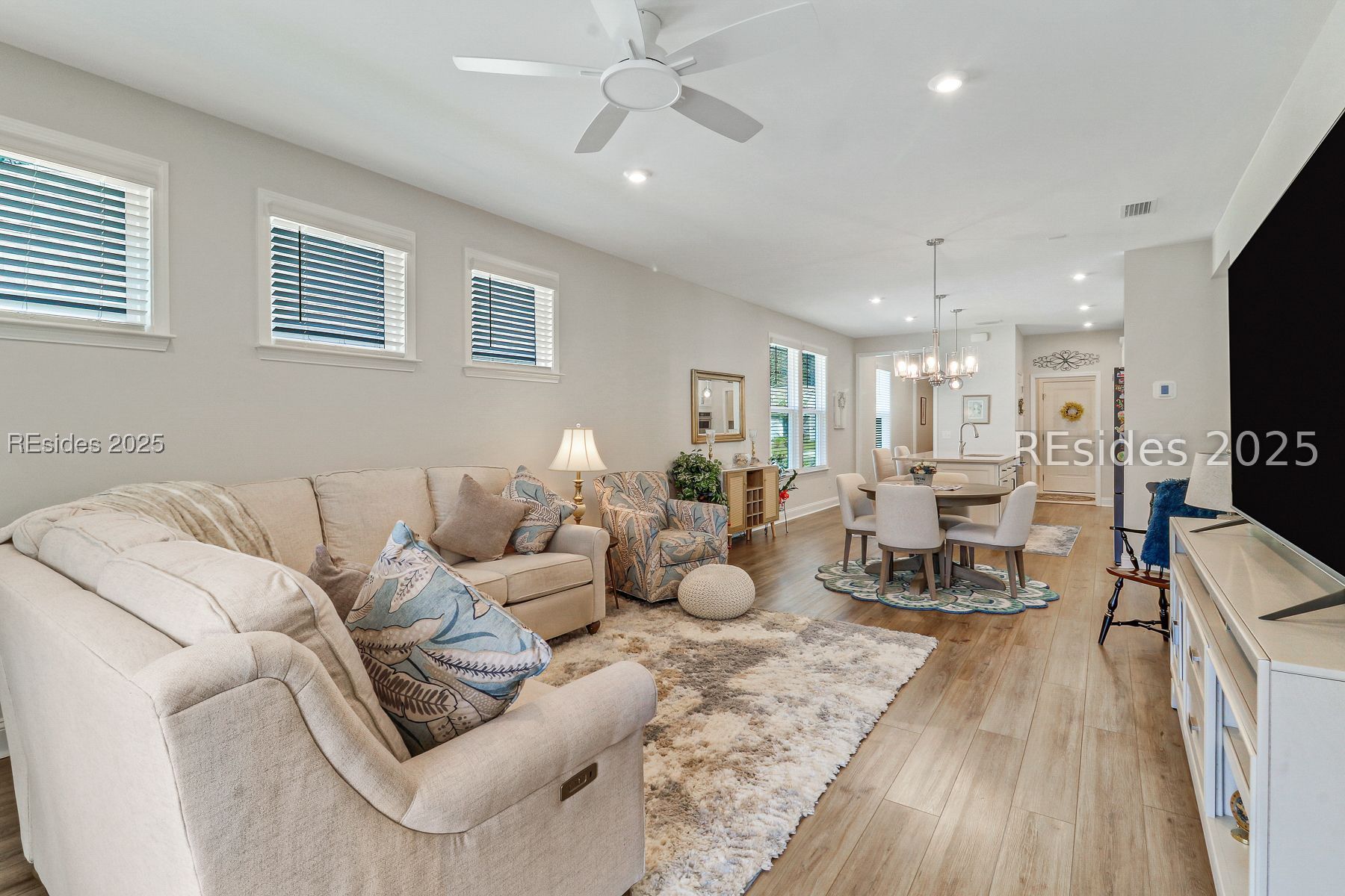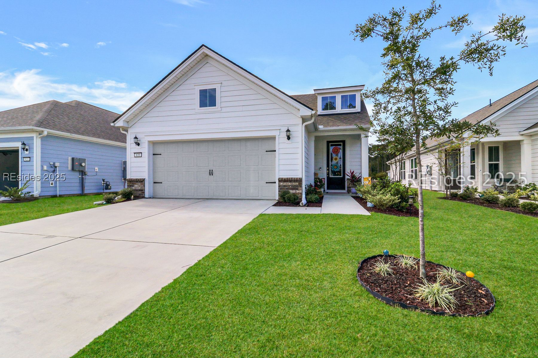 Welcome to this stunning 3-bedroom, 2-bath Hallmark model perfectly situated on a beautifully landscaped lot in the heart of Sun City Hilton Head. Barely lived in and meticulously maintained, this home feels brand new and offers peace of mind with the builder's warranty still in place. Step inside to a bright, open-concept living space featuring a gourmet kitchen with upgraded cabinetry, quartz countertops, stainless steel appliances, and an expansive island ideal for entertaining. The spacious great room flows seamlessly to the screened lanai and private backyard, creating the perfect setting for relaxing or hosting guests. Additional highlights include a serene owners suite with a spa-inspired bath, two guest bedrooms offering flexibility for visitors or a home office, and a large laundry room with extra storage. The homes thoughtful design and pristine condition make it truly move-in ready. Enjoy all that Sun City has to offer world-class amenities, resort-style pools, golf, and endless clubs and activities all just minutes from shopping, dining, and the beaches of Bluffton and Hilton Head Island.