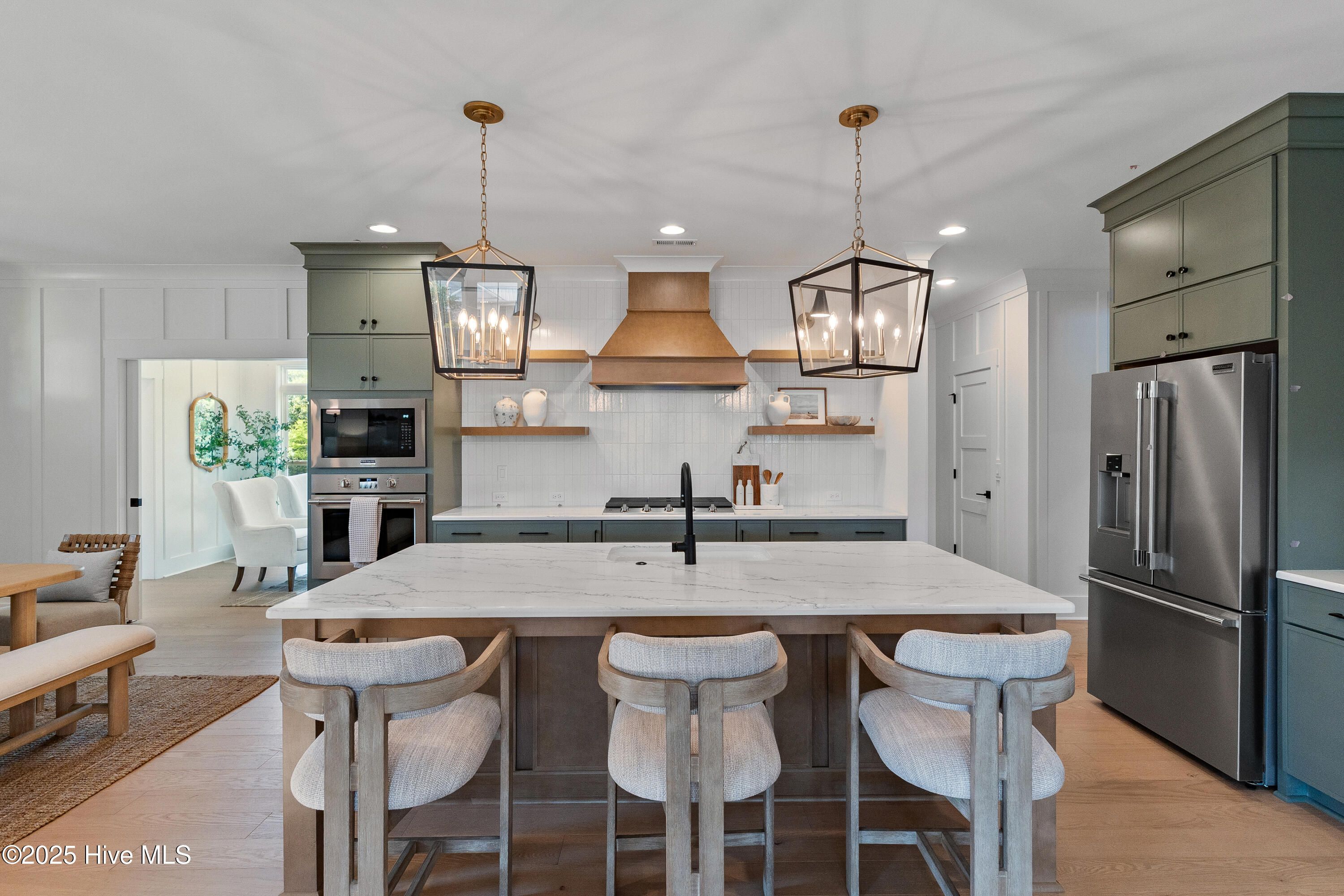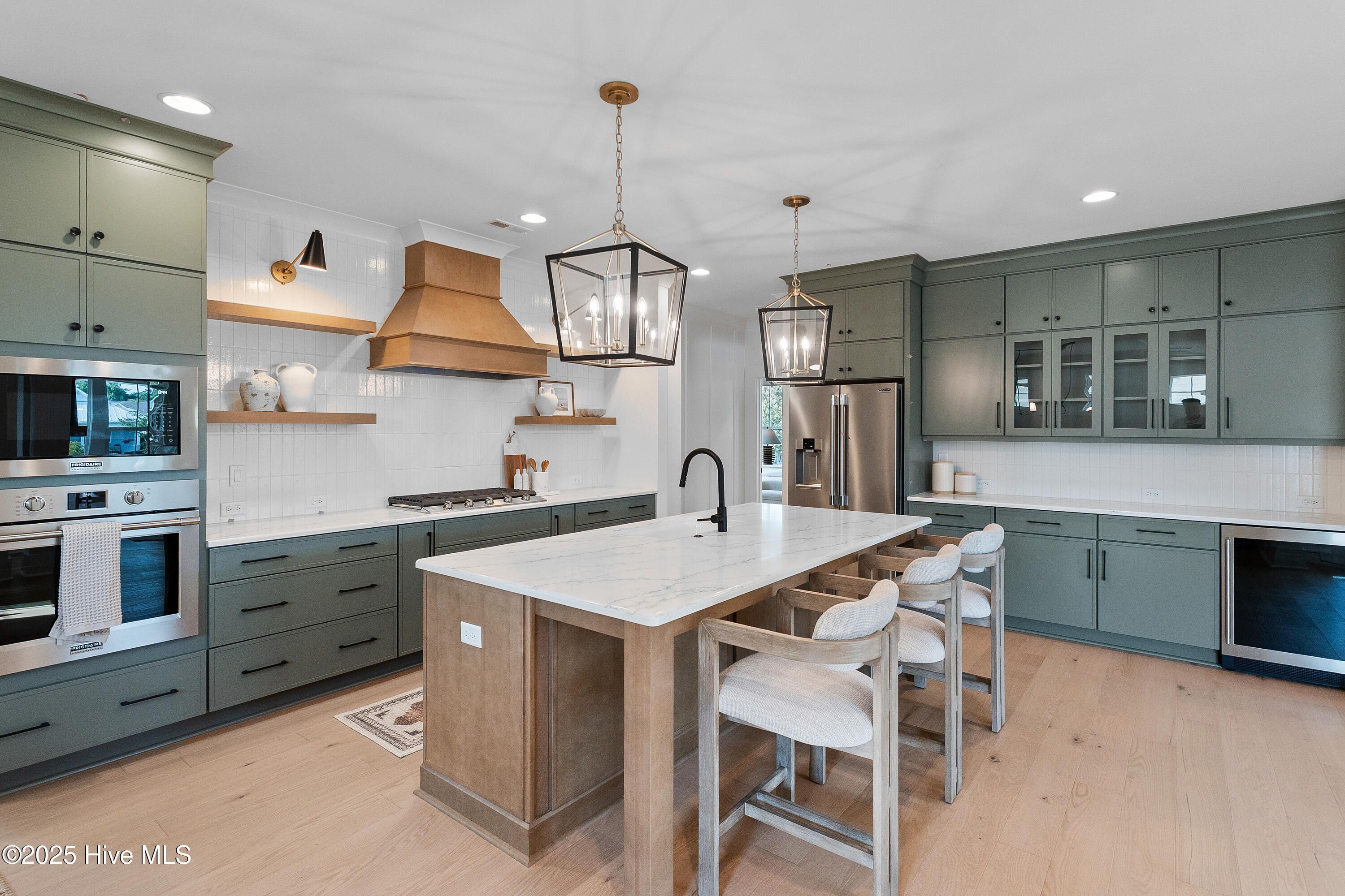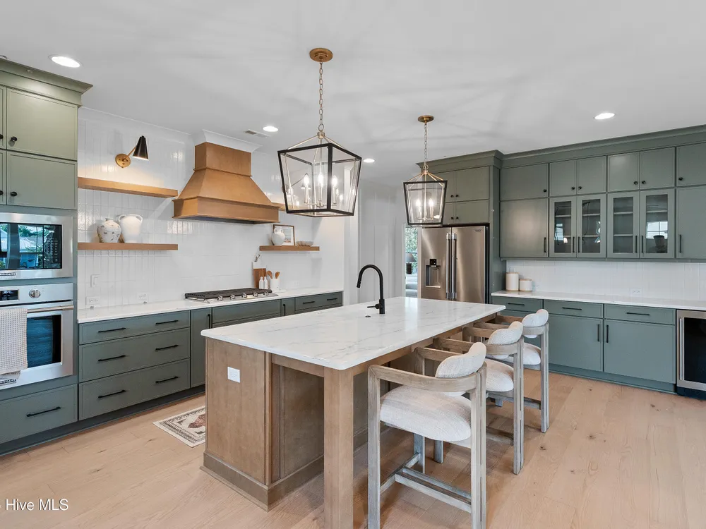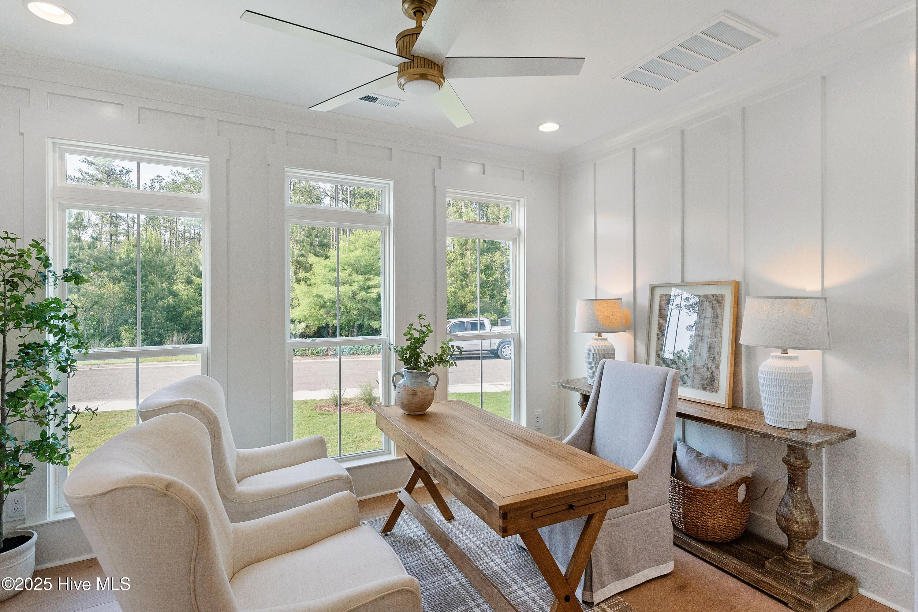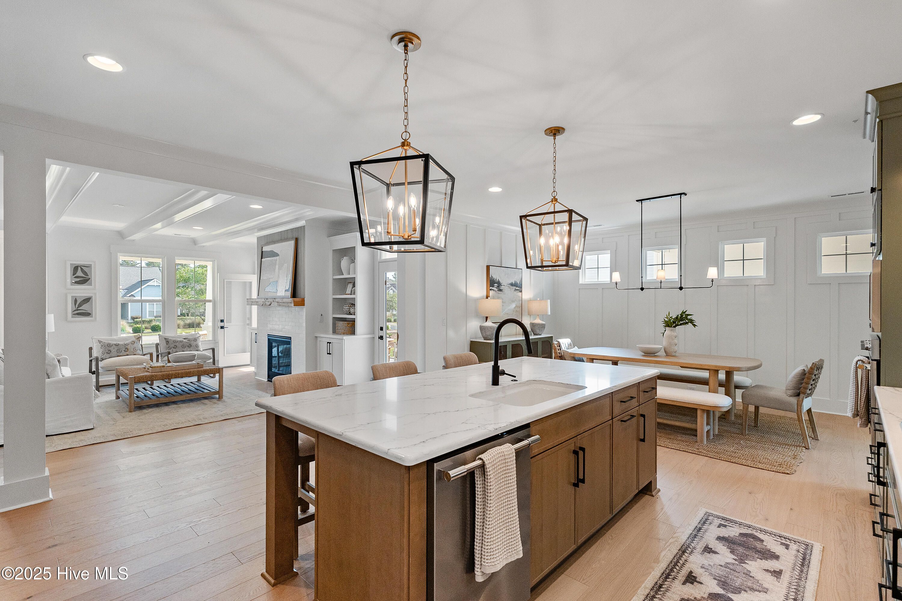 Legacy Homes by Bill Clark presents a custom spin on the Hayden plan in the charming Meadow Park at Brunswick Forest. The curb appeal is top notch with the expansive front porch and spacious side screen porch. The Hayden plan is thoughtfully designed with 3 bedrooms, 3 bathrooms, sunroom, flex room, and gathering space. The great room features exposed beams with built-ins flanking the fireplace and doors leading out to the screened in porch. The kitchen is perfect for entertaining with gorgeous quartz countertops, 36'' gas cooktop, built-in wall oven and microwave, french door refrigerator, Electrolux wine cooler, and walk in pantry. The primary bedroom features a coffered ceiling and dual walk-in closets. The oversized laundry room includes cabinets for additional storage, a large undermount sink, beautiful soapstone countertops, and an upgraded mosaic backsplash. The Hayden offers many upgraded finishes throughout including a unique herringbone design in the foyer hardwoods, custom white wood shelving in all closets, floor to ceiling wainscoting in various locations, glass pocket doors to the sunroom, wood stair treads leading to the bonus room, metal roof on the front porch, a tankless hot water heater, and many more!
