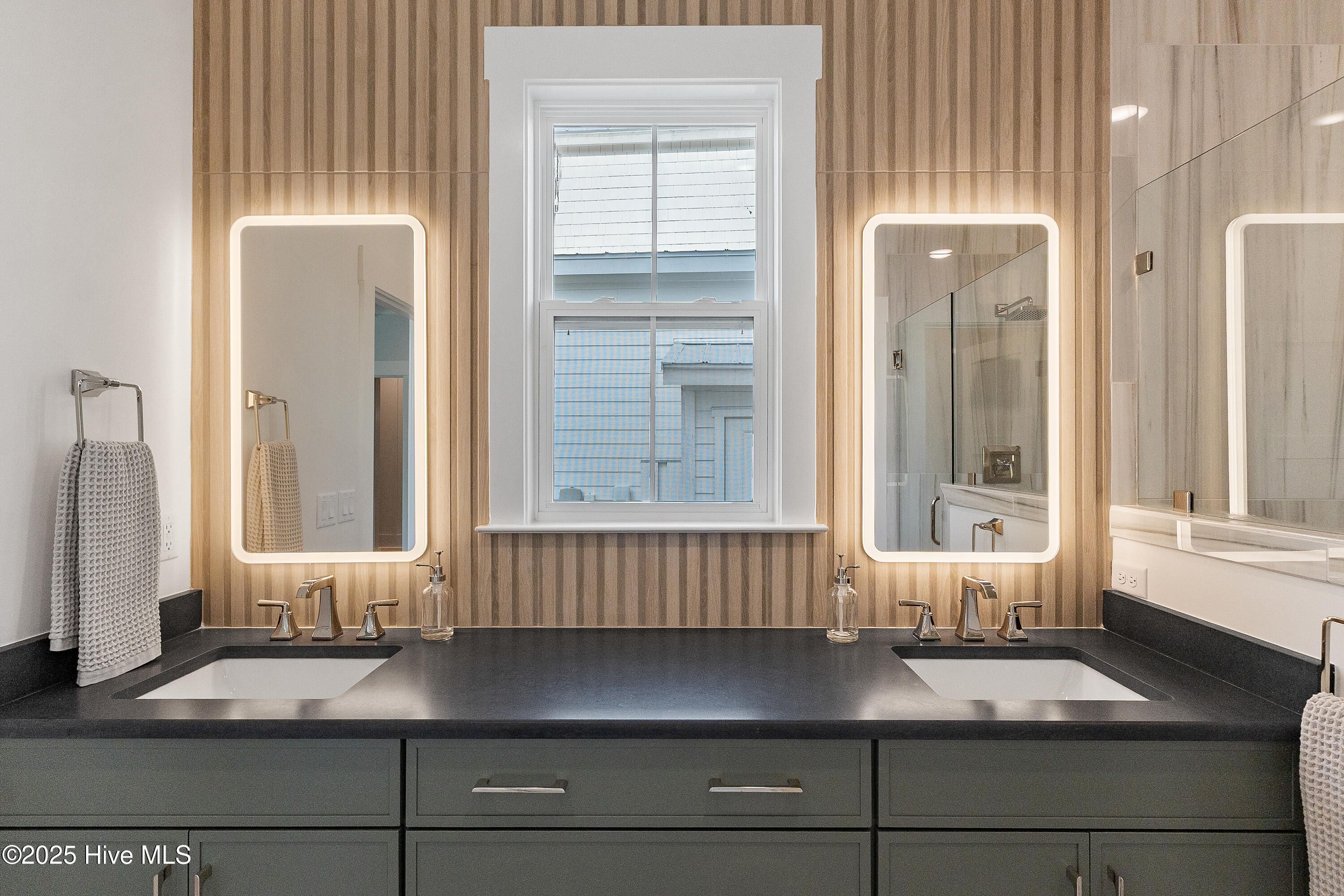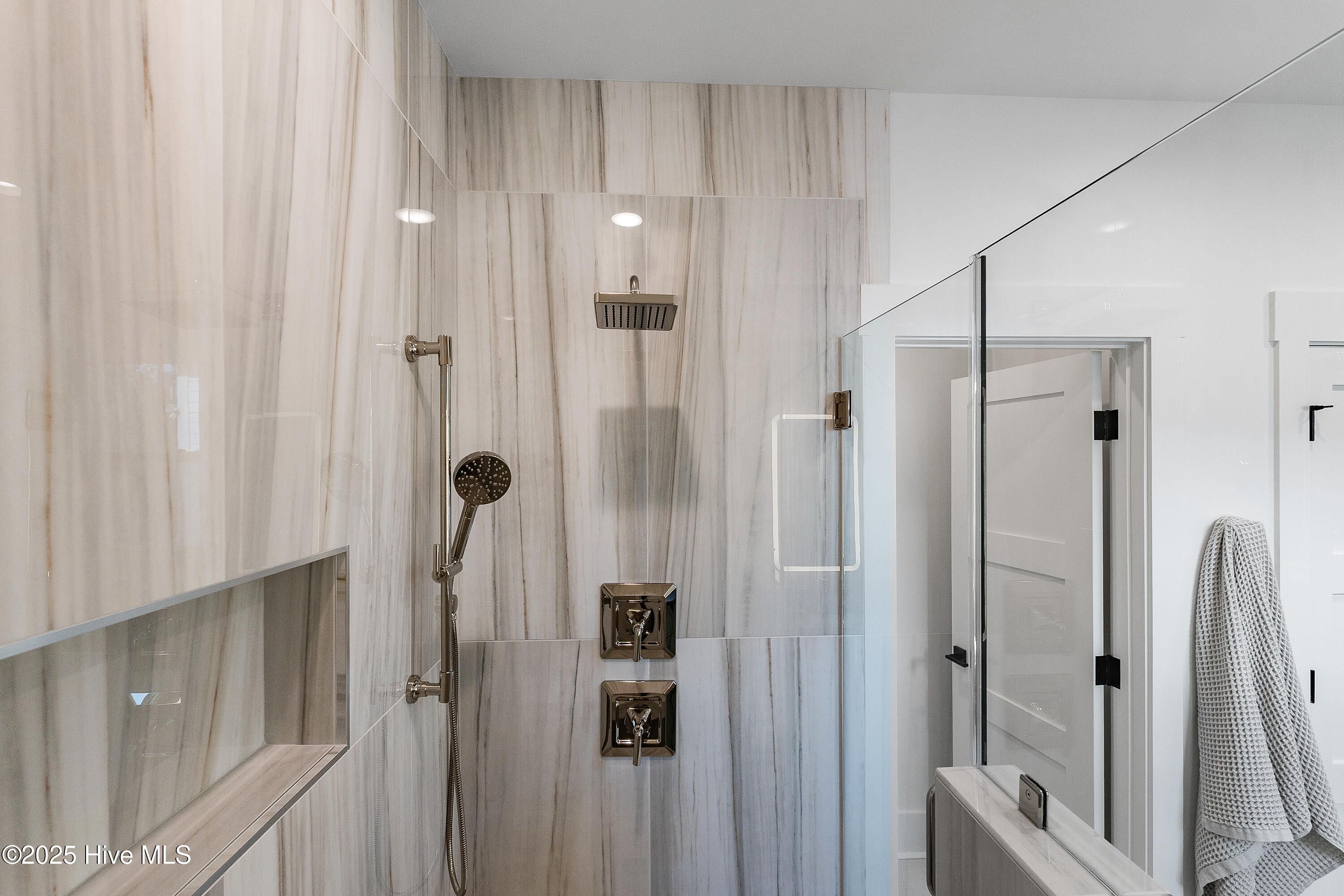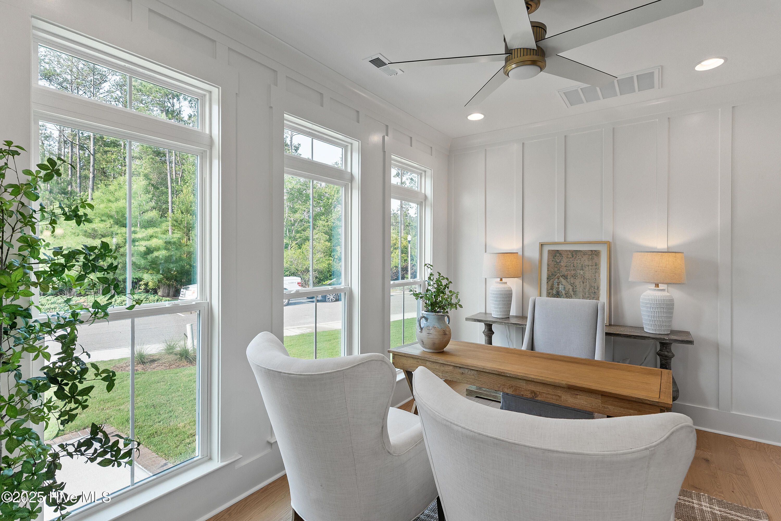 - Master Downstairs, Walk-In Closet(s), High Ceilings, Entrance Foyer, Mud Room, Bookcases, Kitchen Island, Ceiling Fan(s), Pantry, Walk-In Shower, Eat-in Kitchen