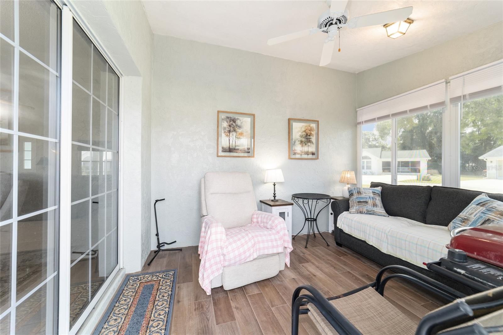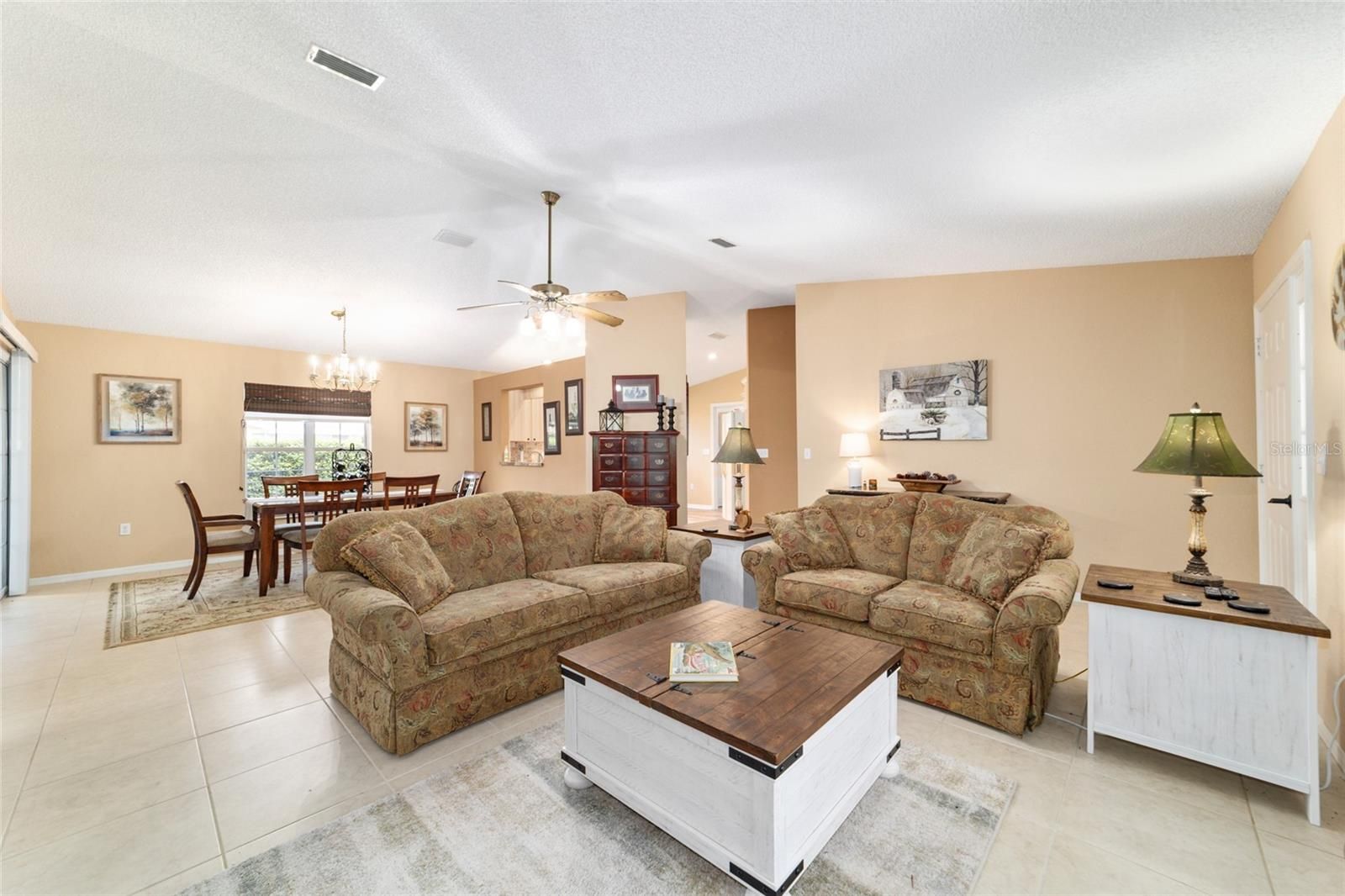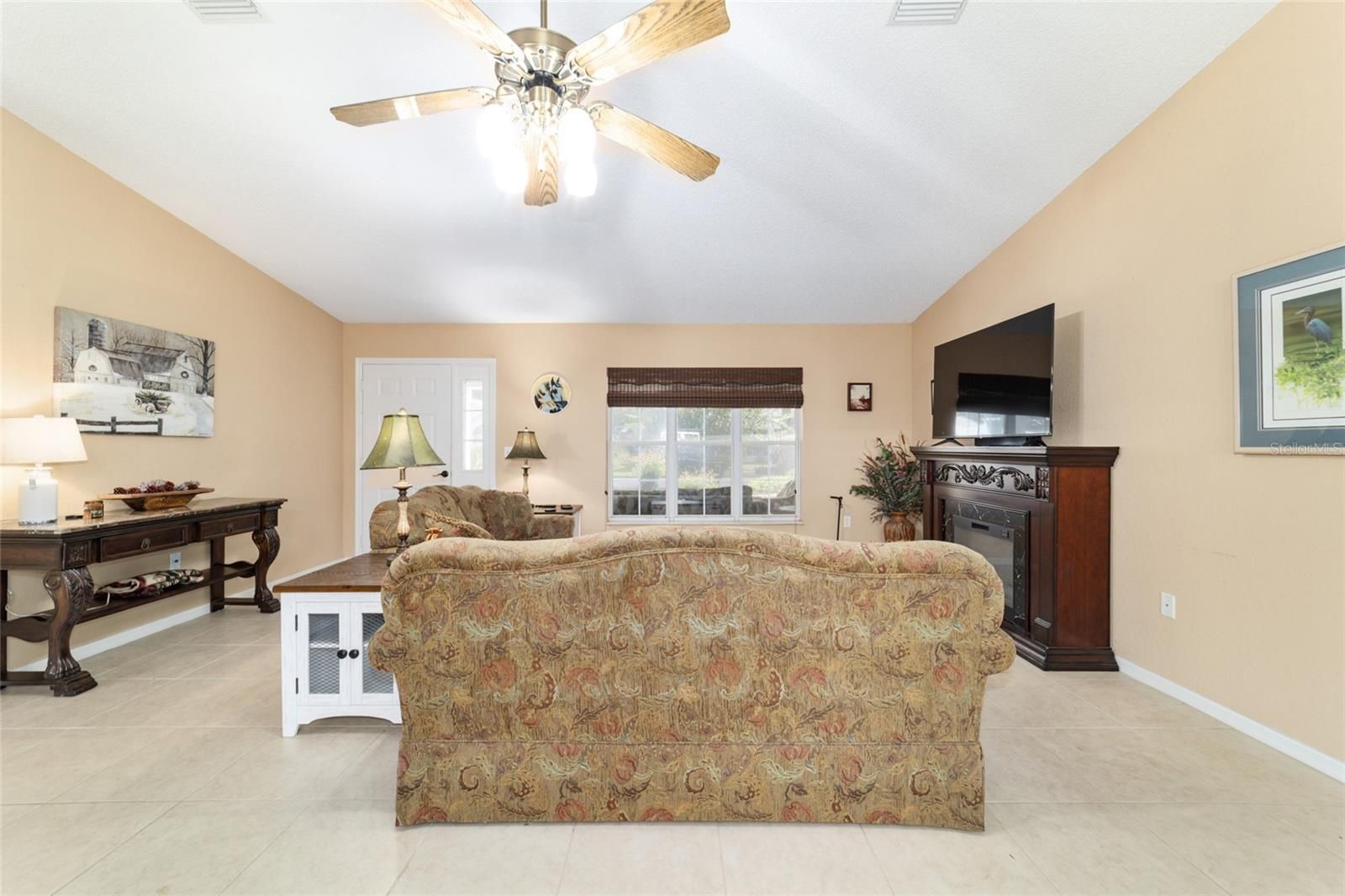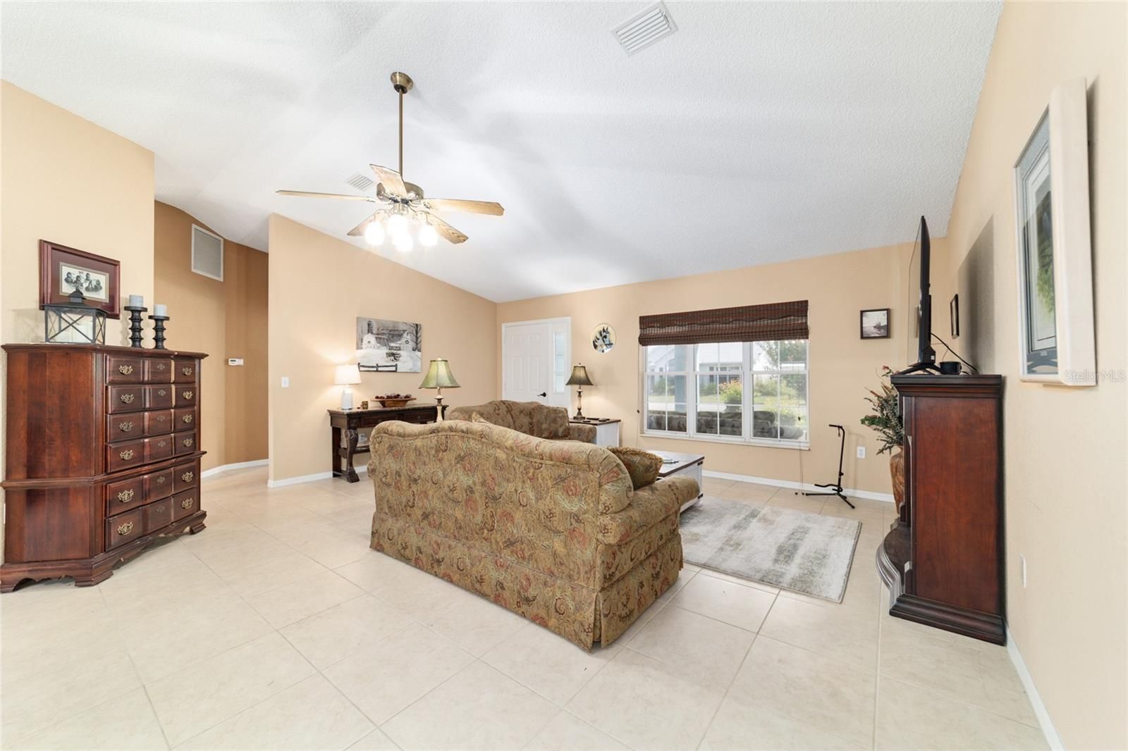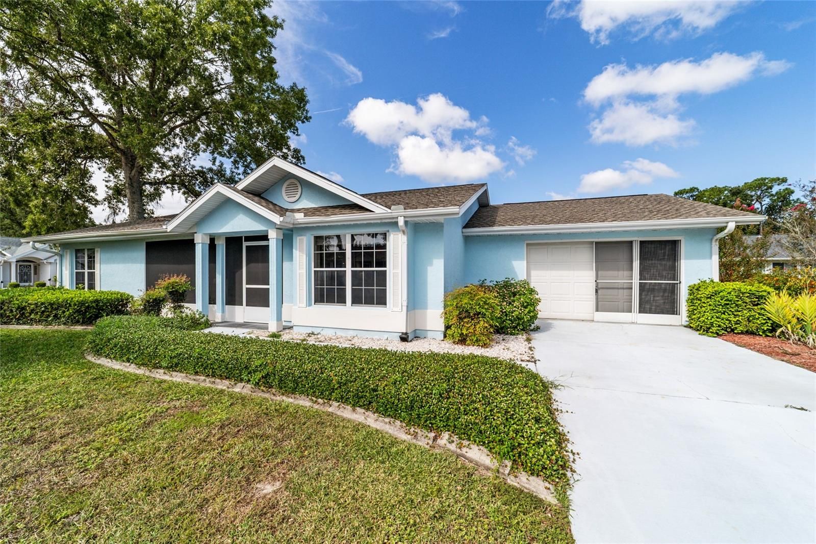 This beautifully maintained 2-bedroom, 2-bath split-bedroom home offers comfort, functionality, and plenty of updates. The large one-car garage provides extra space for a golf cart, and the newly screened front porch creates the perfect spot to relax and enjoy the outdoors. Inside, both bedrooms feature walk-in closets, with the second bedroom boasting new carpet. The primary suite includes a spacious vanity with seating area, a linen closet, and a walk-in shower. The guest bathroom features a tub/shower combo, another large vanity, and its own linen closet. Enjoy the spacious living and dining room combo with a convenient pass-through to the kitchen. The kitchen features a new dishwasher and vent hood, plus attractive tan countertops with a matching backsplash. Additional highlights include an indoor laundry room and a bright lanai with new Low-E windows to keep it cool, finished with elegant porcelain tile and access to the patio and large fenced backyard — perfect for pets or outdoor gatherings. Practical updates like rescreened garage sliders, an updated garage door opener, and a new roof (2024) provide peace of mind for years to come. Service fees includes trash pickup, basic cable, 24-hour security, access to all community amenities, and maintenance of common areas and facilities. Residents of this community enjoy access to numerous amenities with six pools ( 1 indoor ), 5 Hot tubs - spanning across three different club houses! But it doesn't stop there.. Over a 150 clubs to join, two recently updated workout centers, Enjoy meals at the on-site restaurant or hit the greens at the community golf course. Plus, there's a dedicated dog park for your furry friends. This community ensures an active and fulfilling lifestyle. Don’t miss out on this opportunity to make this home yours! VISIT HOMES FOR A 3D TOUR!