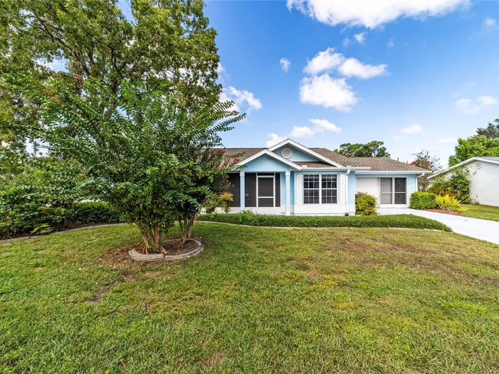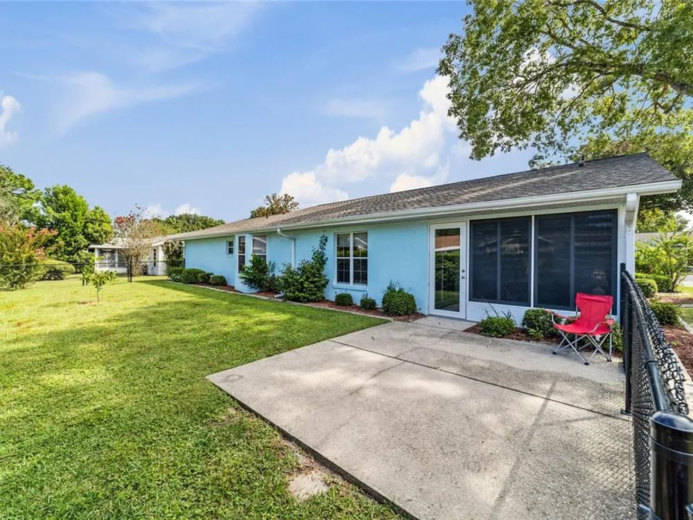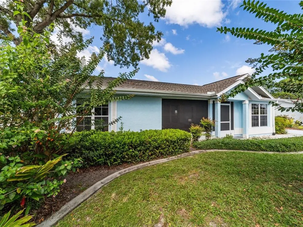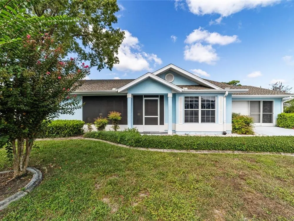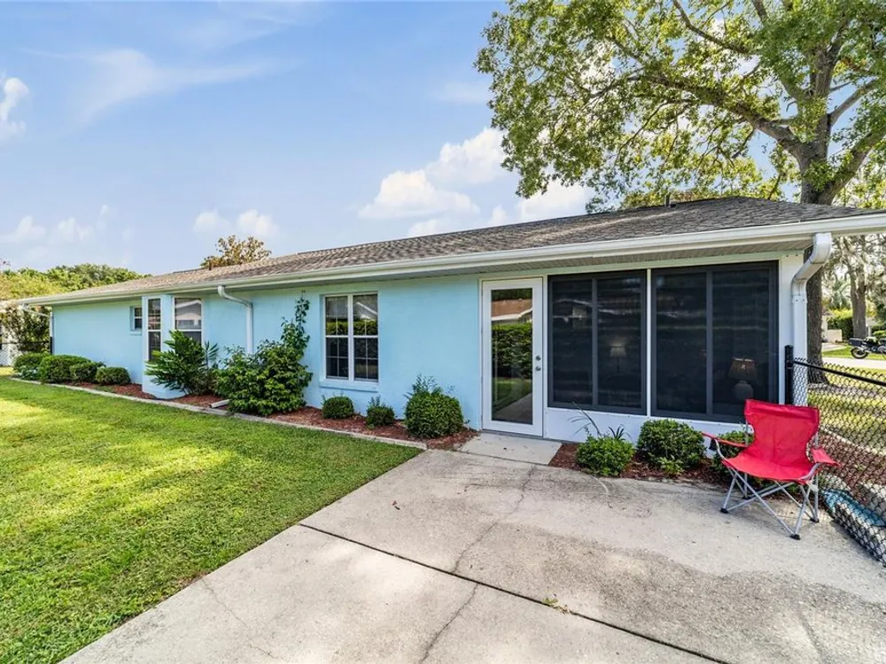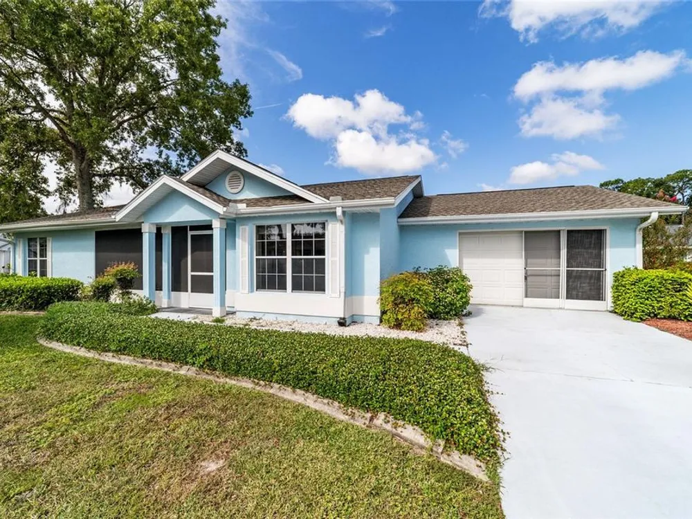 This beautifully maintained 2-bedroom, 2-bath split-bedroom home offers comfort, functionality, and plenty of updates. The large one-car garage provides extra space for a golf cart, and the newly screened front porch creates the perfect spot to relax and enjoy the outdoors. Inside, both bedrooms feature walk-in closets, with the second bedroom boasting new carpet. The primary suite includes a spacious vanity with seating area, a linen closet, and a walk-in shower. The guest bathroom features a tub/shower combo, another large vanity, and its own linen closet. Enjoy the spacious living and dining room combo with a convenient pass-through to the kitchen. The kitchen features a new dishwasher and vent hood, plus attractive tan countertops with a matching backsplash. Additional highlights include an indoor laundry room and a bright lanai with new Low-E windows to keep it cool, finished with elegant porcelain tile and access to the patio and large fenced backyard — perfect for pets or outdoor gatherings. Practical updates like rescreened garage sliders, an updated garage door opener, and a new roof (2024) provide peace of mind for years to come. Service fees includes trash pickup, basic cable, 24-hour security, access to all community amenities, and maintenance of common areas and facilities. Residents of this community enjoy access to numerous amenities with six pools ( 1 indoor ), 5 Hot tubs - spanning across three different club houses! But it doesn't stop there.. Over a 150 clubs to join, two recently updated workout centers, Enjoy meals at the on-site restaurant or hit the greens at the community golf course. Plus, there's a dedicated dog park for your furry friends. This community ensures an active and fulfilling lifestyle. Don’t miss out on this opportunity to make this home yours!