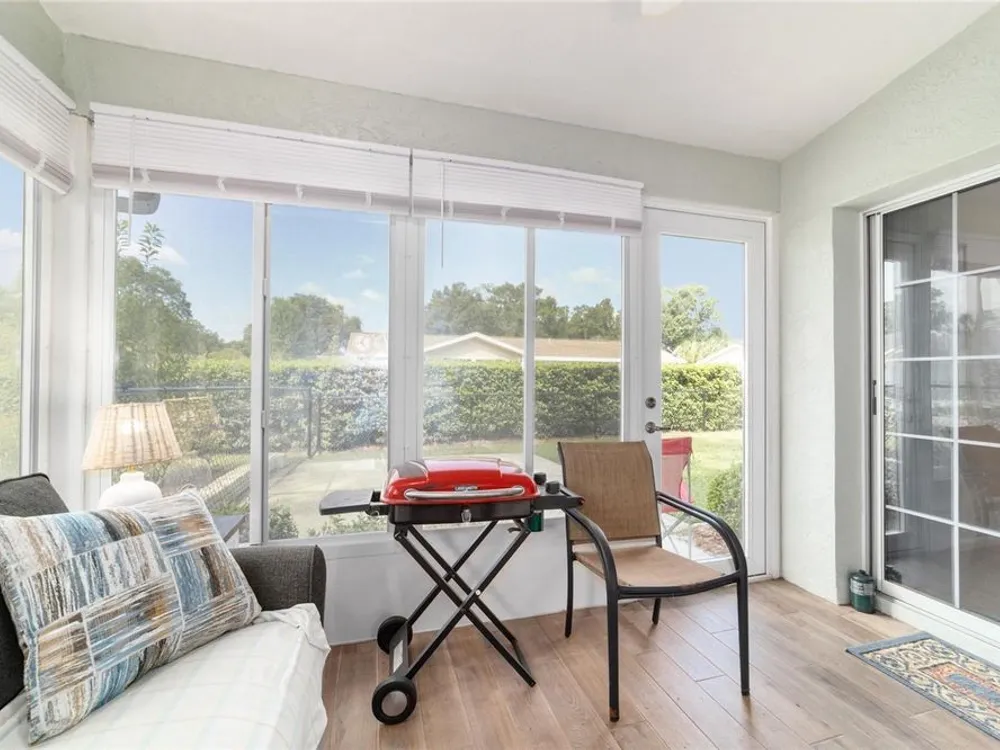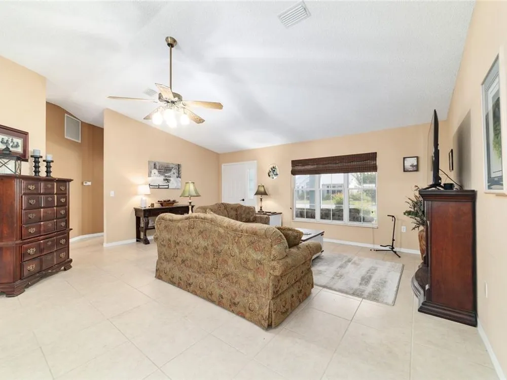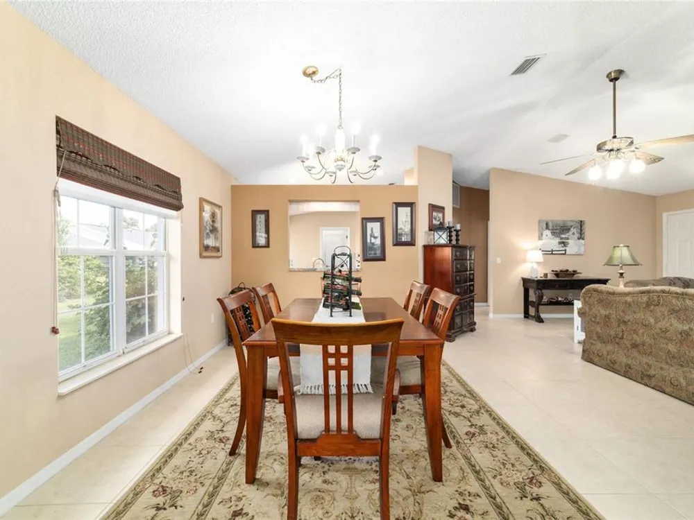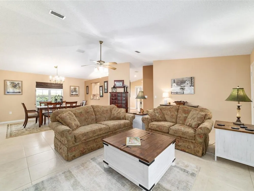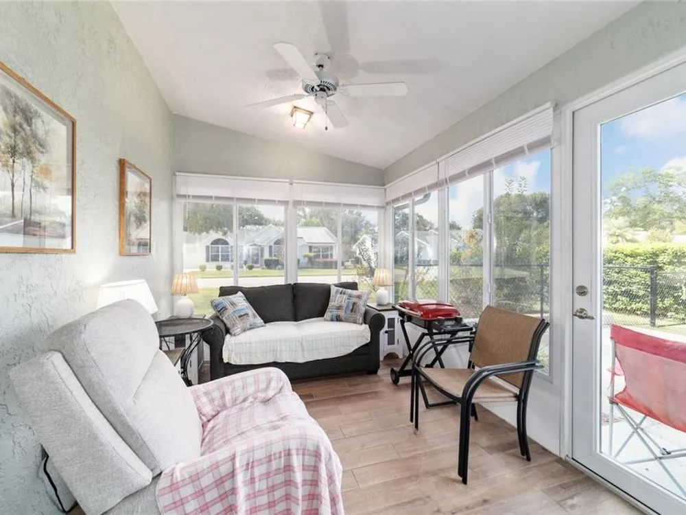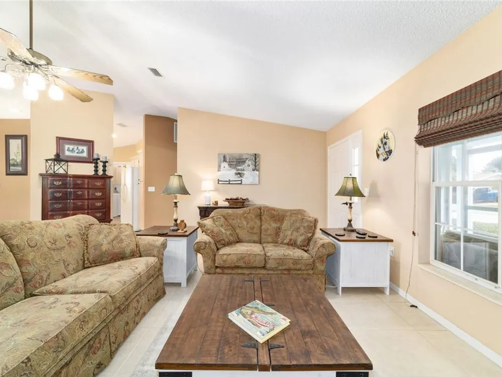This beautifully maintained 2-bedroom, 2-bath split-bedroom home offers comfort, functionality, and plenty of updates. The large one-car garage provides extra space for a golf cart, and the newly screened front porch creates the perfect spot to relax and enjoy the outdoors. Inside, both bedrooms feature walk-in closets, with the second bedroom boasting new carpet. The primary suite includes a spacious vanity with seating area, a linen closet, and a walk-in shower. The guest bathroom features a tub/shower combo, another large vanity, and its own linen closet. Enjoy the spacious living and dining room combo with a convenient pass-through to the kitchen. The kitchen features a new dishwasher and vent hood, plus attractive tan countertops with a matching backsplash. Additional highlights include an indoor laundry room and a bright lanai with new Low-E windows to keep it cool, finished with elegant porcelain tile and access to the patio and large fenced backyard — perfect for pets or outdoor gatherings. Practical updates like rescreened garage sliders, an updated garage door opener, and a new roof (2024) provide peace of mind for years to come. Service fees includes trash pickup, basic cable, 24-hour security, access to all community amenities, and maintenance of common areas and facilities. Residents of this community enjoy access to numerous amenities with six pools ( 1 indoor ), 5 Hot tubs - spanning across three different club houses! But it doesn't stop there.. Over a 150 clubs to join, two recently updated workout centers, Enjoy meals at the on-site restaurant or hit the greens at the community golf course. Plus, there's a dedicated dog park for your furry friends. This community ensures an active and fulfilling lifestyle. Don’t miss out on this opportunity to make this home yours!