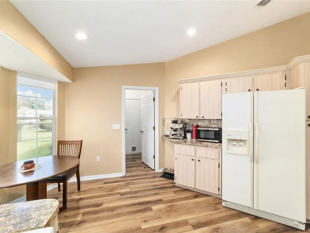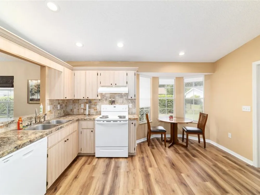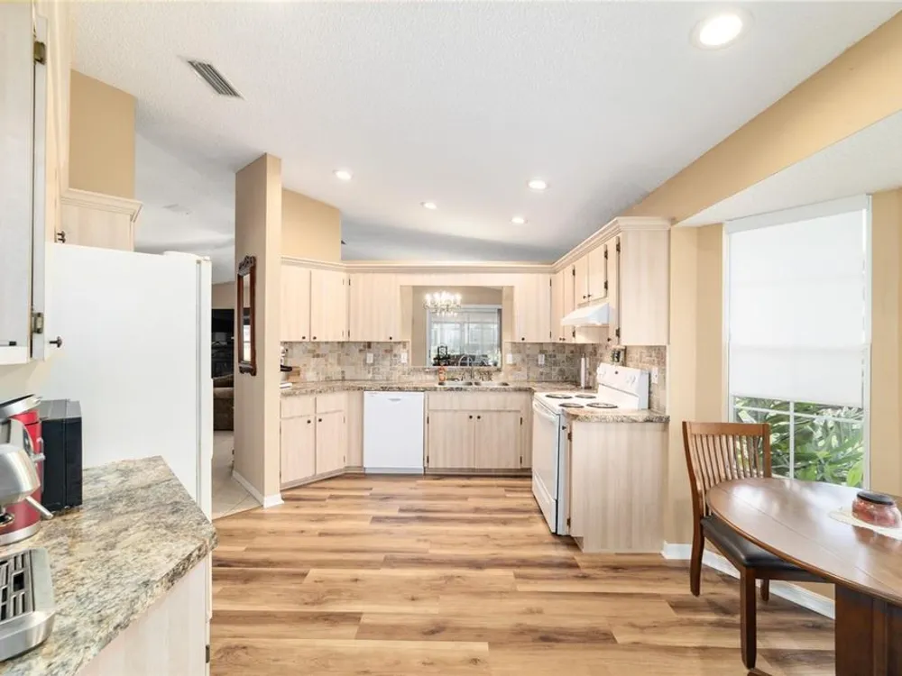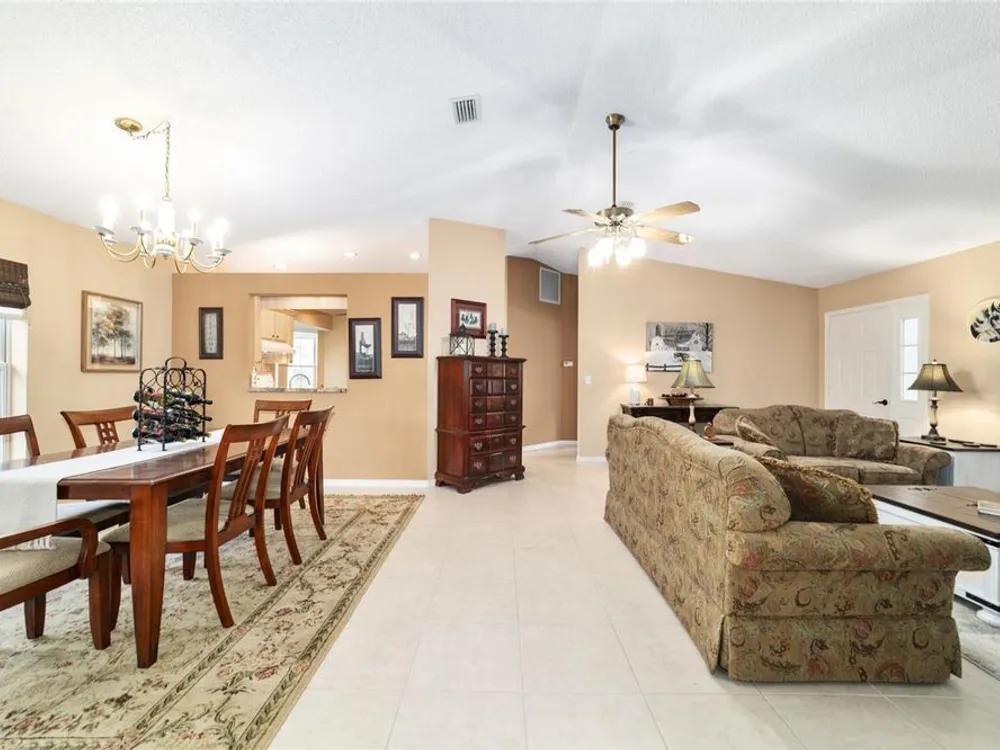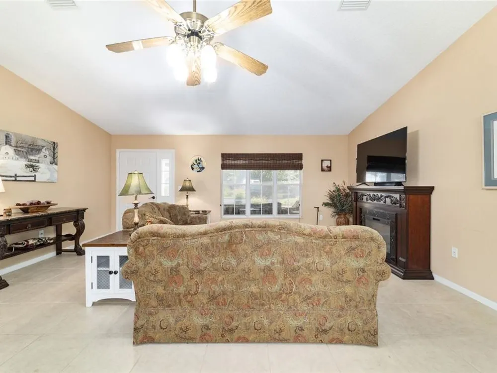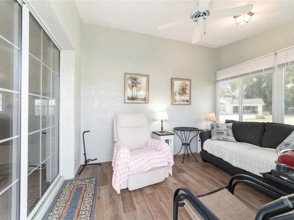 This beautifully maintained 2-bedroom, 2-bath split-bedroom home offers comfort, functionality, and plenty of updates. The large one-car garage provides extra space for a golf cart, and the newly screened front porch creates the perfect spot to relax and enjoy the outdoors. Inside, both bedrooms feature walk-in closets, with the second bedroom boasting new carpet. The primary suite includes a spacious vanity with seating area, a linen closet, and a walk-in shower. The guest bathroom features a tub/shower combo, another large vanity, and its own linen closet. Enjoy the spacious living and dining room combo with a convenient pass-through to the kitchen. The kitchen features a new dishwasher and vent hood, plus attractive tan countertops with a matching backsplash. Additional highlights include an indoor laundry room and a bright lanai with new Low-E windows to keep it cool, finished with elegant porcelain tile and access to the patio and large fenced backyard — perfect for pets or outdoor gatherings. Practical updates like rescreened garage sliders, an updated garage door opener, and a new roof (2024) provide peace of mind for years to come. Service fees includes trash pickup, basic cable, 24-hour security, access to all community amenities, and maintenance of common areas and facilities. Residents of this community enjoy access to numerous amenities with six pools ( 1 indoor ), 5 Hot tubs - spanning across three different club houses! But it doesn't stop there.. Over a 150 clubs to join, two recently updated workout centers, Enjoy meals at the on-site restaurant or hit the greens at the community golf course. Plus, there's a dedicated dog park for your furry friends. This community ensures an active and fulfilling lifestyle. Don’t miss out on this opportunity to make this home yours!