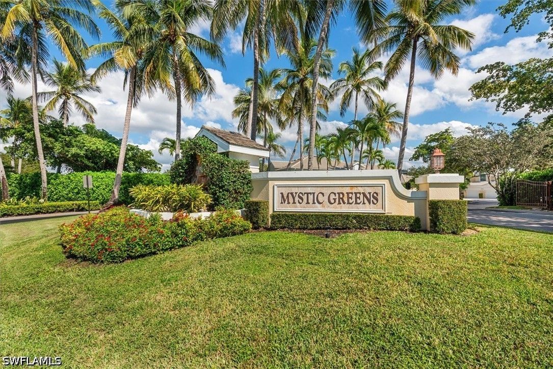 Welcome home to Mystic Greens located within the prestigious Ley Resort. This bright and beautiful 3 bedroom, 3 bath coach home with 2 car garage and private elevator is being offered turnkey furnished and tastefully decorated. The spacious condo lives like a single family home with sunset views over a small lake from the lanai, protected with hurricane shutters. Open concept floor plan with 3 ensuite bedrooms, all with pocket doors adding extra privacy and 2 with walk-in closets. Recent 2024-2025 updates include: new A/C & hot water heater, new contemporary light fixtures and ceiling fans, freshly painted, new quartz countertops & fixtures in all 3 bathrooms, new vanities & fixtures in Master Bathroom. The large kitchen is equipped with new stainless appliances, granite countertops & island, eat in kitchen table & bar and walk-in pantry conveniently adjacent to the dining room. Extras include large storage room in the garage, front door video/intercom for security, soaking tub with sky light in the Master Bath and bay windows adding sunlight in the Master Bedroom. The pet friendly gated community of Mystic Greens has its own clubhouse, heated pool & spa, fitness room and grilling stations. Optional membership to the renowned Player's Club & Spa is available providing world class amenities: state of the art fitness center, full service spa, resort style pools, fine or casual dining and bocce ball, tennis and pickleball courts. Lely Resort has over 3,000 acres with public and private courses, walking trails and gorgeous lake views, all conveniently located too! Looking for a new place to call home? THIS IS IT!
