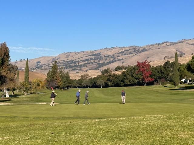 Idyllic comfortable serene sunny southwest oriented end-unit condo overlooking lush fairway and green of the renown 16th hole at THE VILLAGES, a 55+ uber fun secure gated community in the magical foothills of San Jose. A thoughtfully designed two bedroom, two baths home with office/den (viable conversion to 3rd bedroom). 1,646 SqFt of single level living, spacious living room with cozy wood fireplace and sprawling deck w views of hills and tranquil bird song, separate and roomy dining room, dine-in kitchen, indoor laundry (+storage) and bonus sq. ft. in finished workshop garage loft w window and skylight ideal for creativity/crafts/woodwork, or office. Recent upgrades NEW carpet, paint, outlets, switches, and dbl pane windows. Move in ready! Significant storage in attached garage, elec. chair lift on stairs from garage floor level up to main floor (approx 8 steps),an additional carport for visitors, or your golf cart. These larger 1646 floor plans are rare to market. Start your new lifestyle in the vastness of The Villages experience with abundant resources including golf, tennis, pickleball, bocce, swimming, social clubs and a delightful restaurant. Your next chapter is going to be great here come have a look today.