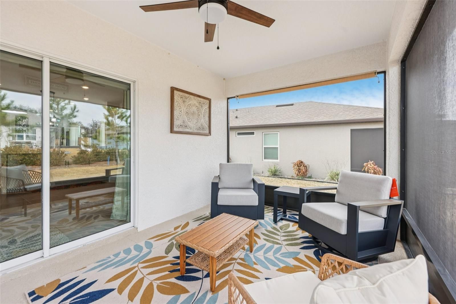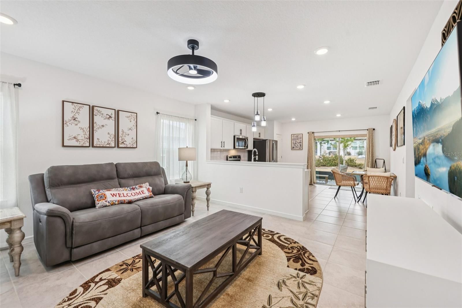 Welcome to this stunning 3-bedroom, 2-bathroom home in the gated Stone Creek by Del Webb community in Ocala, built in 2024. The moment you step inside, you’ll be greeted by a bright, open floorplan connecting the living room, dining area, and kitchen, perfect for everyday living and entertaining. The living room features a brand-new built-in electric fireplace and flows seamlessly into the kitchen’s eating area. The kitchen is a chef’s delight, featuring stainless steel appliances, a spacious pantry, and solid surface countertops. Just off the kitchen, a two-panel sliding glass door fills the space with natural light and opens to the screened-in lanai overlooking a serene backyard. The primary suite provides a relaxing retreat with an en suite bathroom and a generous walk-in closet. Both bathrooms feature all new faucets and shower doors, continuing the home’s cohesive, modern feel. The laundry room is thoughtfully designed with built-in storage shelving for added convenience. This home is packed with upgrades, including a brand-new water softener, professionally designed landscaping, all new light fixtures throughout, and pavers in the driveway along with an additional paver porch just outside the lanai. The screened lanai itself is the perfect place to unwind and enjoy the Florida lifestyle. Stone Creek residents enjoy a wealth of resort-style amenities, including a large dog park, a sparkling community pool, pickleball and tennis courts, a baseball field, and golf—making it easy to stay active and social. Conveniently located near grocery stores, parks, medical facilities, golf courses, and the World Equestrian Center, this home offers the perfect balance of comfort, style, and location. With modern finishes, thoughtful design, and a vibrant community lifestyle, this Stone Creek home is ready to welcome you. Mortgage savings may be available for buyers of this listing.