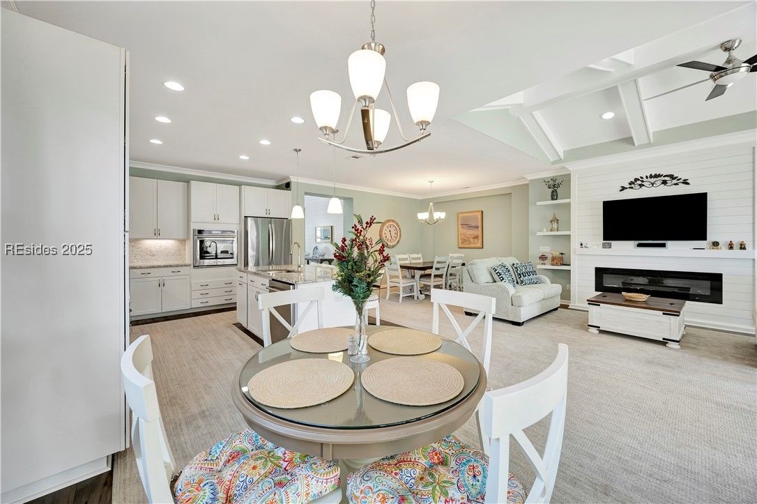 - Bookcases, Ceiling Fan(s), Carbon Monoxide Detector, Fireplace, Main Level Primary, Multiple Primary Bathrooms, See Remarks, Eat-in Kitchen, Pantry