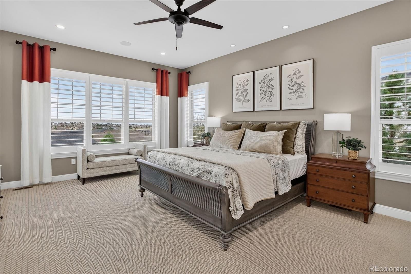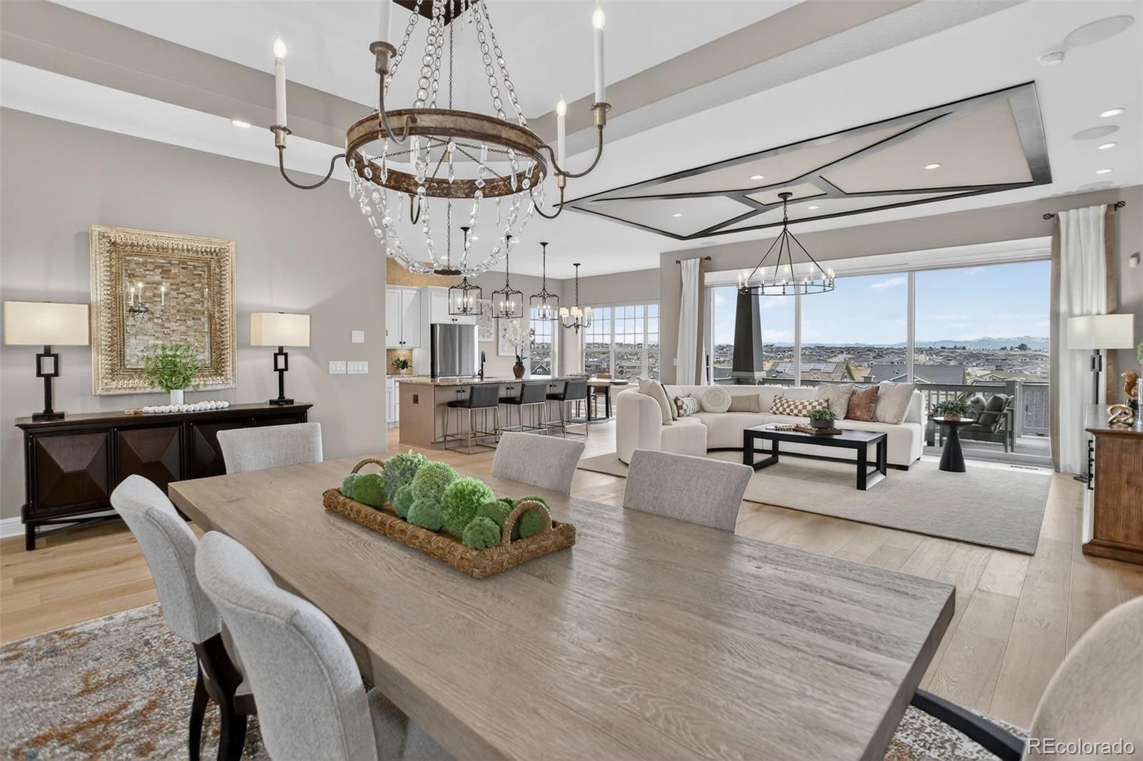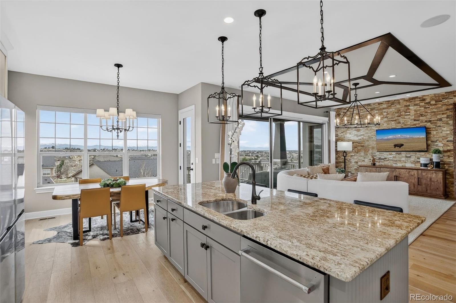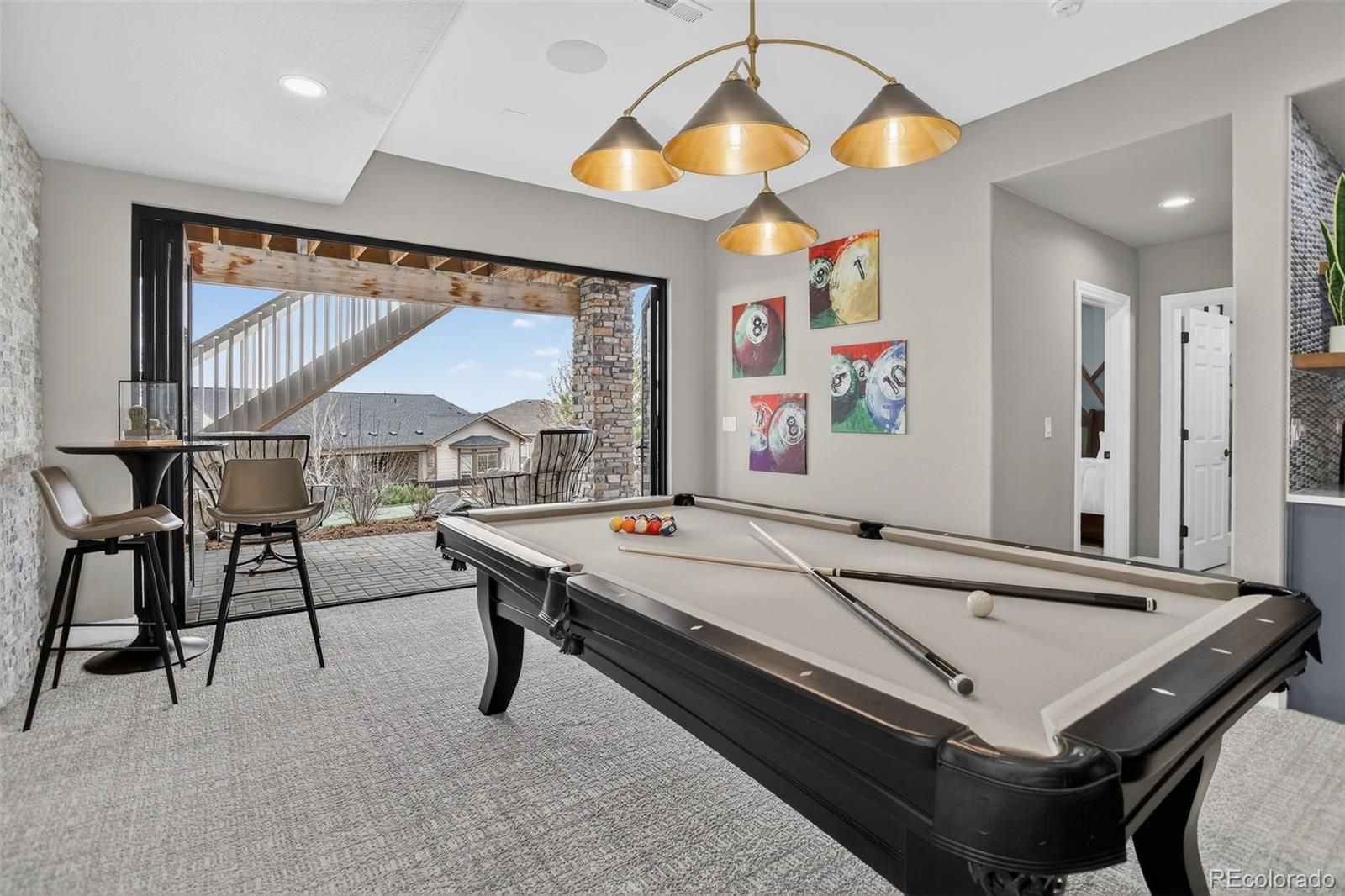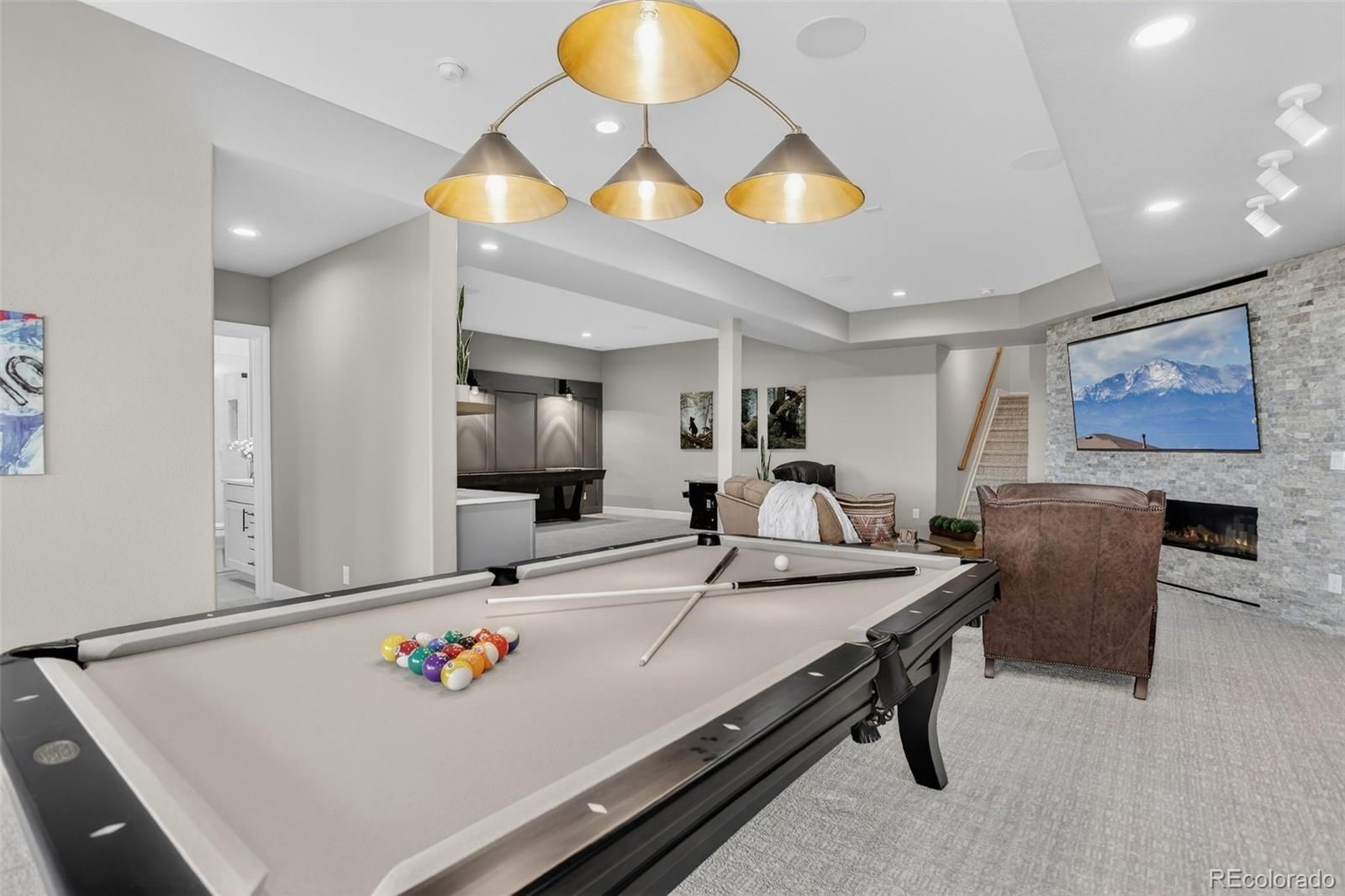 There are homes that simply check the boxes and then there are homes like this, where every detail invites you to live more beautifully. Set on a quiet cul-de-sac in the coveted 55+Hilltop at Inspiration, this former Toll Brothers model home offers a rare blend of sophistication, comfort and breathtaking natural beaut with sweeping 180-degree mountain views that steal the show from sunrise to sunset. From the moment you arrive, the professionally landscaped grounds, elegant exterior lighting & welcoming outdoor spaces create an unforgettable first impression. Inside, 4,367 sf of impeccably finished living space unfolds with soaring 10-foot ceilings, rich wood flooring & stunning floor-to-ceiling stacking glass doors that blur the line between indoors & out, placing Colorado’s majestic scenery at the center of everyday life. The kitchen is as functional as it is refined, appointed with top of the line appliances, large quartz center island, dedicated pantry and custom lighting - ideal for intimate evenings at home or entertaining on a grander scale. Throughout the home, shutters & motorized shades add a polished touch while fully owned solar panels deliver remarkable efficiency with zero additional electric/gas costs. The basement was designed for memorable gatherings featuring a spacious TV room, a gaming space, a billiards area, a fully equipped wet bar, a bonus craft/hobby room and a private guest suite with adjacent bath. Terrace doors lead you to a covered back patio where year-round enjoyment awaits with built-in patio heaters, a new built in gas grill and a private putting green — a magical place to relax under painted evening skies. Completing the experience is an epoxy-coated with EV charger and work bench... all just steps from the community clubhouse to enjoy all that Hilltop offers! This is luxury lock-and-leave living at its finest, wrapped in one of Inspiration’s most extraordinary settings. Recent Updates include new roof, tankless water heater, & AC