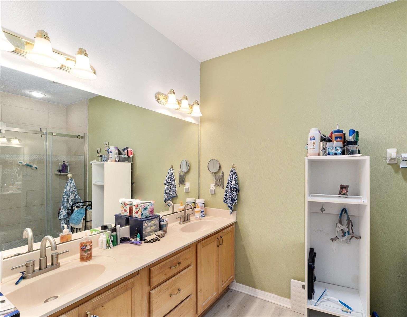 This spacious 3-bedroom, 2-bath residence offers nearly 2,500 total square feet and is ideally located in a premier 55+ community close to everything you need — shopping, dining, medical facilities, and a host of on-site amenities designed for active living. A covered foyer entry leads into a welcoming living room with laminate flooring throughout the social areas. The formal dining room provides a great space for hosting family and friends. The eat-in kitchen features stainless steel appliances, an abundance of cabinet and counter space, and a convenient breakfast counter for casual dining. The large primary suite includes dual vanities, a step-in shower, and two walk-in closets for ample storage. Enjoy year-round relaxation in the enclosed lanai, which flows seamlessly to a spacious screened patio — perfect for entertaining or soaking in the Florida sunshine. Additional highlights include a garage with screened doors to allow fresh air circulation and comfort during the summer months. Conveniently situated just minutes from the World Equestrian Center and the Hwy 200 corridor, this home offers the perfect blend of comfort, convenience, and community living in beautiful Marion County.