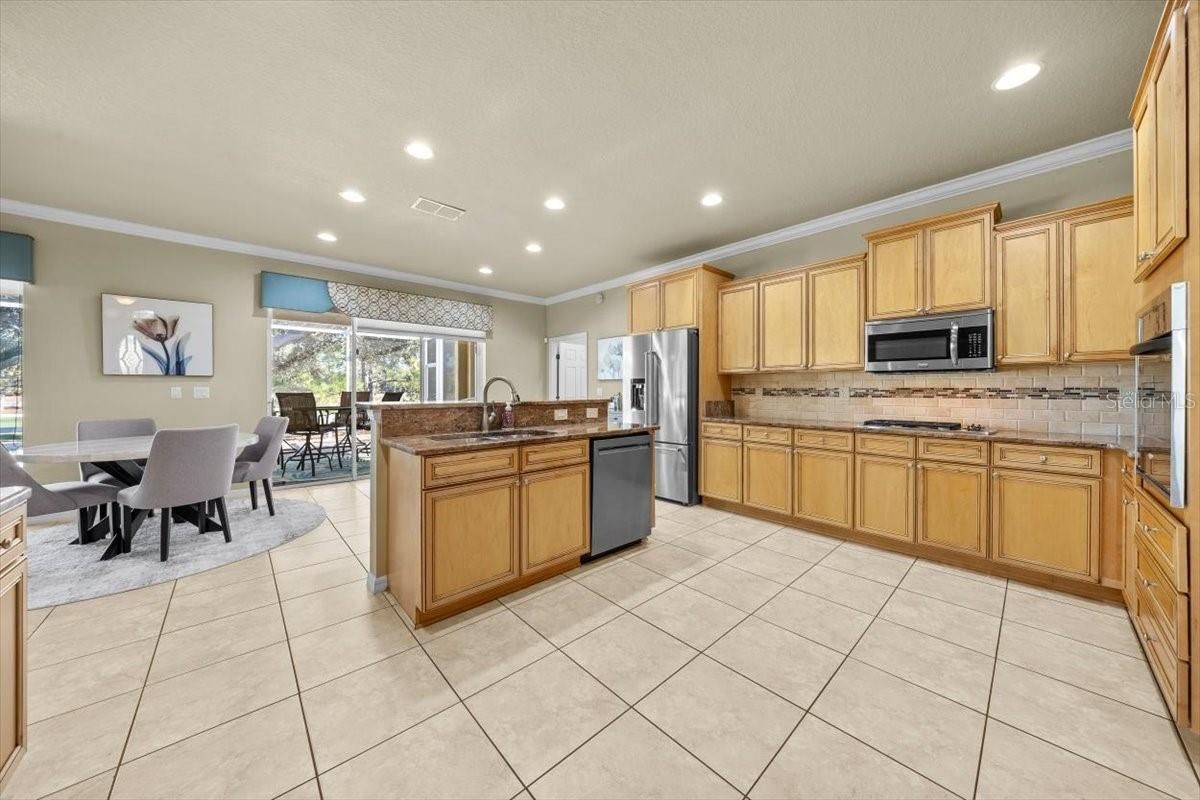 Golf course living at its finest in Candler Hills, the premier 55+ gated golf community in Southwest Ocala. This spectacular 3-bedroom, 2-bath home features a desirable split-bedroom floor plan and is perfectly positioned on the tee box of the 17th hole of the Candler Hills Golf Course. This expanded Huntley II single-family home is truly an entertainer’s dream. Exceptional curb appeal welcomes you with stacked stone accents, a paver driveway and walkway, concrete landscape curbing, and a 2-car garage PLUS a separate golf cart garage. Step through the formal foyer with its elegant circular tray ceiling and enjoy immediate views through the home. The formal dining room sits to the right, while the two guest bedrooms and guest/hall bath are located to the left. The laundry room and garage access are conveniently positioned nearby. The heart of the home is the expansive great room and gourmet kitchen, designed for both comfort and entertaining. The kitchen boasts granite countertops, upgraded cabinetry, a custom backsplash, high-end appliances, and a breakfast bar. The private primary suite, located at the rear of the home, features a tray ceiling, two closets, and a luxurious en-suite bath with a custom tiled walk-in shower with seat, large jacuzzi tub, dual-sink vanity, linen closet, and comfort-height toilet. From the great room, step through two sets of triple sliding doors onto the impressive 20’ x 40’ screened lanai/birdcage, ideal for seamlessly extending indoor living to the outdoors. Additional upgrades include crown molding throughout, a whole-house natural gas generator, tankless water heater, 2021 roof, 2017 HVAC (routinely maintained), 18” neutral ceramic tile flooring in main living areas, carpeted bedrooms, and plantation shutters throughout. The monthly HOA fee curbside trash/recycling & mail delivery, 24/7 monitored gates and what seems like endless amenities. Candler Hills residents have private access to The Lodge which provides over 18,000 sf of enjoyment including a resort-style pool featuring beach entry and separate spa, covered pavilion, indoor gathering lounge, ballroom, catering kitchen, and much more. Candler Hills features a par 72 championship golf course, and two more private courses are within the OTOW Central area. Candler residents also have access to all OTOW Central amenities; 3 pools (2 outside & 1 inside & another under construction), state of the art fitness centers, pickleball (uncovered & covered), billiards, archery range, corn hole, bocce ball, tennis, shuffleboard, horse shoes, remote control flying field and race cars, 175+ clubs, woodworking shop (extra fee), library, and much, much more! A golf cart community with access to several shopping centers, restaurants, entertainment venue, and more! Centrally located 20 minutes from the World Equestrian Center, easy drive to 4 cruise ports and/or airports, and within a close proximity to entertainment complexes in Orlando. Furniture/Furnishings/Golf Cart available for purchase outside the sale of the home.