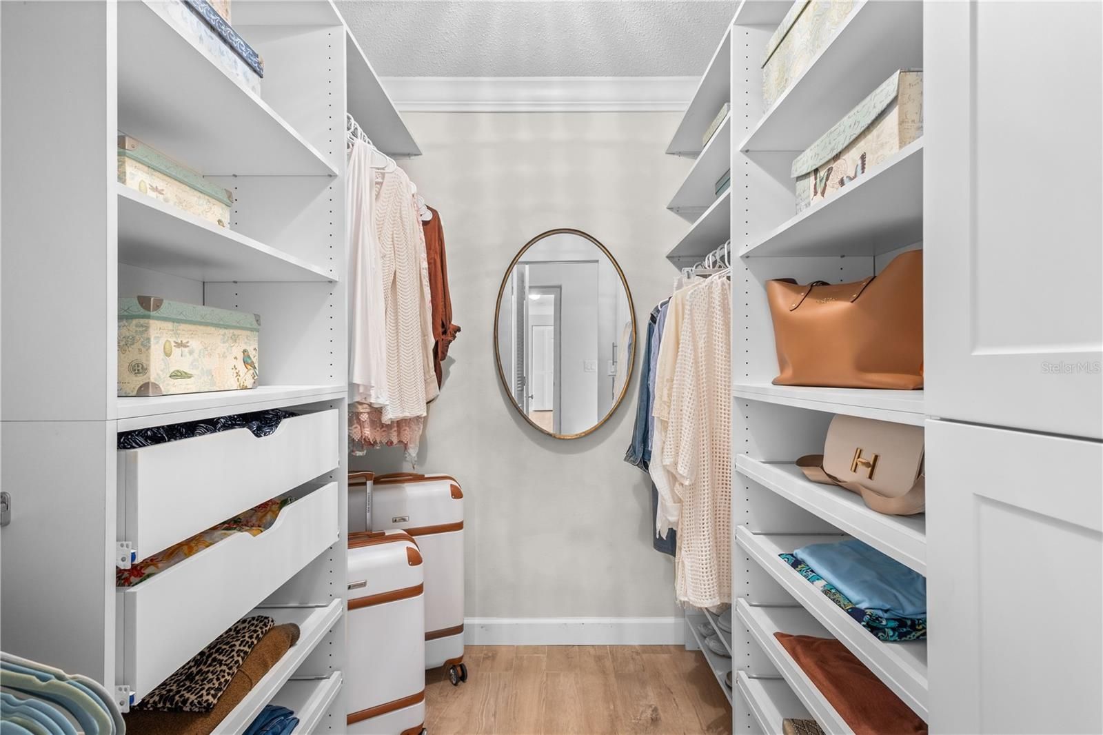 - Built-in Features, Crown Molding, Stone Counters, Thermostat, Walk-In Closet(s), Window Treatments
