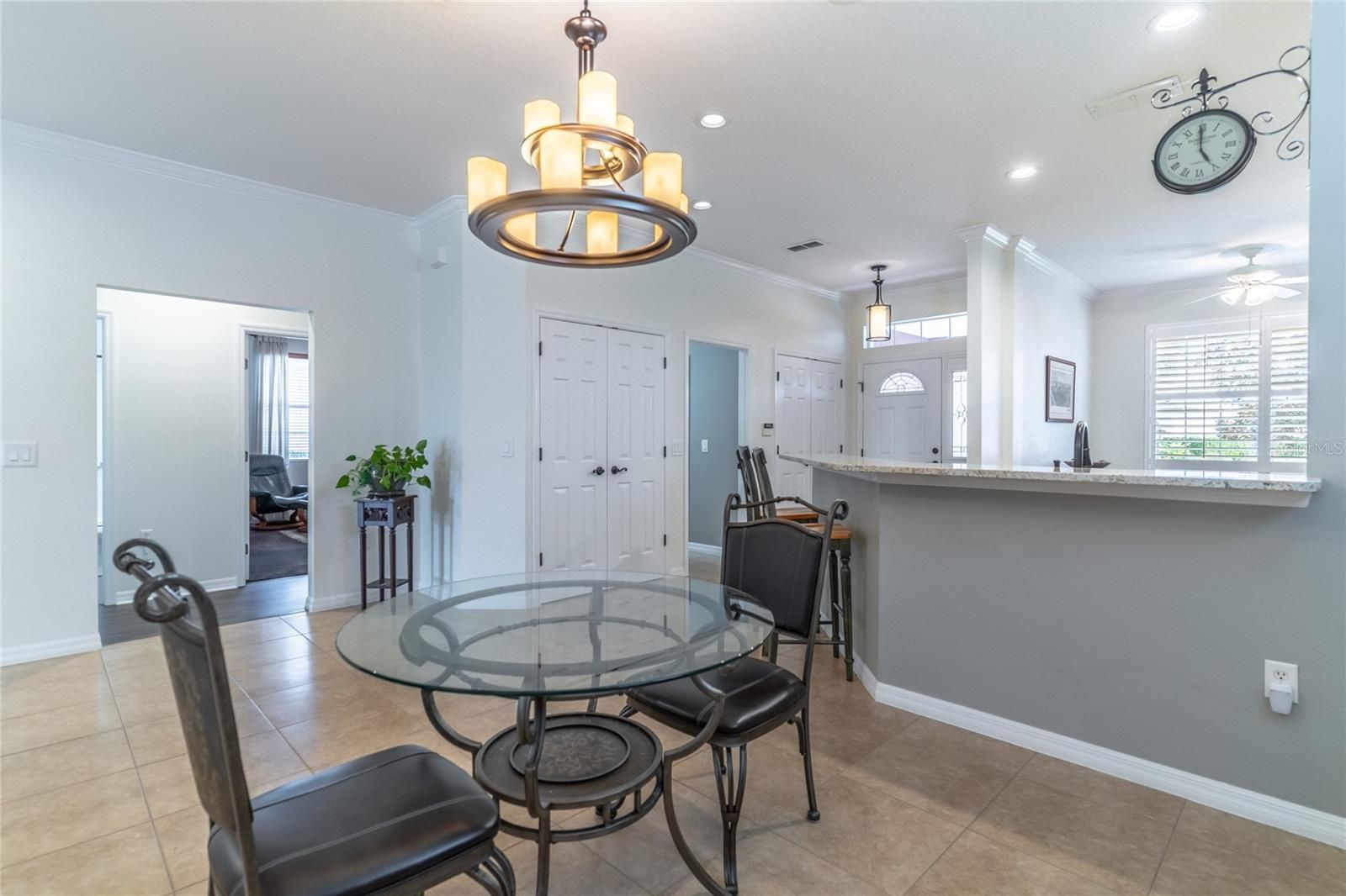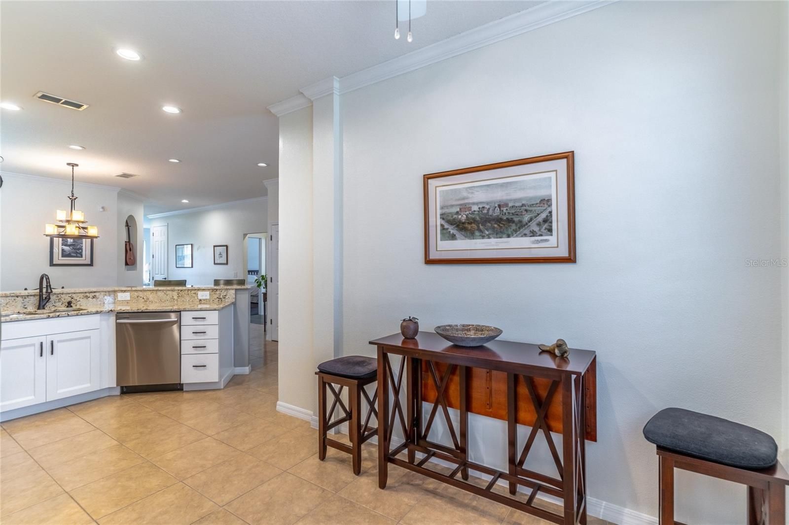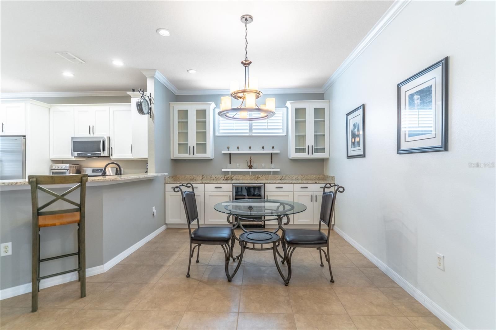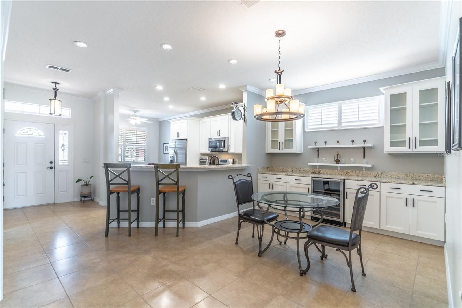 - Ceiling Fan(s), Crown Molding, Dry Bar, Eat-in Kitchen, High Ceilings, Split Bedrooms, Stone Counters, Thermostat, Walk-In Closet(s), Window Treatments