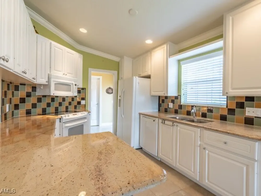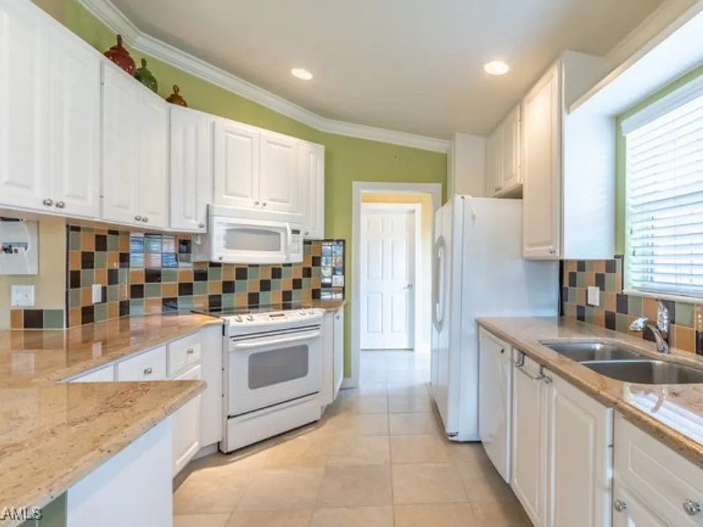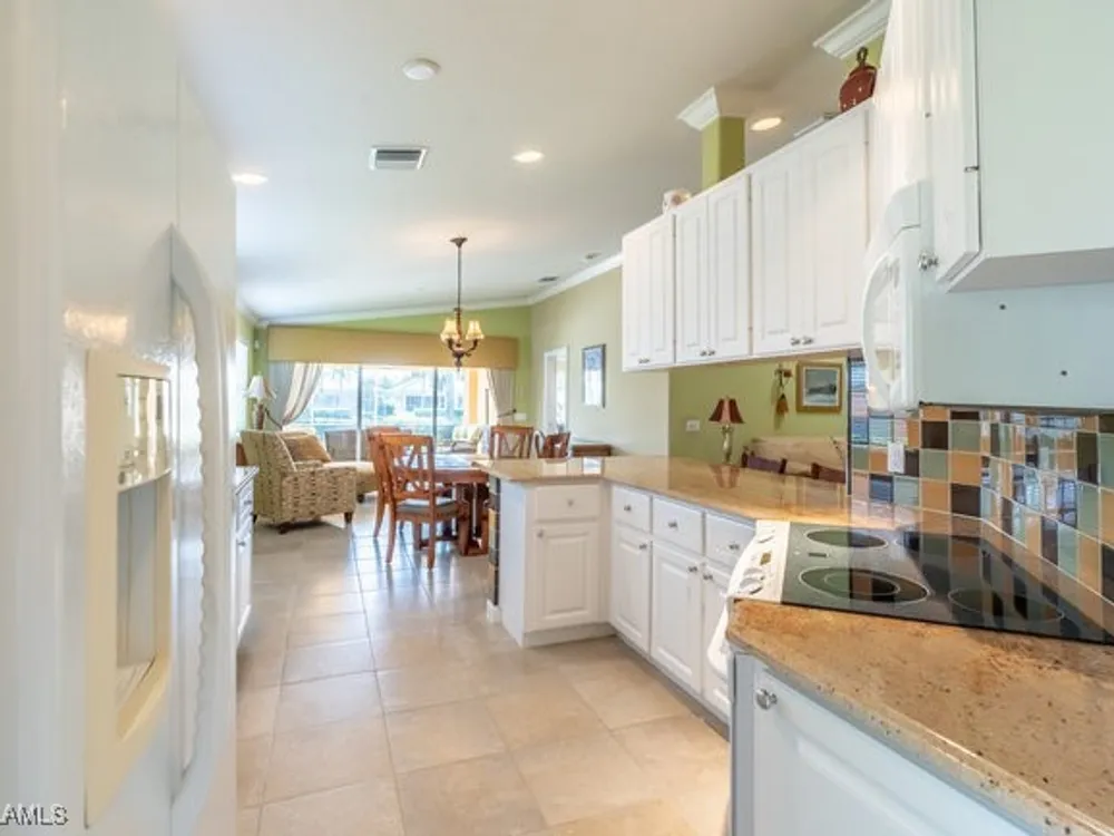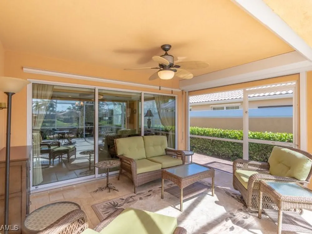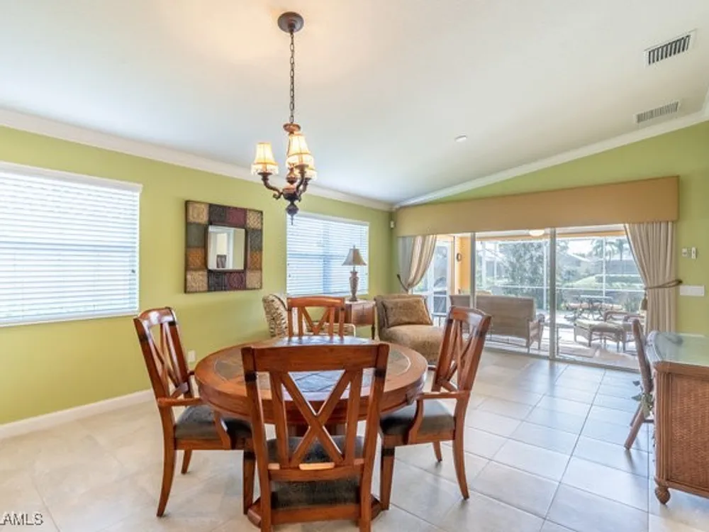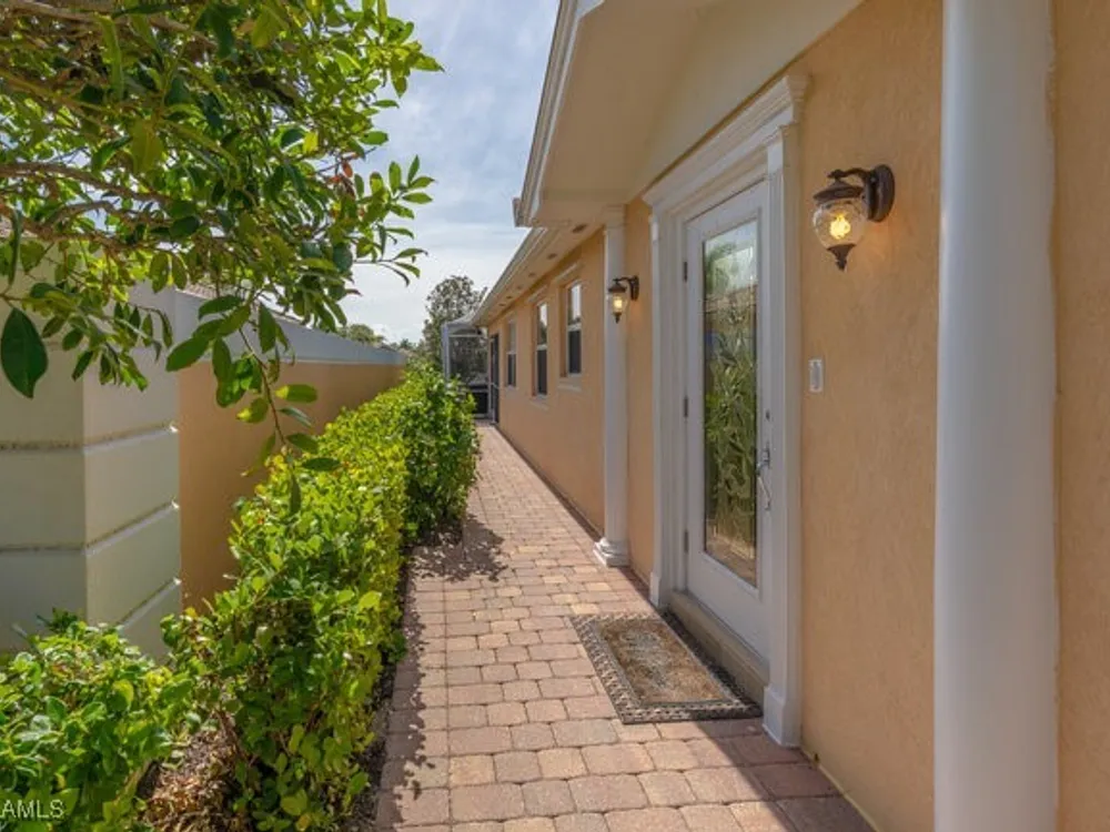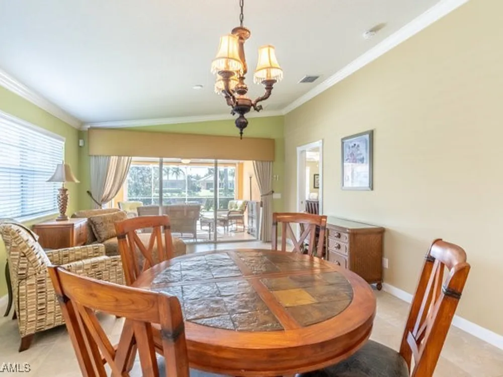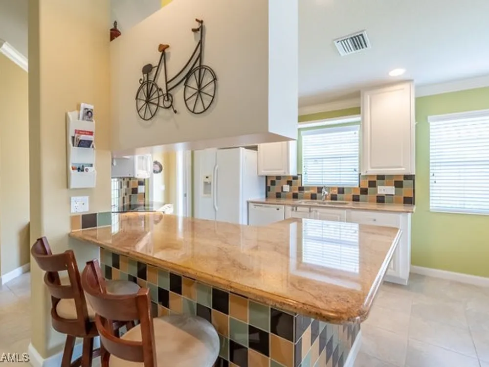 THIS HOME IS IN BEAUTIFUL CONDITION A MUST SEE TO HAVE THIS Two-bedroom with den/two bath Capri attached villa located in the gated community of Veronawalk. A full glass, decorative paned entry door opens into the unit that offers vaulted ceilings wrapped in crown molding. The contemporary, split floor plan places each bedroom and bath on opposite sides of the home to allow privacy when entertaining overnight guests. Tile floors are throughout the home, with the exception of wood in the bedrooms. A centrally located white kitchen offers an abundance of cabinetry. Rich colored granite counters and a colorful tile backsplash that matches the breakfast bar surround gives an added pop of color. There is a NEWER HOT WATERHEATER and A/C, REF,WASHER AND DRYER ETC units in place. A bank of sliding doors opens onto a lovely, covered lanai. Enjoy the water view from your extended, screen enclosed, travertine tiled patio. This home is storm ready with electric storm shutters on lanai and accordion shutters on rear master window. Being offered furnished, you could be moved in and enjoying the Naples lifestyle this coming season.