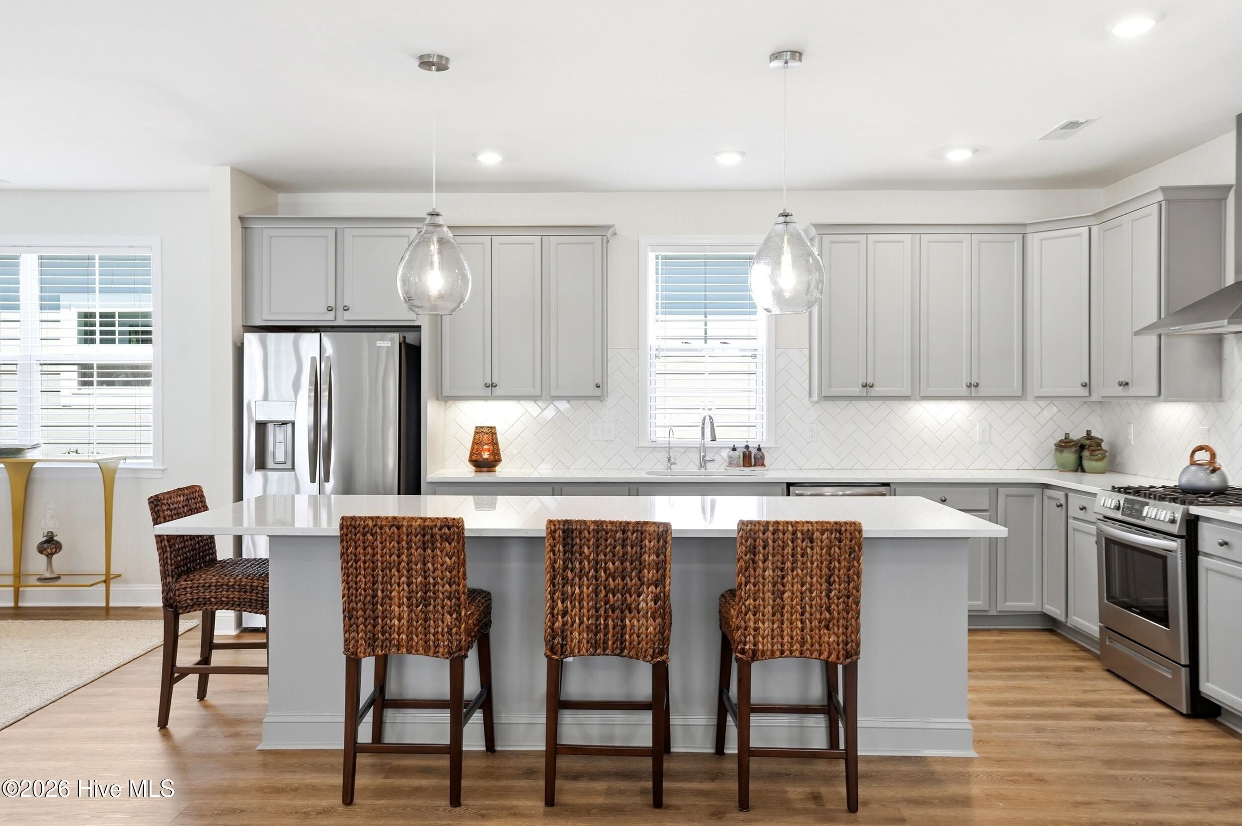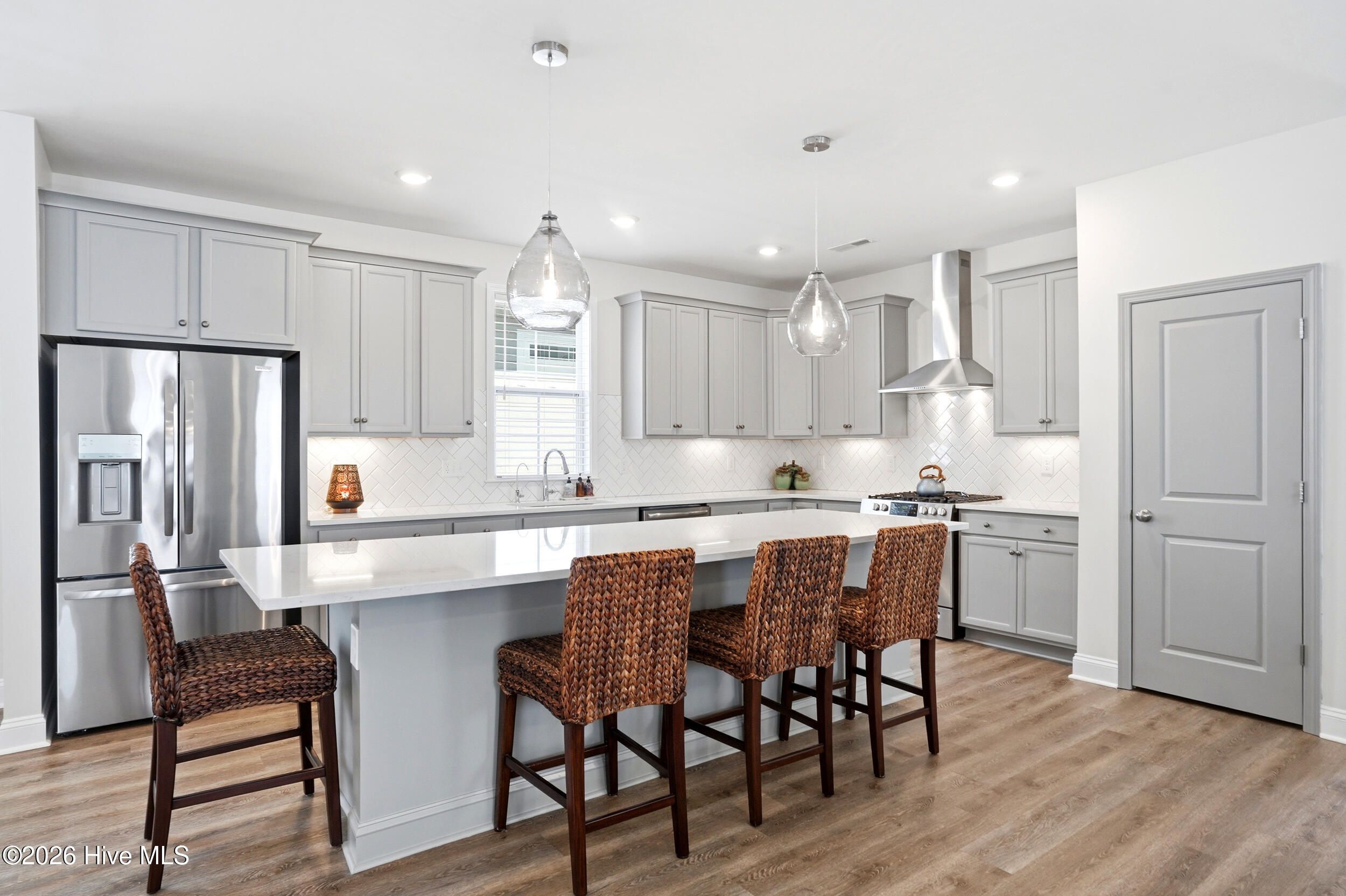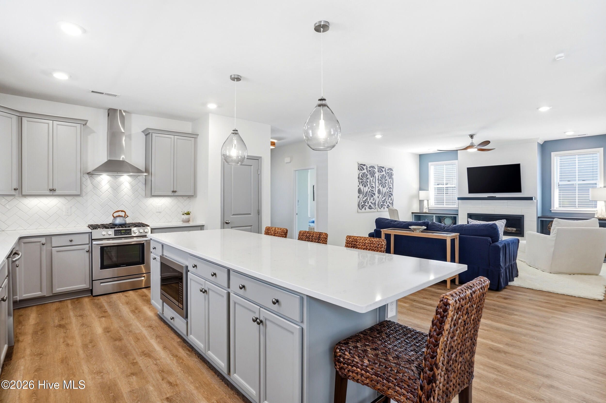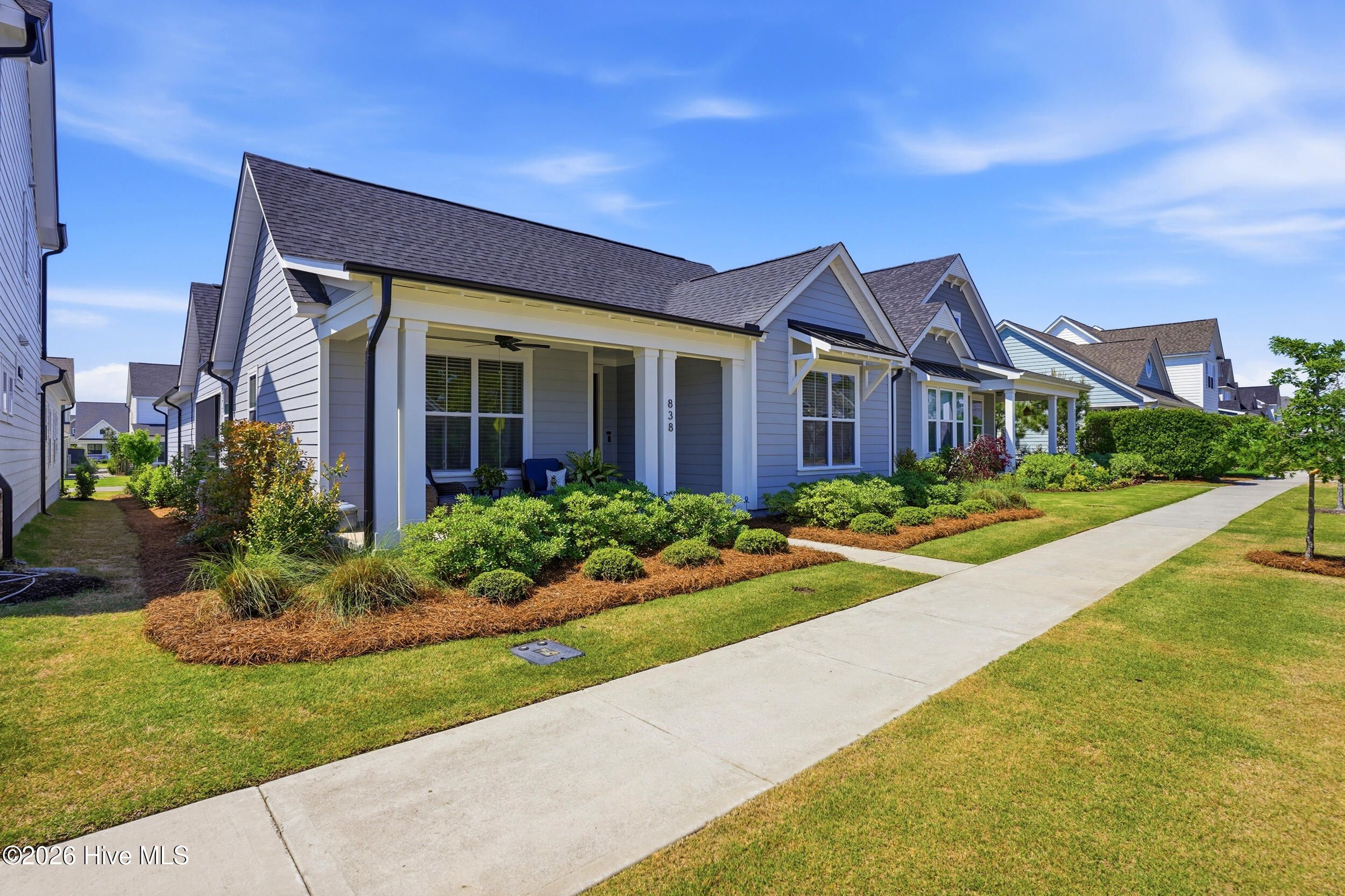 Better than new & designed for easy one-level living, this thoughtfully upgraded home is both stylish & functional, with an abundance of custom cabinetry & built-in storage. Built in 2022 & meticulously enhanced by the owner, it's ready for you to move right in & start enjoying the Riverlights lifestyle. Start your mornings on the peaceful screened porch, where you can sip your coffee as the day begins or recharge as the sun sets. It's the perfect extension of the home's inviting atmosphere. The living space is anchored by a sleek linear gas fireplace, creating a warm, modern focal point, flanked by custom built-ins, providing just the right touch of comfort during coastal Carolina's cooler seasons. The living space has a bright, open floor plan, perfect for entertaining & everyday living. The kitchen is both beautiful & practical, with reverse osmosis water filtration, custom storage & pull-out shelving, a custom pantry, & an expansive island. Upgraded LVP flooring runs throughout the home, with designer ceiling fans that add a polished touch to every room. The primary suite is a true retreat, with two closets & a walk-in shower. The laundry room has been upgraded with custom cabinetry, & there's a drop zone just inside the back door. Two more bedrooms at the front of the house share a hallway bath & provide flexibility for guests, a home office or hobbies. Other features include a 2-car attached garage, irrigation system & gutters. Life at Riverlights is hard to beat! Resort-style amenities include 2 pools, fitness centers, pickleball courts, trails & bike paths, dog parks, & a kayak launch on the community lake. Nearby Marina Village has restaurants, shopping, a riverwalk, community events & stunning Cape Fear River sunsets, all just 15 minutes from downtown Wilmington or Carolina Beach. More than a home, this is a statement of comfort, style, & elevated living in one of the southeast's premier neighborhoods. Schedule a showing today!
