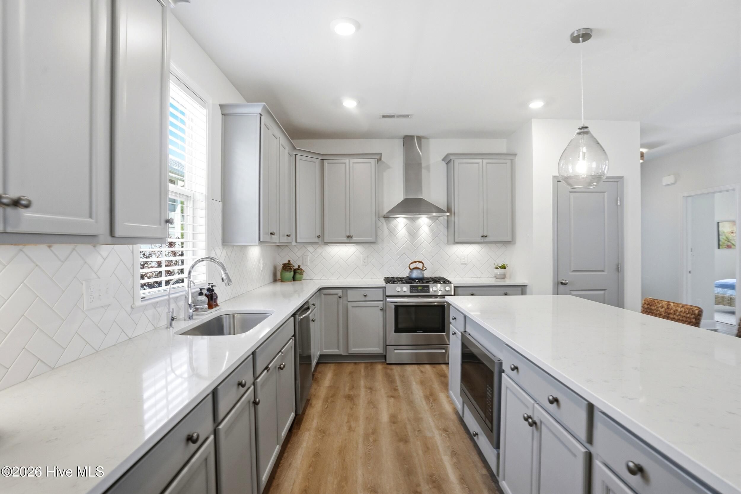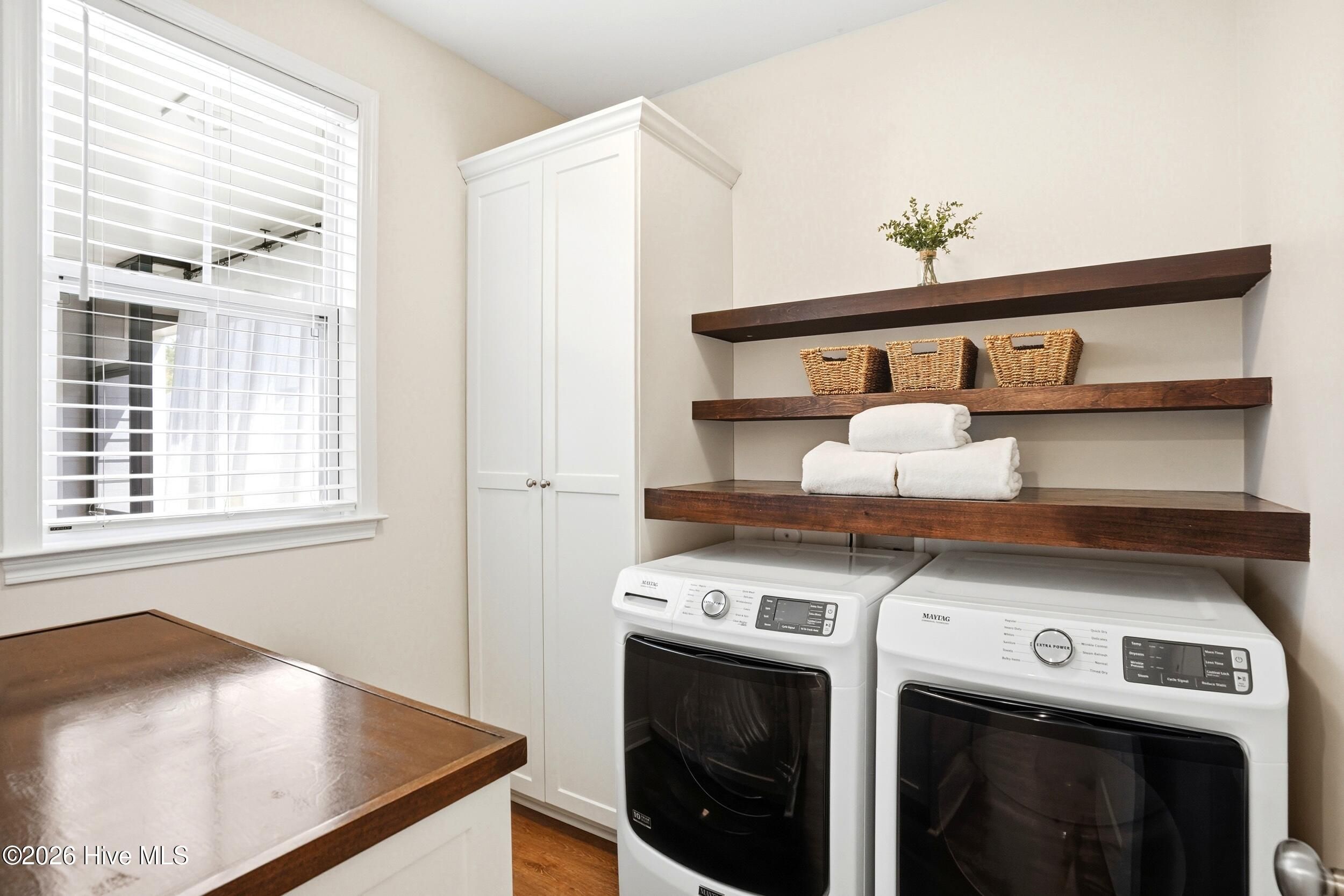 - Vented Exhaust Fan, Gas Cooktop, Built-In Microwave, Built-In Gas Oven, Washer, Refrigerator, Dryer, Disposal, Dishwasher