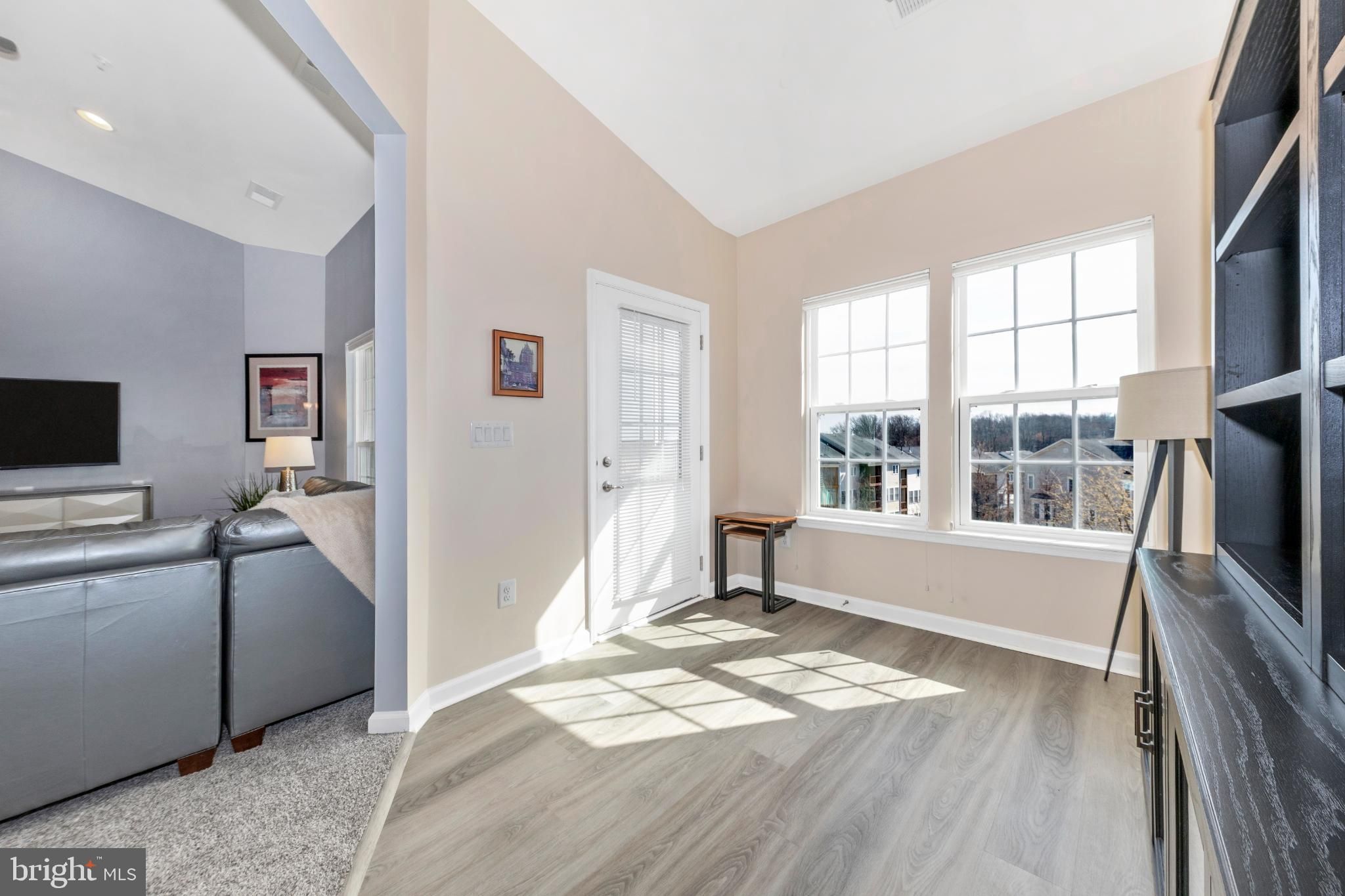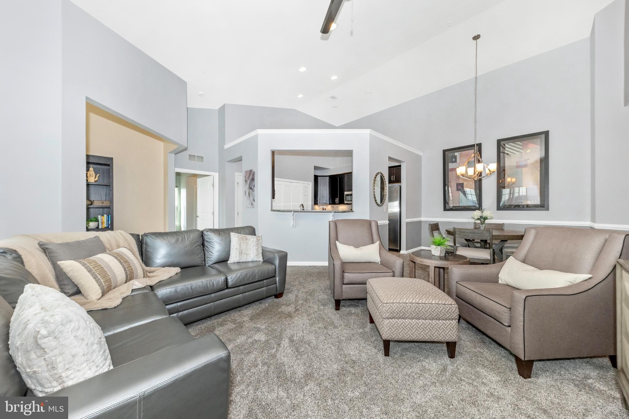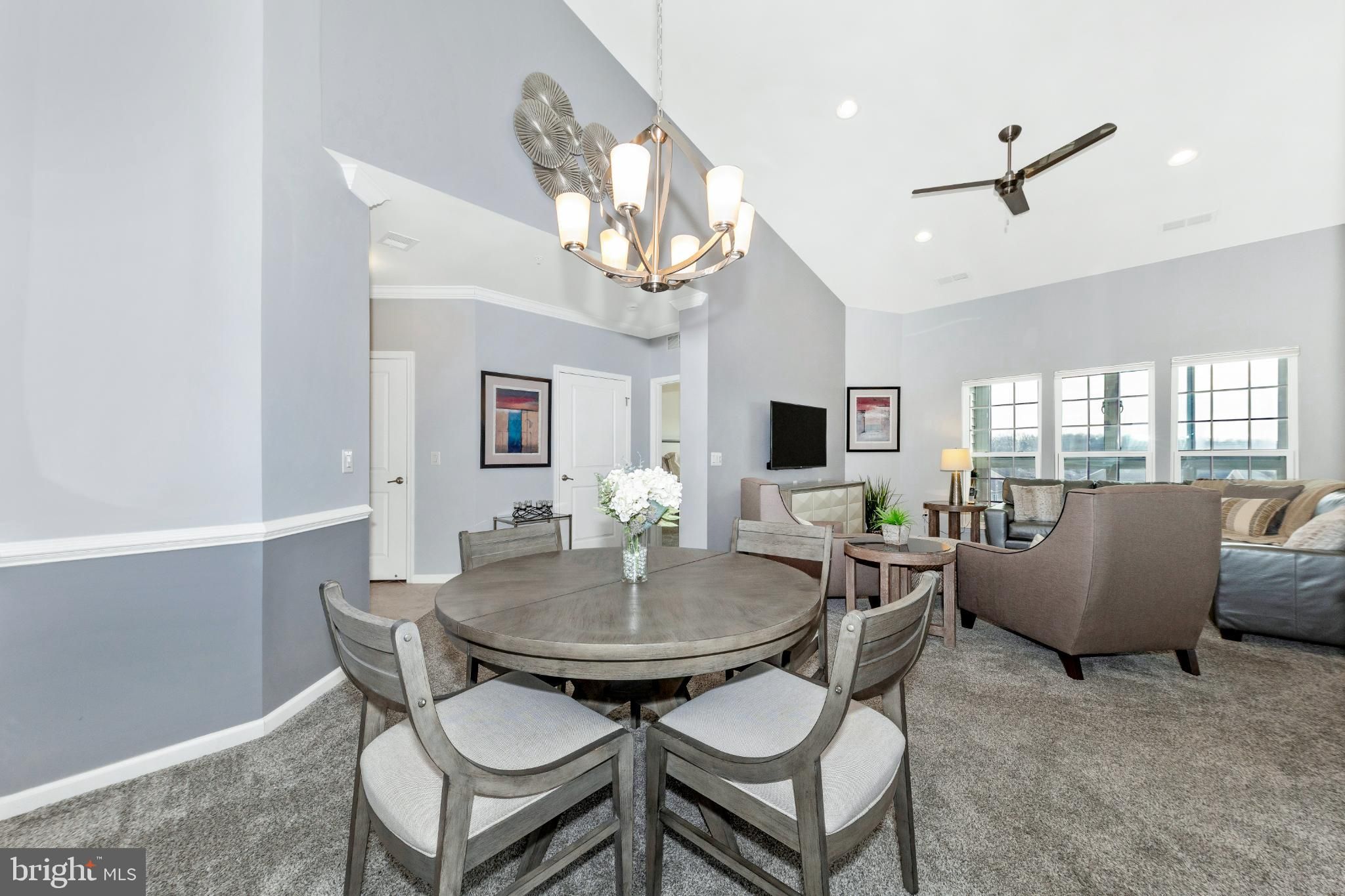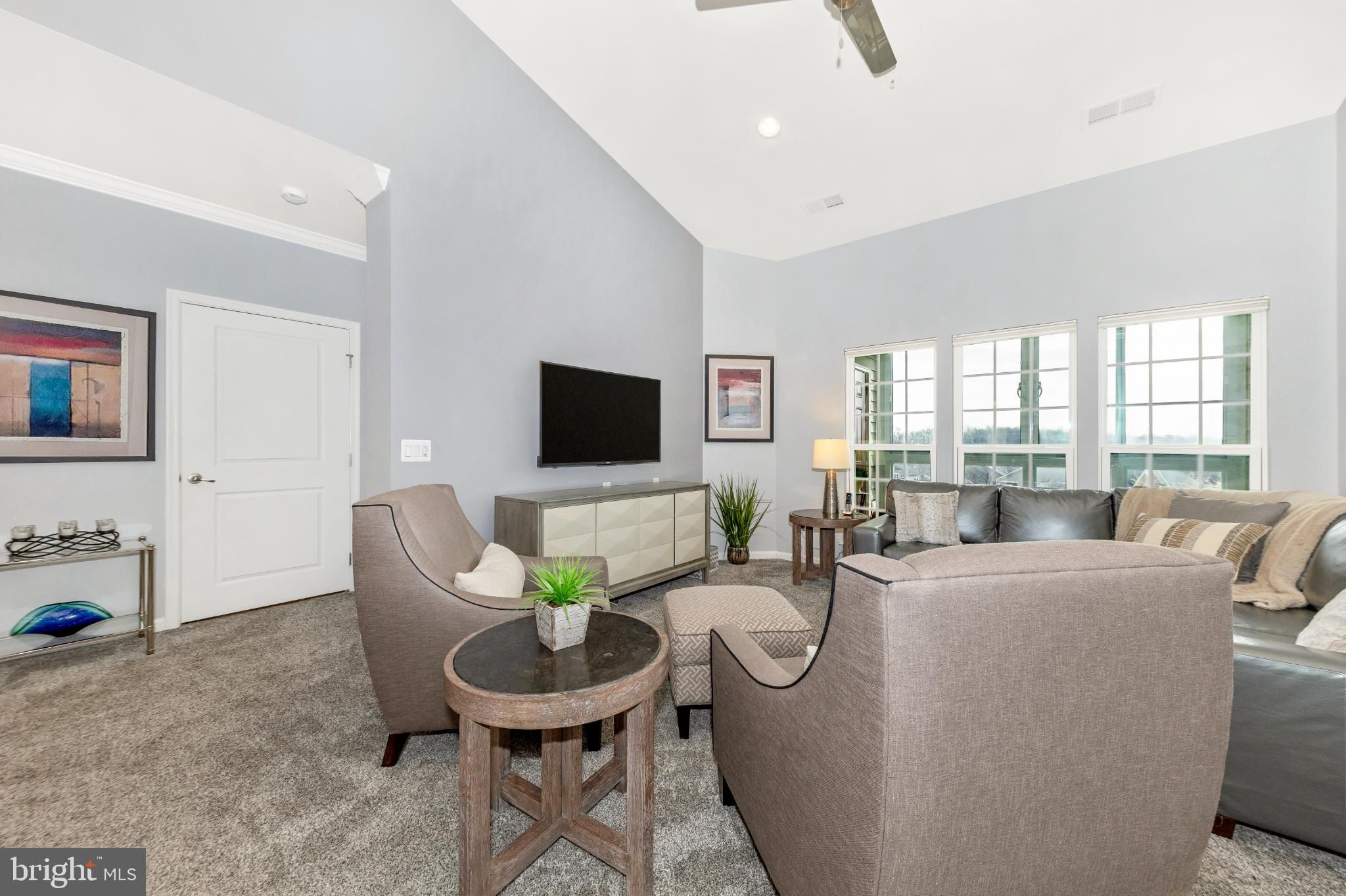 Are you looking for an elegant home option in an active 55+ community within blocks of a grocery store, the fire department and highway access? Look no further than this spacious 2 bedroom, 2 bathroom penthouse condominium in Legacy at Cherry Tree! The finishes are chic down to the very last detail and it is move-in ready! Make your way through the secure outer door to the elevator and be transported to the top level. Entering the unit, eyes are drawn upward to the soaring vaulted ceilings found in the main living spaces as well as the primary suite. The open-concept dining and living areas are spacious and feature recessed lighting, a modern ceiling fan and chandelier, and luxurious carpet. A bonus office/reading area is awash with natural light and offers luxury vinyl plank flooring. Through this office is access to your sun-filled, enclosed private balcony. The kitchen is the epitome of high-end finishes and sophisticated style. Rich espresso cabinetry is sleek and accented with modern hardware, creating a bold yet timeless look. A light neutral marbled subway tile backsplash brightens the space and beautifully contrasts the rich espresso cabinetry and granite countertops. Marbled tile flooring completes the design with durability and elegance. The appliance package is stainless steel and storage space is plentiful. The washer and dryer are conveniently located in the kitchen behind louvered doors. The spacious primary en-suite offers both comfort and functionality, featuring a generous walk-in closet as well as a second large closet for exceptional storage. Windows on two sides fill the room with natural light and enhance its open, airy feel. The designer-inspired primary bath mirrors the sophistication of the kitchen, showcasing sleek espresso cabinetry, a dual vanity, and stunning tile work in the walk-in shower and on the floor. On the opposite side of the unit is the second bedroom which is very large and has its own access to the hall bathroom. Features of this bathroom include a tub/shower combination, tile flooring, and a vanity and fixtures consistent with the style found in the kitchen and primary bath. An amazing amount of storage is available in this condo. The foyer contains both a coat closet and a storage closet, the storage pantry in the kitchen is spacious and bedroom closets are more than sufficient. The building features secure entry with a remote-controlled access system and video doorbell. The condo fee includes water and the community amenities include a fitness and community center. Enjoy an active community offering a variety of events and activities, including card games, exercise classes, Mah Jongg, book club gatherings, picnics, bingo, and a monthly movie night! The greater area provides endless retail and restaurant options, nearby medical care, and is close to parks and walking paths and major commuter routes including Rte 29 and I-95. Don’t hesitate to view this amazing home! View the 360 Photo Tour!