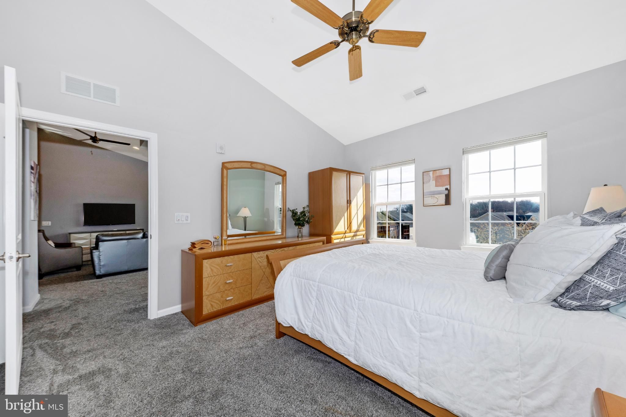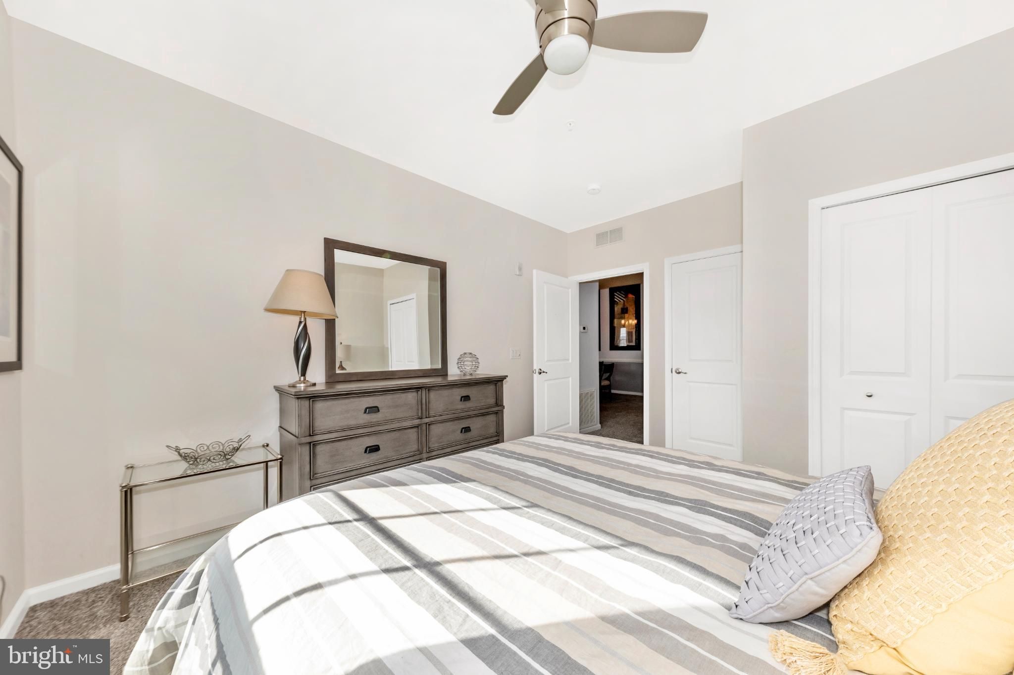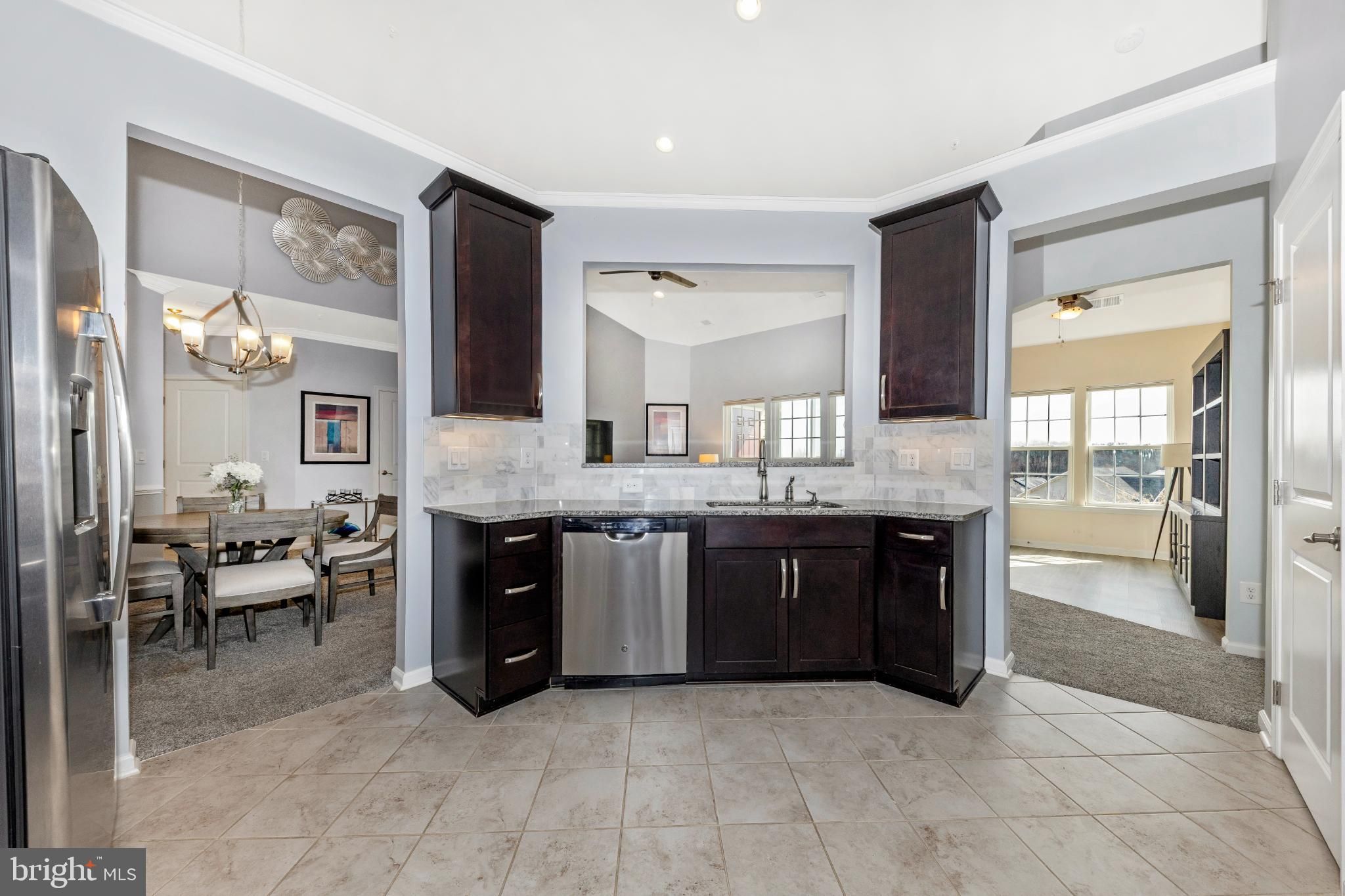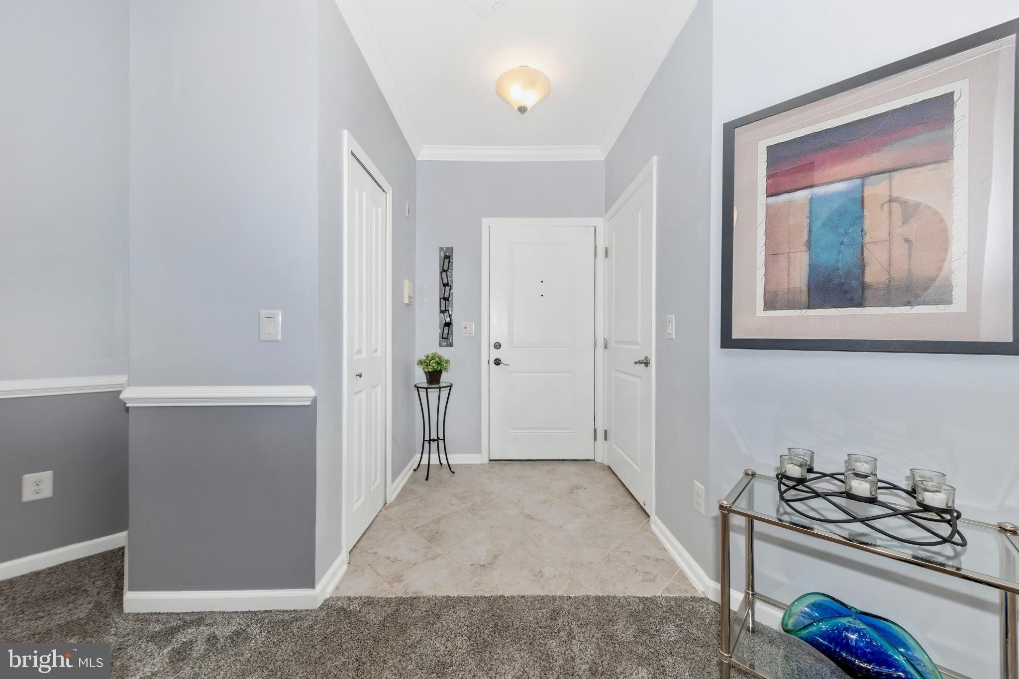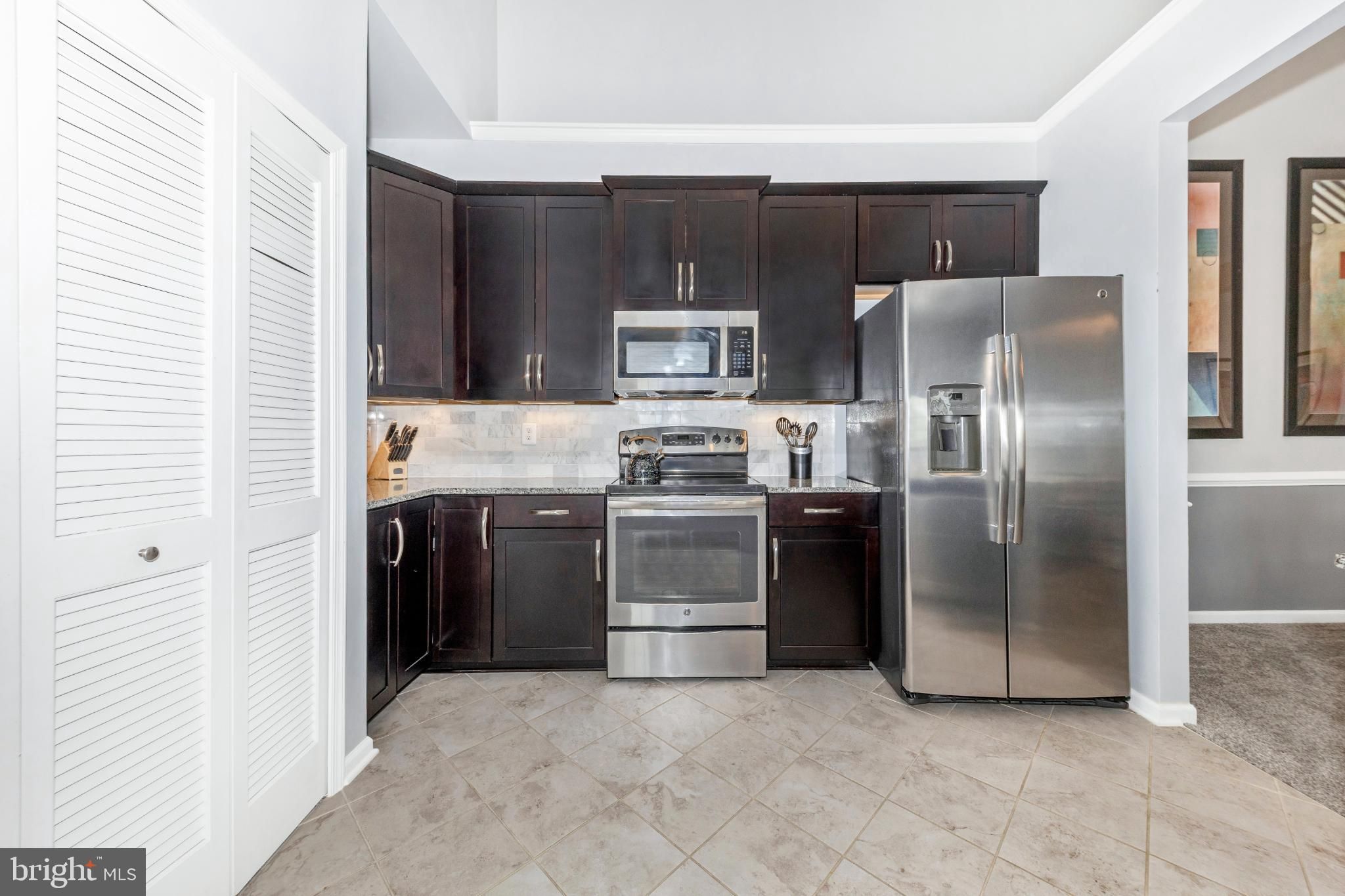 Are you looking for an elegant home option in an active 55+ community within blocks of a grocery store, the fire department and highway access? Look no further than this spacious 2 bedroom, 2 bathroom penthouse condominium in Legacy at Cherry Tree! The finishes are chic down to the very last detail and it is move-in ready! Make your way through the secure outer door to the elevator and be transported to the top level. Entering the unit, eyes are drawn upward to the soaring vaulted ceilings found in the main living spaces as well as the primary suite. The open-concept dining and living areas are spacious and feature recessed lighting, a modern ceiling fan and chandelier, and luxurious carpet. A bonus office/reading area is awash with natural light and offers luxury vinyl plank flooring. Through this office is access to your sun-filled, enclosed private balcony. The kitchen is the epitome of high-end finishes and sophisticated style. Rich espresso cabinetry is sleek and accented with modern hardware, creating a bold yet timeless look. A light neutral marbled subway tile backsplash brightens the space and beautifully contrasts the rich espresso cabinetry and granite countertops. Marbled tile flooring completes the design with durability and elegance. The appliance package is stainless steel and storage space is plentiful. The washer and dryer are conveniently located in the kitchen behind louvered doors. The spacious primary en-suite offers both comfort and functionality, featuring a generous walk-in closet as well as a second large closet for exceptional storage. Windows on two sides fill the room with natural light and enhance its open, airy feel. The designer-inspired primary bath mirrors the sophistication of the kitchen, showcasing sleek espresso cabinetry, a dual vanity, and stunning tile work in the walk-in shower and on the floor. On the opposite side of the unit is the second bedroom which is very large and has its own access to the hall bathroom. Features of this bathroom include a tub/shower combination, tile flooring, and a vanity and fixtures consistent with the style found in the kitchen and primary bath. An amazing amount of storage is available in this condo. The foyer contains both a coat closet and a storage closet, the storage pantry in the kitchen is spacious and bedroom closets are more than sufficient. The building features secure entry with a remote-controlled access system and video doorbell. The condo fee includes water and the community amenities include a fitness and community center. Enjoy an active community offering a variety of events and activities, including card games, exercise classes, Mah Jongg, book club gatherings, picnics, bingo, and a monthly movie night! The greater area provides endless retail and restaurant options, nearby medical care, and is close to parks and walking paths and major commuter routes including Rte 29 and I-95. Don’t hesitate to view this amazing home! View the 360 Photo Tour!
