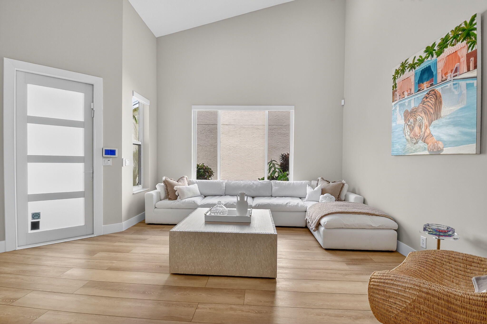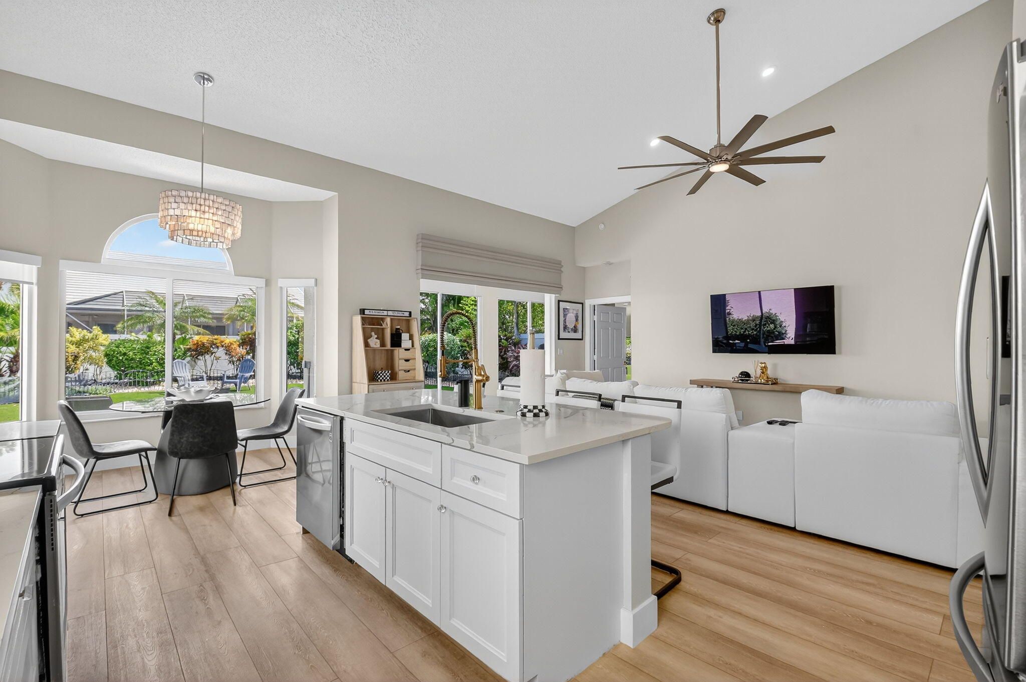 Welcome to this beautifully updated 3-bedroom, 2-bath home located in the highly sought-after Bermuda Isle community of Aberdeen Golf & Country Club. Thoughtfully renovated within the last three years, this move-in-ready residence showcases numerous high-value improvements throughout. The refreshed kitchen offers a bright, modern eat-in layout and opens seamlessly to the spacious family room, ideal for entertaining, while both bathrooms have been completely remodeled. Additional upgrades include new luxury vinyl plank flooring, hurricane impact windows, and updated window treatments throughout—many with convenient remote-control operation. Outside, enjoy a private, professionally landscaped backyard featuring new grass and surrounding garden areas creating a serene outdoor retreat. The expansive glass-enclosed lanai allows for year-round enjoyment of the outdoor views. Located within a private, gated community in Boynton Beach, Aberdeen Golf & Country Club offers a resort-style lifestyle centered around a Jim Fazio-designed 18-hole championship golf course. Residents enjoy exceptional amenities including tennis, pickleball, fitness facilities, aquatics, and on-site diningall just minutes from the beach.